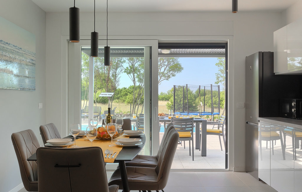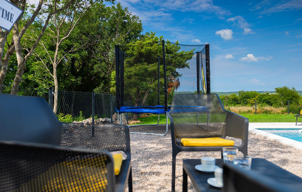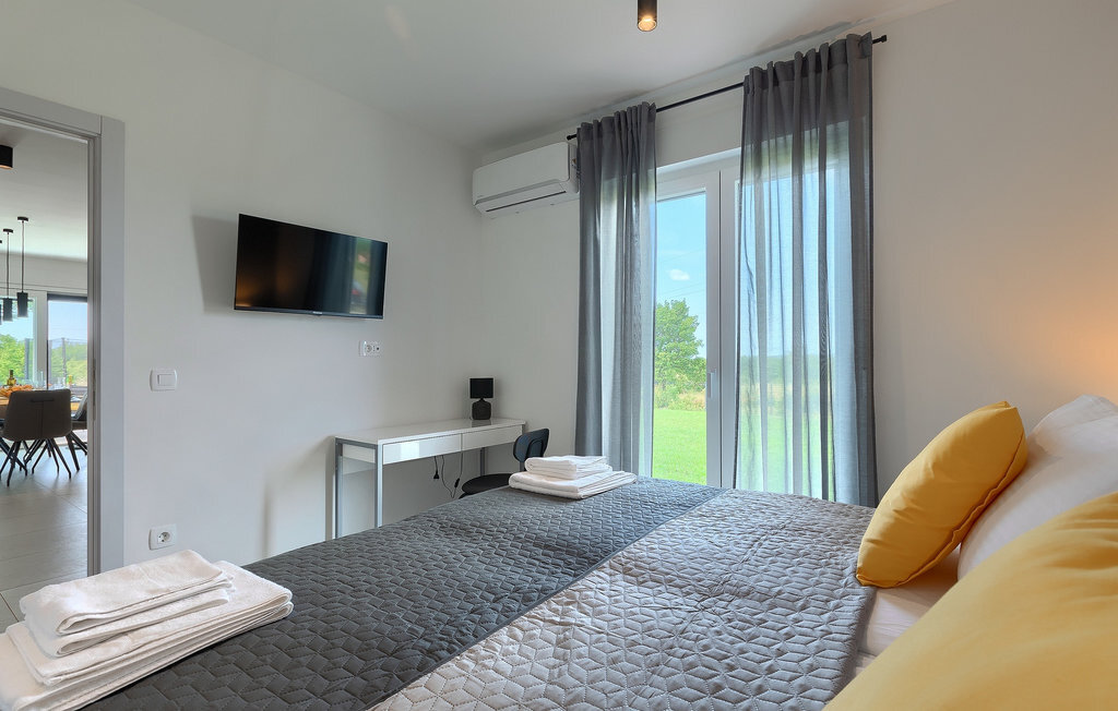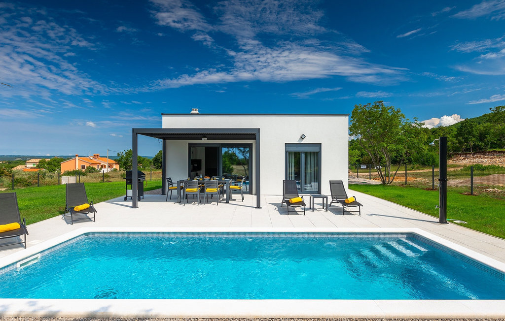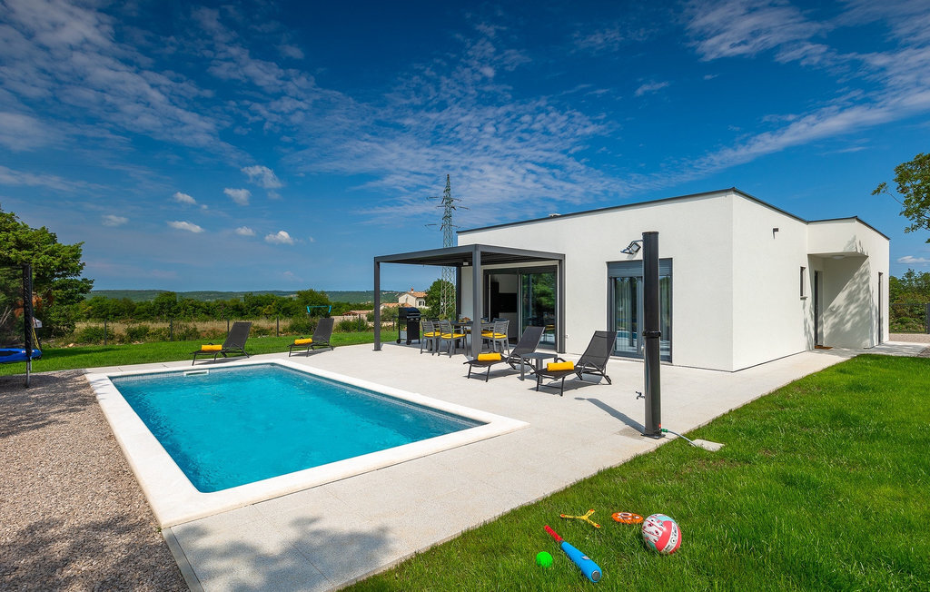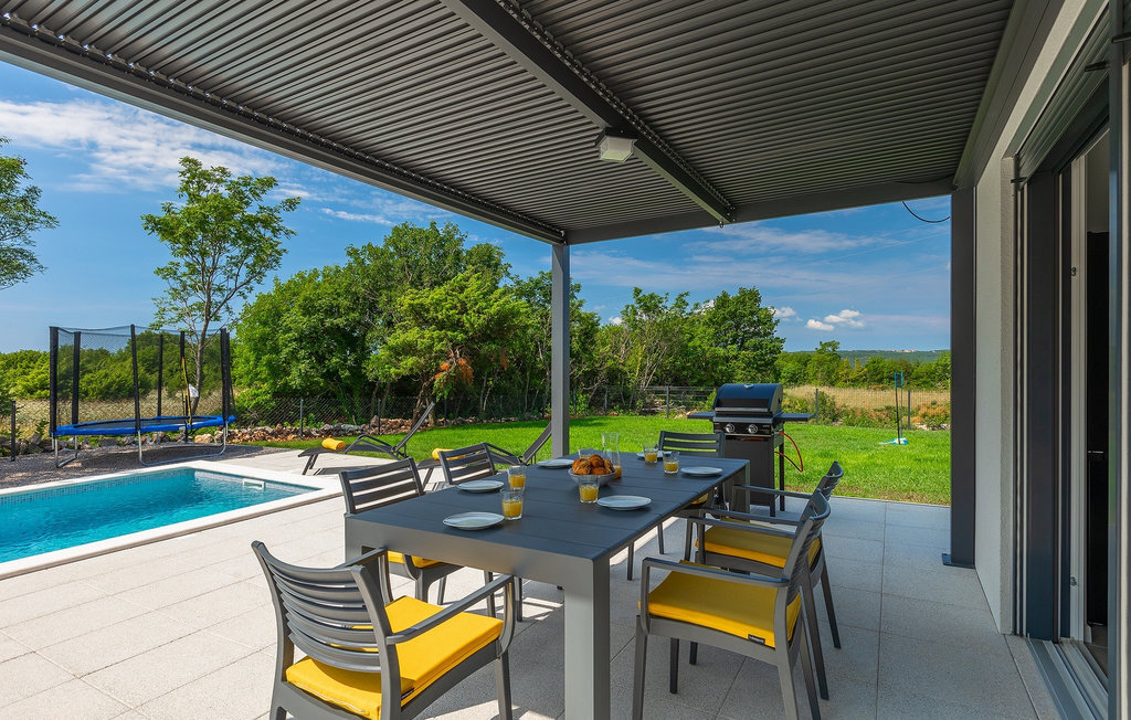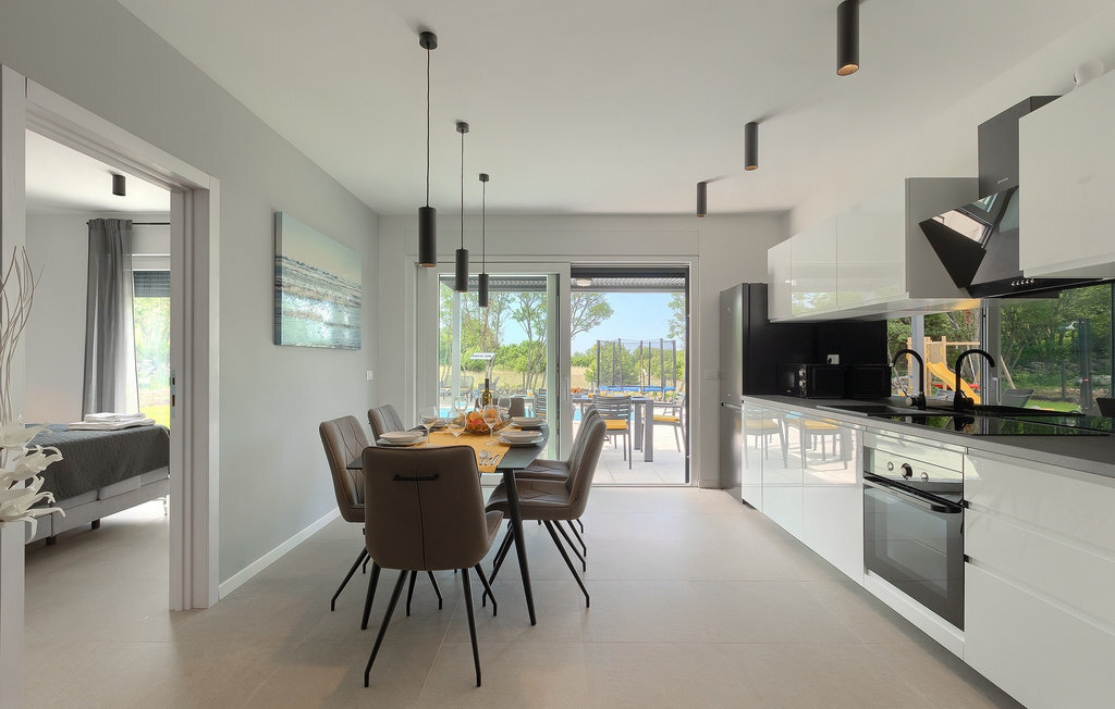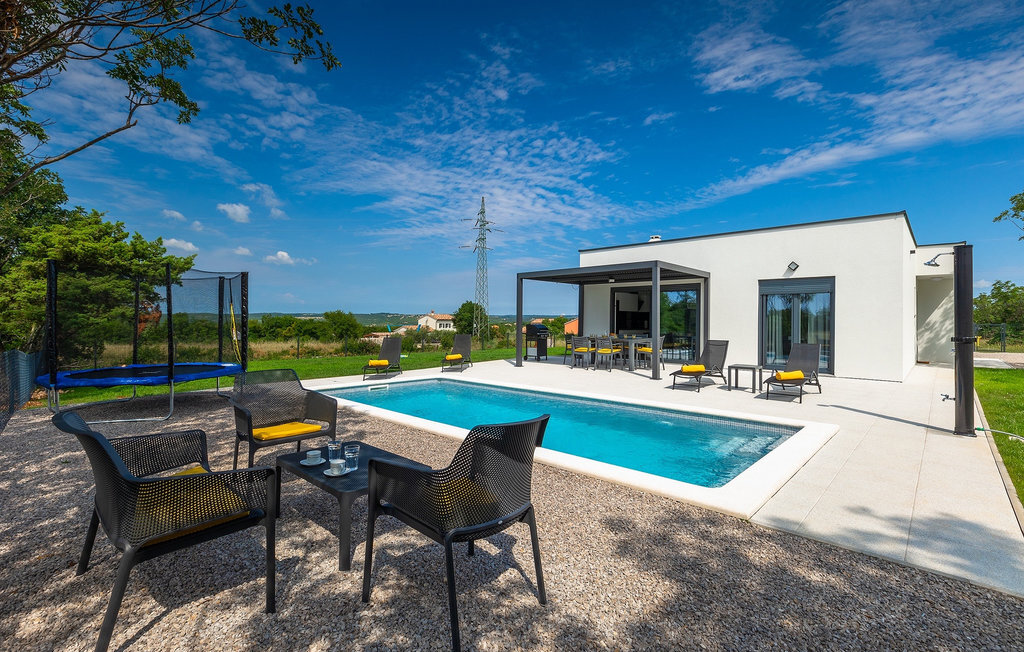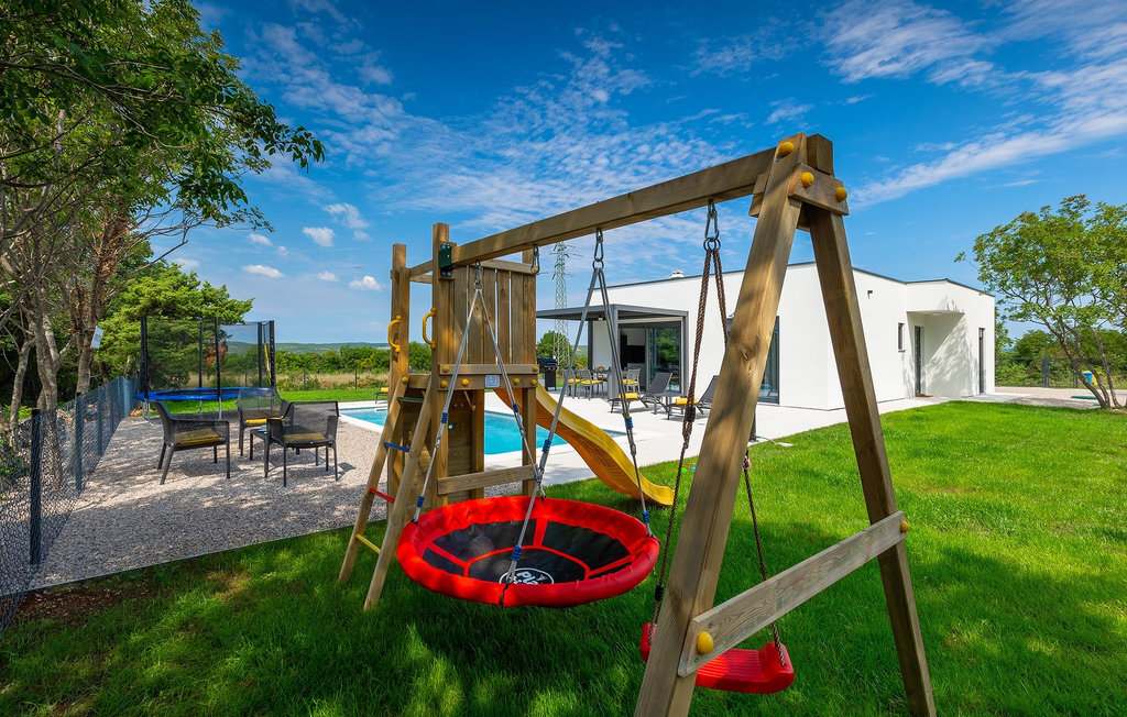La villa moderne Lotta vous offre des vacances reposantes au milieu d'une nature intacte. La villa est idéale pour des vacances en famille ou entre amis. Pendant la chaleur de l'été, cherchez à vous rafraîchir dans la piscine de 21 m². Près de la piscine se trouve un espace couvert avec une table à manger et un barbecue, idéal pour des réunions inoubliables et pour déguster des plats traditionnels istriens préparés. Nos plus jeunes clients peuvent s'amuser sur l'aire de jeux pour enfants. Près de l'aire de jeux pour enfants, il y a une table et des chaises à l'ombre naturelle pour prendre un café ou des boissons rafraîchissantes l'après-midi. Passez du temps en plein air à jouer au badminton ou au volley-ball. L'intérieur de la villa est plein de lumière naturelle et toutes les pièces se trouvent au rez-de-chaussée de la maison. Dans l'espace ouvert de la villa, vous trouverez un salon, une cuisine entièrement équipée au design moderne et une salle à manger où vous pourrez profiter de l'atmosphère istrienne. La première chambre dispose d'un lit double et d'une salle de bain privée avec vue sur la piscine et le paysage de Brgod. Dans la deuxième chambre, il y a deux lits. Toutes les chambres disposent d'une télévision et de la climatisation. La deuxième salle de bains et une buanderie séparée se trouvent également au rez-de-chaussée de la maison. Ne manquez pas de passer des vacances à la Villa Lotta dans le cadre paisible de la magnifique campagne de Brgod. La Villa Lotta est située au sud-est de la péninsule d'Istrie, dans le village de Brgod. Ce paisible hameau surplombe la baie de Rasa et le petit village de pêcheurs de Trget. Vivez la magie des habitants et de la nature intacte. Le paysage vallonné et les nombreuses baies proches, auxquelles vous accédez par des sentiers de randonnée et des pistes cyclables, vous couperont le souffle. Visitez les célèbres centres touristiques de Rabac et Labin situés à proximité. Ancien village de pêcheurs, Rabac est aujourd'hui connu pour sa beauté naturelle, ses magnifiques caps et ses plages. Cette perle du Kvarner a également été visitée par l'écrivain voyageur Richard Francis Burton au 19e siècle. Explorez la ville médiévale de Labin, située sur une colline au-dessus de Rabac. La ville natale de Matija Vlacic est une combinaison d'une riche architecture, de monuments culturels et historiques et d'ateliers d'art. Découvrez à travers les charmantes ruelles étroites de Labin la riche offre des établissements gastronomiques locaux.