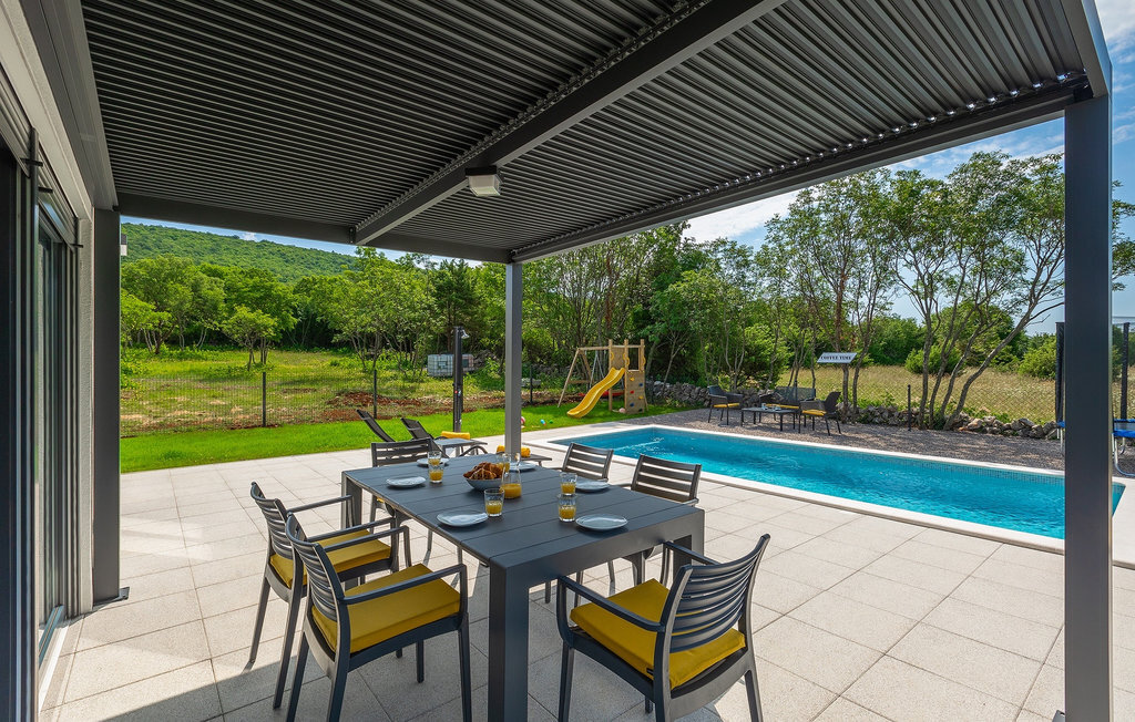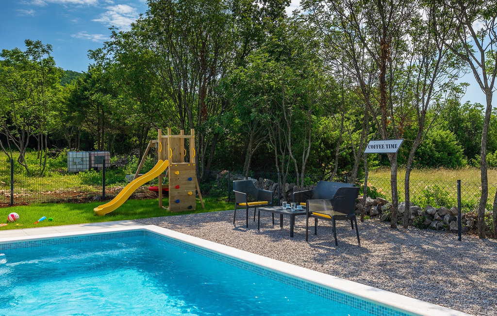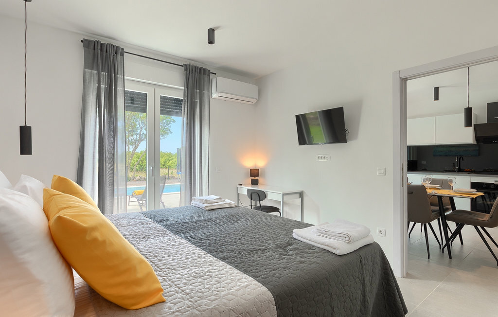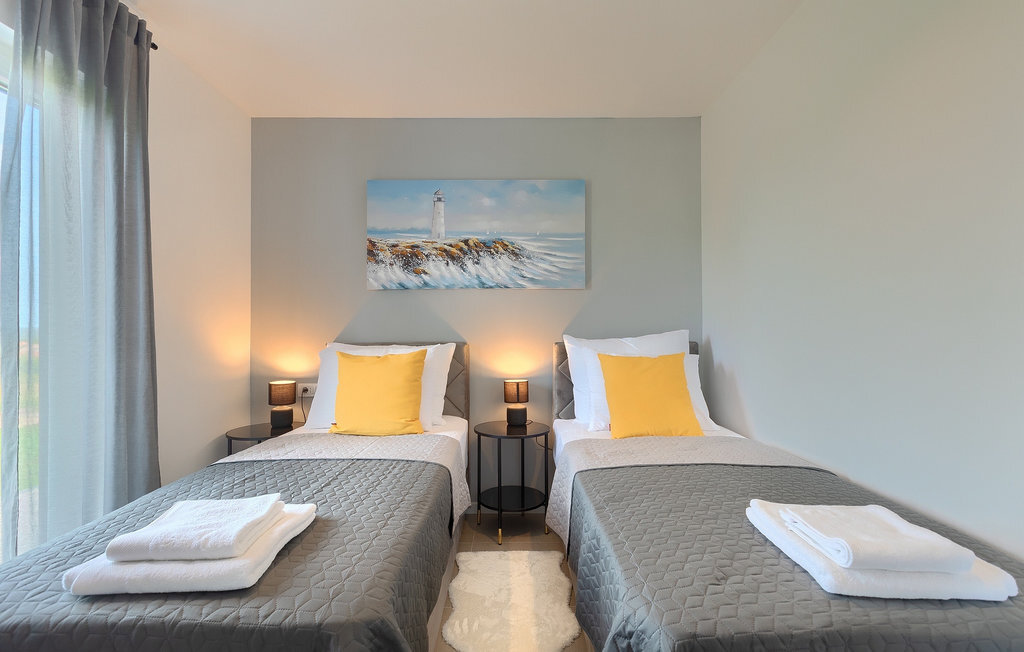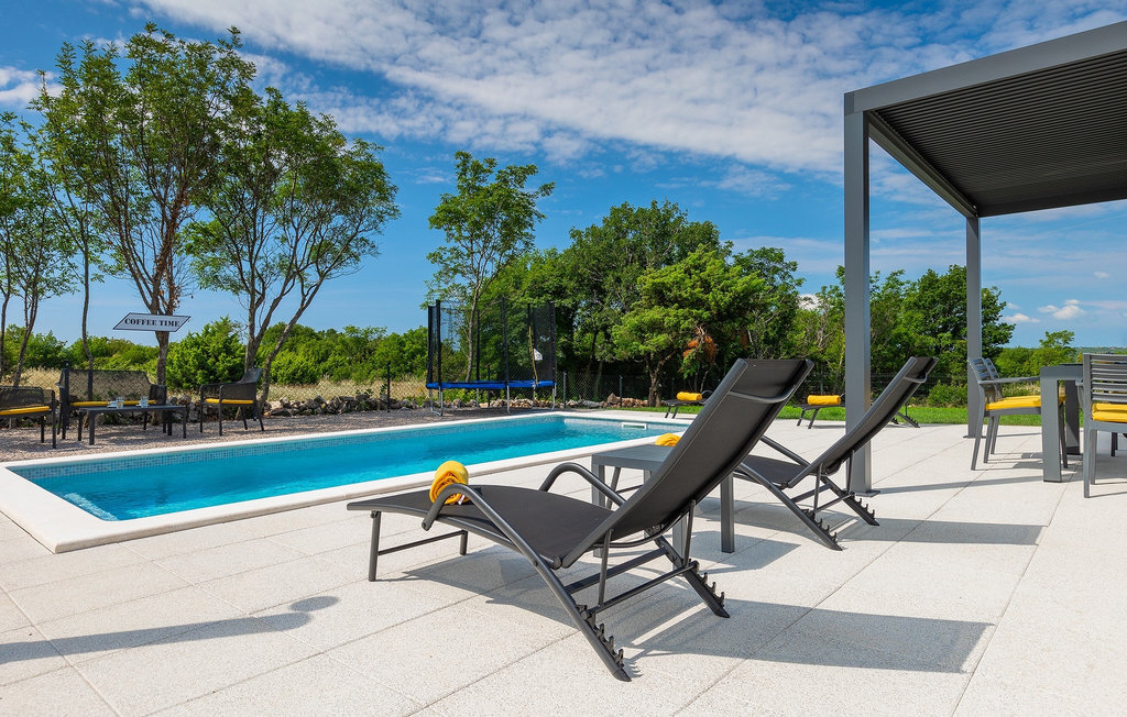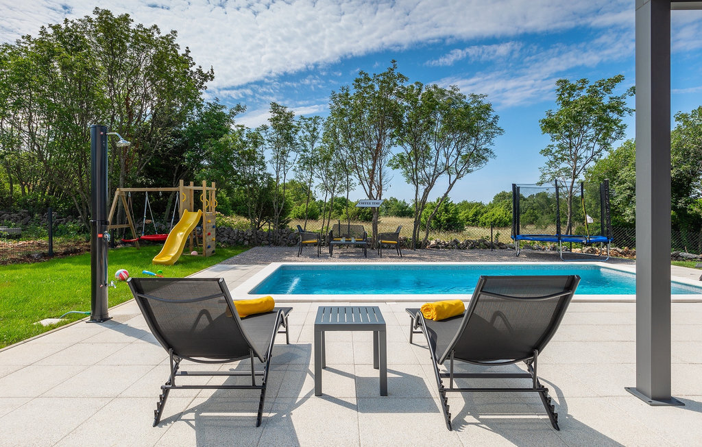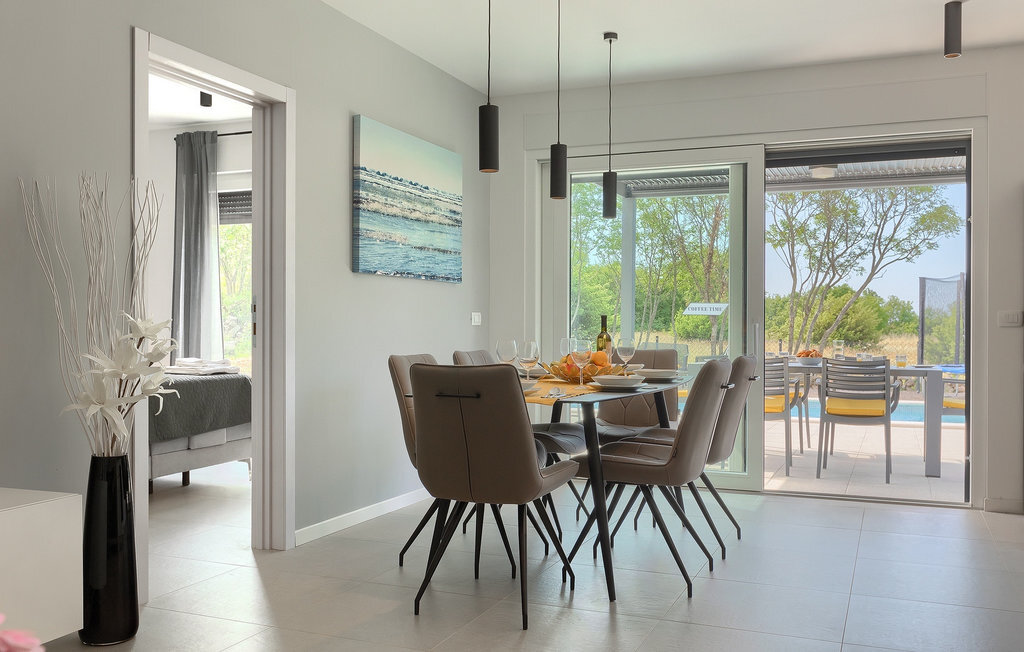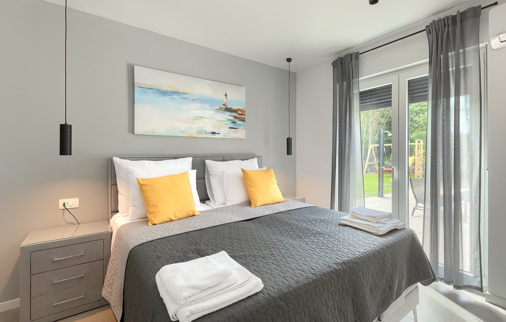 La villa moderne Lotta vous offre des vacances reposantes au milieu d'une nature intacte. La villa est idéale pour des vacances en famille ou entre amis. Pendant la chaleur de l'été, cherchez à vous rafraîchir dans la piscine de 21 m². Près de la piscine se trouve un espace couvert avec une table à manger et un barbecue, idéal pour des réunions inoubliables et pour déguster des plats traditionnels istriens préparés. Nos plus jeunes clients peuvent s'amuser sur l'aire de jeux pour enfants. Près de l'aire de jeux pour enfants, il y a une table et des chaises à l'ombre naturelle pour prendre un café ou des boissons rafraîchissantes l'après-midi. Passez du temps en plein air à jouer au badminton ou au volley-ball. L'intérieur de la villa est plein de lumière naturelle et toutes les pièces se trouvent au rez-de-chaussée de la maison. Dans l'espace ouvert de la villa, vous trouverez un salon, une cuisine entièrement équipée au design moderne et une salle à manger où vous pourrez profiter de l'atmosphère istrienne. La première chambre dispose d'un lit double et d'une salle de bain privée avec vue sur la piscine et le paysage de Brgod. Dans la deuxième chambre, il y a deux lits. Toutes les chambres disposent d'une télévision et de la climatisation. La deuxième salle de bains et une buanderie séparée se trouvent également au rez-de-chaussée de la maison. Ne manquez pas de passer des vacances à la Villa Lotta dans le cadre paisible de la magnifique campagne de Brgod. La Villa Lotta est située au sud-est de la péninsule d'Istrie, dans le village de Brgod. Ce paisible hameau surplombe la baie de Rasa et le petit village de pêcheurs de Trget. Vivez la magie des habitants et de la nature intacte. Le paysage vallonné et les nombreuses baies proches, auxquelles vous accédez par des sentiers de randonnée et des pistes cyclables, vous couperont le souffle. Visitez les célèbres centres touristiques de Rabac et Labin situés à proximité. Ancien village de pêcheurs, Rabac est aujourd'hui connu pour sa beauté naturelle, ses magnifiques caps et ses plages. Cette perle du Kvarner a également été visitée par l'écrivain voyageur Richard Francis Burton au 19e siècle. Explorez la ville médiévale de Labin, située sur une colline au-dessus de Rabac. La ville natale de Matija Vlacic est une combinaison d'une riche architecture, de monuments culturels et historiques et d'ateliers d'art. Découvrez à travers les charmantes ruelles étroites de Labin la riche offre des établissements gastronomiques locaux.