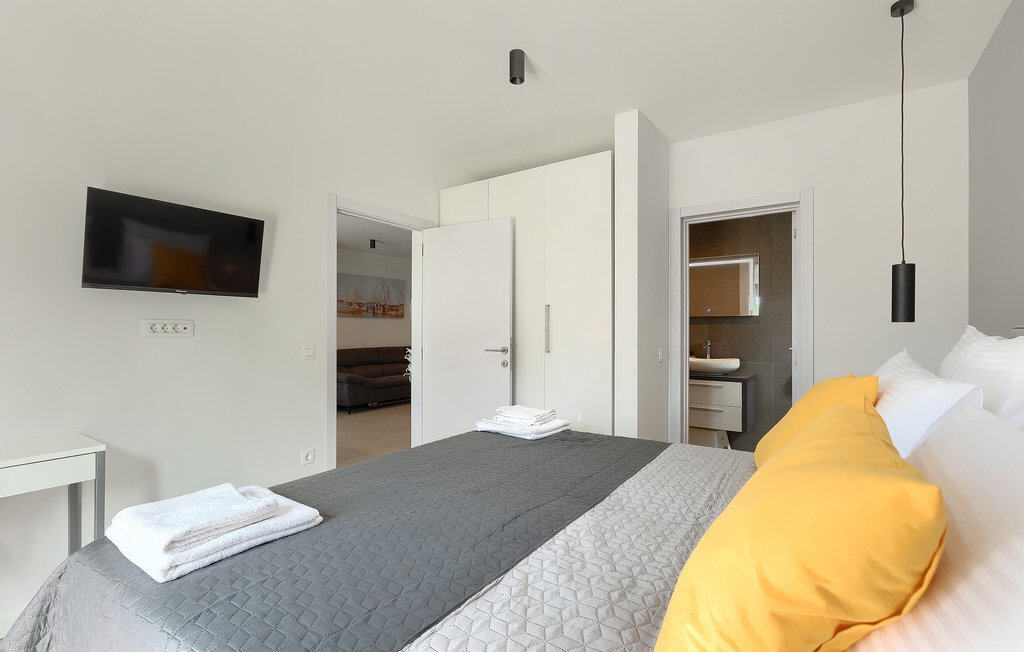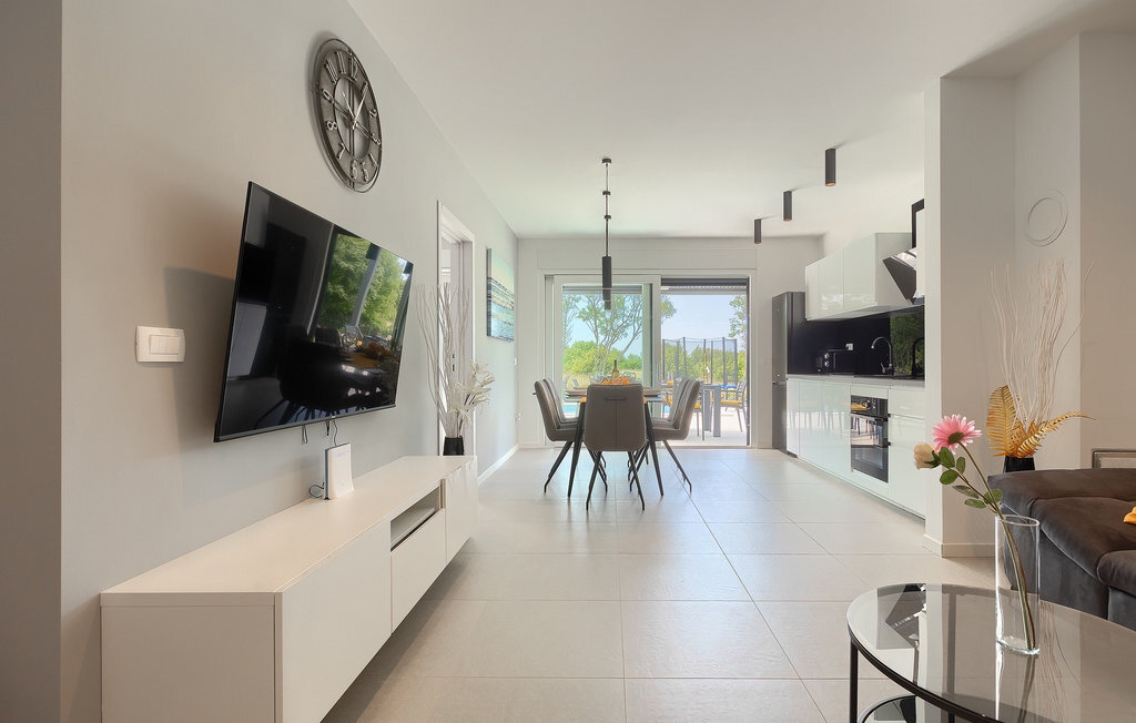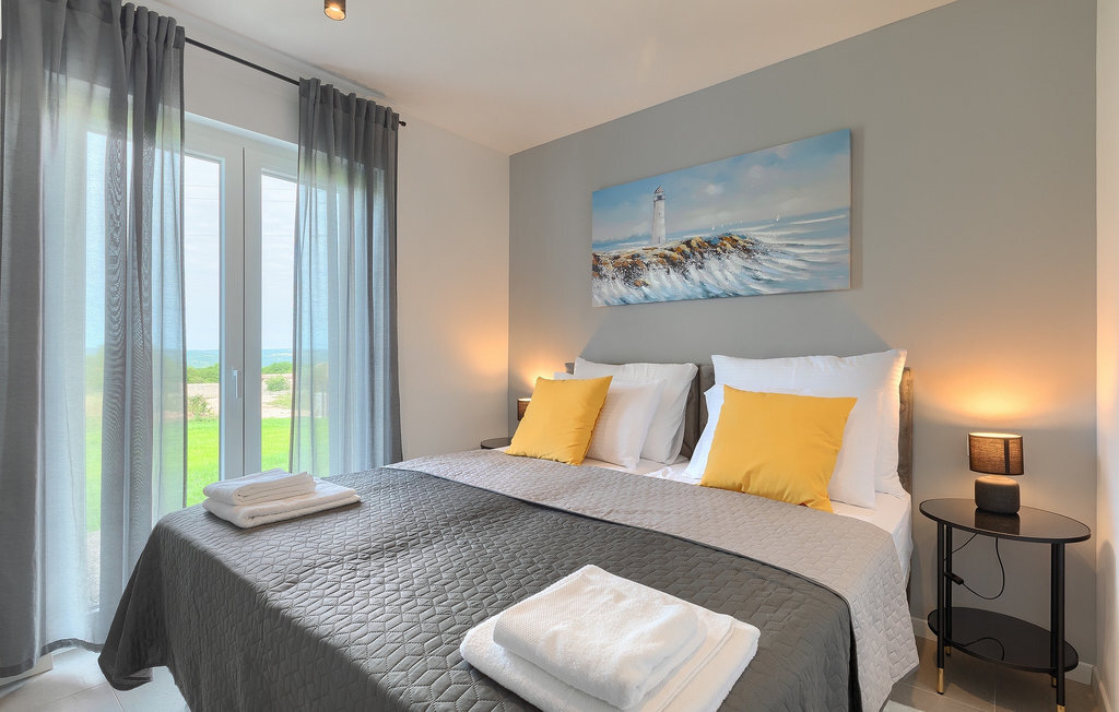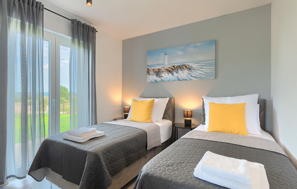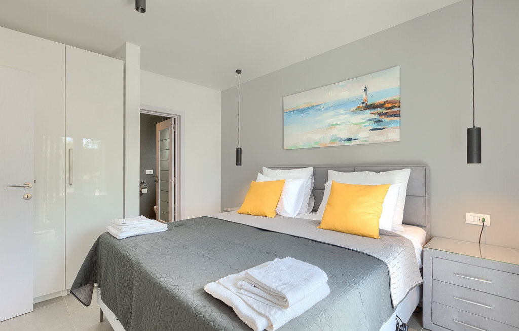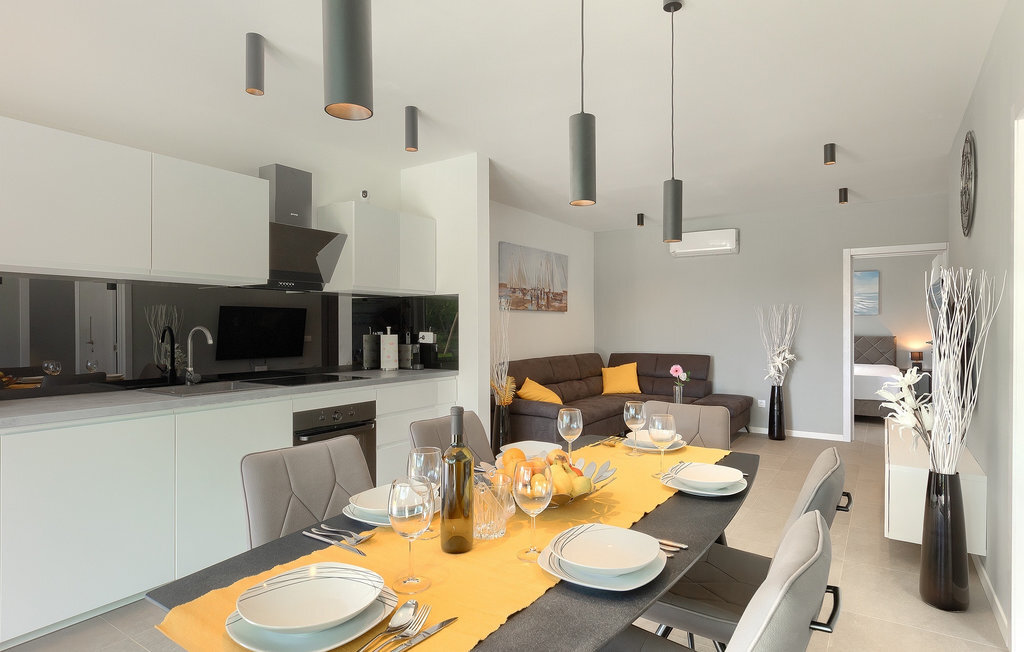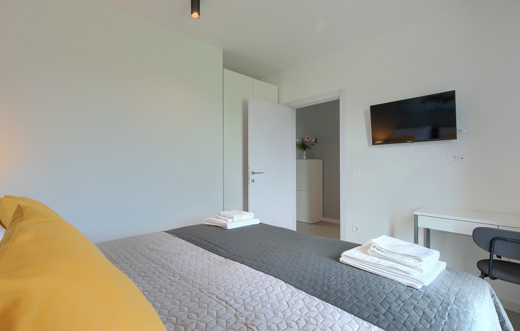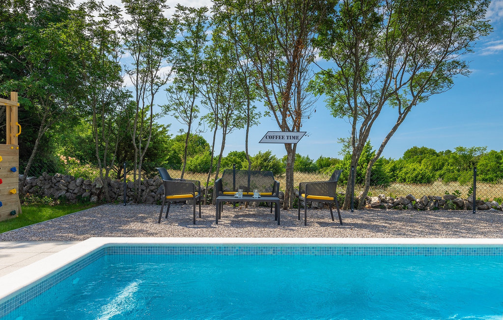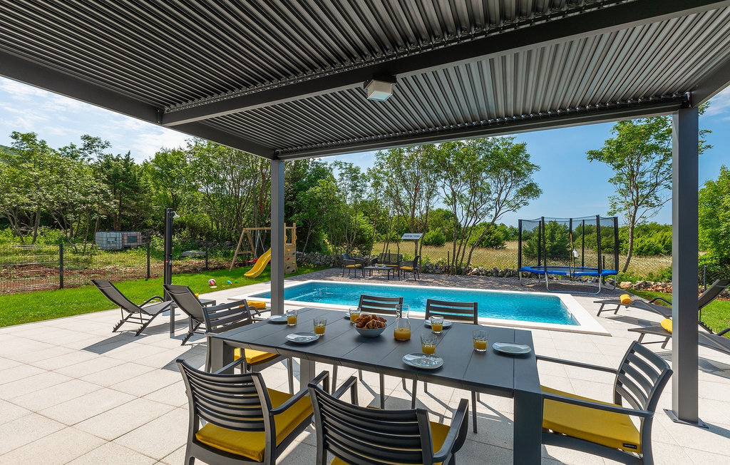 La villa moderne Lotta vous offre des vacances reposantes au milieu d'une nature intacte. La villa est idéale pour des vacances en famille ou entre amis. Pendant la chaleur de l'été, cherchez à vous rafraîchir dans la piscine de 21 m². Près de la piscine se trouve un espace couvert avec une table à manger et un barbecue, idéal pour des réunions inoubliables et pour déguster des plats traditionnels istriens préparés. Nos plus jeunes clients peuvent s'amuser sur l'aire de jeux pour enfants. Près de l'aire de jeux pour enfants, il y a une table et des chaises à l'ombre naturelle pour prendre un café ou des boissons rafraîchissantes l'après-midi. Passez du temps en plein air à jouer au badminton ou au volley-ball. L'intérieur de la villa est plein de lumière naturelle et toutes les pièces se trouvent au rez-de-chaussée de la maison. Dans l'espace ouvert de la villa, vous trouverez un salon, une cuisine entièrement équipée au design moderne et une salle à manger où vous pourrez profiter de l'atmosphère istrienne. La première chambre dispose d'un lit double et d'une salle de bain privée avec vue sur la piscine et le paysage de Brgod. Dans la deuxième chambre, il y a deux lits. Toutes les chambres disposent d'une télévision et de la climatisation. La deuxième salle de bains et une buanderie séparée se trouvent également au rez-de-chaussée de la maison. Ne manquez pas de passer des vacances à la Villa Lotta dans le cadre paisible de la magnifique campagne de Brgod. La Villa Lotta est située au sud-est de la péninsule d'Istrie, dans le village de Brgod. Ce paisible hameau surplombe la baie de Rasa et le petit village de pêcheurs de Trget. Vivez la magie des habitants et de la nature intacte. Le paysage vallonné et les nombreuses baies proches, auxquelles vous accédez par des sentiers de randonnée et des pistes cyclables, vous couperont le souffle. Visitez les célèbres centres touristiques de Rabac et Labin situés à proximité. Ancien village de pêcheurs, Rabac est aujourd'hui connu pour sa beauté naturelle, ses magnifiques caps et ses plages. Cette perle du Kvarner a également été visitée par l'écrivain voyageur Richard Francis Burton au 19e siècle. Explorez la ville médiévale de Labin, située sur une colline au-dessus de Rabac. La ville natale de Matija Vlacic est une combinaison d'une riche architecture, de monuments culturels et historiques et d'ateliers d'art. Découvrez à travers les charmantes ruelles étroites de Labin la riche offre des établissements gastronomiques locaux.