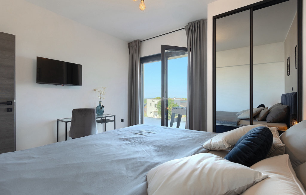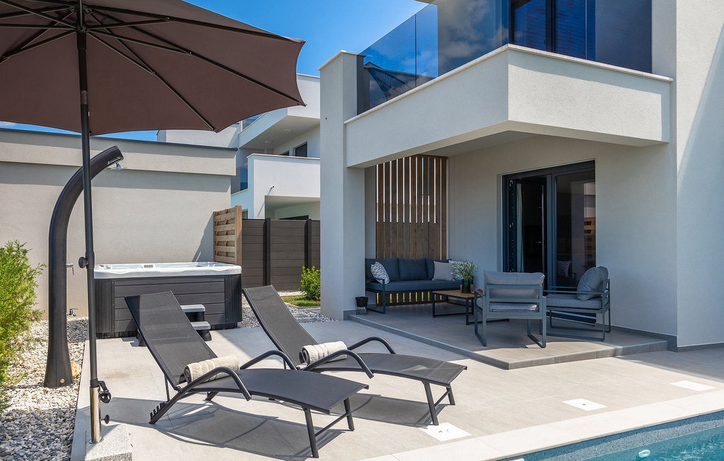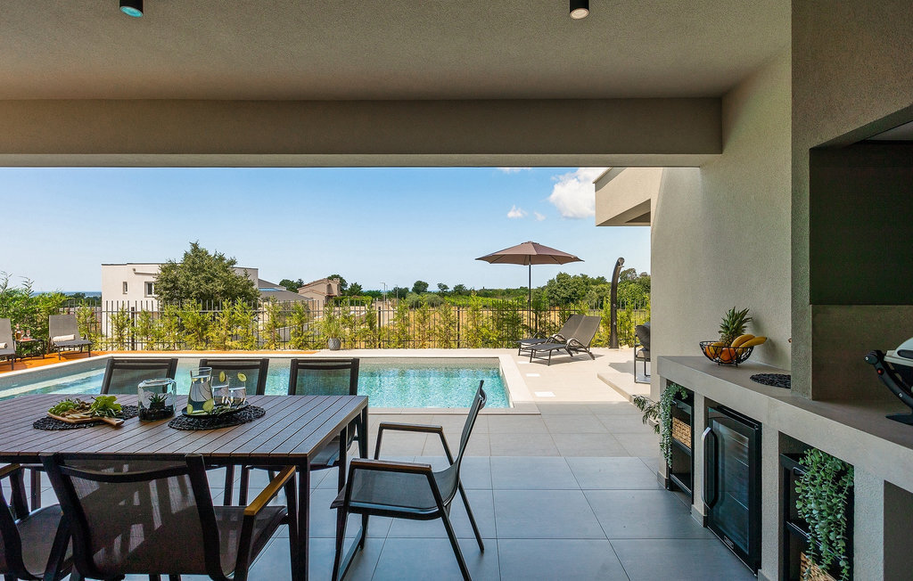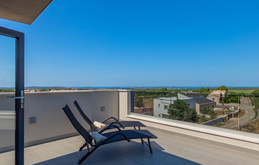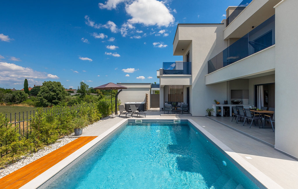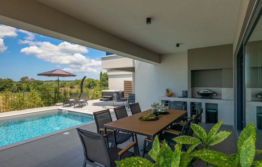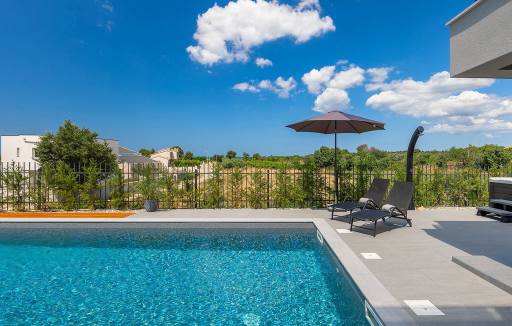 La villa IVaLA est une magnifique villa familiale située près de Pula, idéale pour des vacances de rêve en famille ou entre amis. Devant la villa se trouve une magnifique piscine de 32 m2. Pendant les chaleurs estivales, vous trouverez de quoi vous rafraîchir dans la piscine, tandis que les amateurs de soleil pourront profiter du soleil d'Istrie sur les chaises longues installées directement au bord de la piscine. Détendez-vous dans le jacuzzi extérieur. Dégustez des plats istriens préparés sur le barbecue dans un espace couvert devant la villa, où vous trouverez une table à manger pour 8 personnes. Les plus jeunes s'amuseront sur l'aire de jeux pour enfants, équipée de balançoires et de structures d'escalade. Mais le divertissement n'est pas en reste dans la villa. Sur la terrasse au premier étage de la villa, vous pouvez faire une partie de baby-foot. Au rez-de-chaussée de la villa, il y a un salon confortable avec une vue magnifique sur la piscine. Dans l'espace ouvert, il y a également une cuisine équipée avec tout ce dont vous avez besoin pour préparer de délicieux repas et une salle à manger avec 6 places assises. Au même étage, une salle de bains et des toilettes séparées sont à votre disposition. Au premier étage se trouvent les chambres à coucher. La première chambre est équipée d'un lit double et d'une salle de bain privée. Les deux autres chambres disposent de lits doubles et une salle de bain séparée se trouve à cet étage. Toutes les chambres disposent de l'air conditionné, d'une télévision et de terrasses privées où vous pourrez savourer votre café matinal tout en admirant la magnifique vue sur la mer. La particularité de la villa est la terrasse sur le toit, qui se trouve au deuxième étage. Profitez de la vue unique sur les îles Brijuni et la mer magnifique, qui vous coupera le souffle. Ne manquez pas des vacances uniques dans la villa IVaLA avec vue panoramique et profitez de l'atmosphère du charmant village de Galizana. Galizana est un village d'Istrie situé entre Vodnjan et Pula. Galizana a une histoire et une tradition riches qui remontent à l'Antiquité. La population locale vous ravira avec ses produits. Ne manquez pas de goûter à l'huile d'olive extra-vierge, au fromage de brebis et à d'autres produits locaux. Amusez-vous lors des manifestations locales telles que les nuits galiciennes et le folklore. Ne manquez pas de visiter Vodnjan et sa riche offre gastronomique. Explorez Vodnjan avec ses peintures murales intéressantes, l'église St. Foska, près de laquelle se trouvent trois kazuns, des abris traditionnels en pierre d'Istrie. Les amoureux de la nature apprécieront le village de Peroj et admireront la vue magnifique sur le canal de Fazana et l'archipel de Brijuni. Une destination incontournable est la plus grande ville d'Istrie, Pula, où vous pourrez visiter l'arène de Pula, le temple d'Auguste, la Porte d'Or et de nombreux autres monuments culturels et historiques. À la fin de votre aventure en Istrie, explorez l'archipel de Brijuni avec le célèbre parc national de Brijuni et son parc safari.