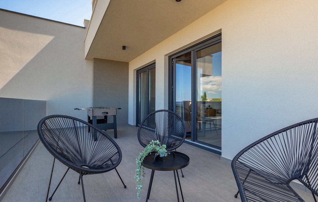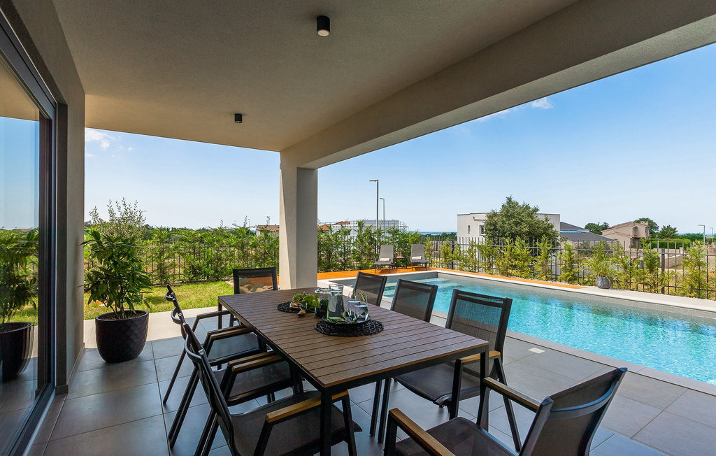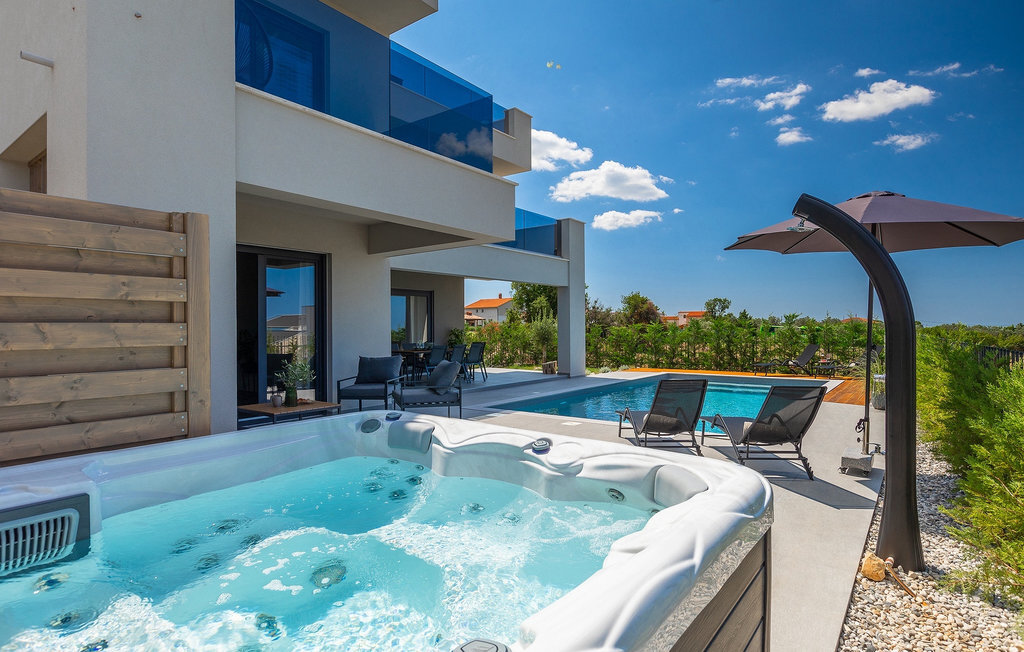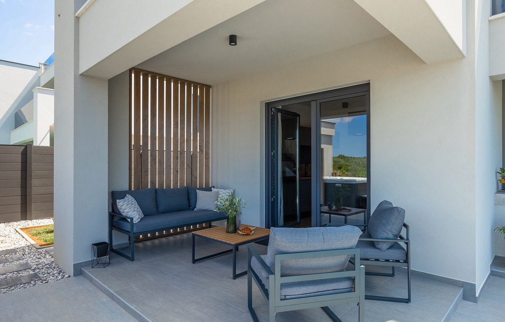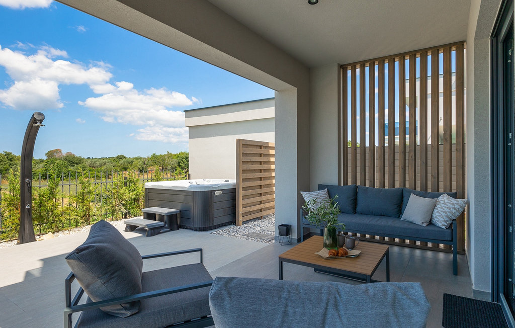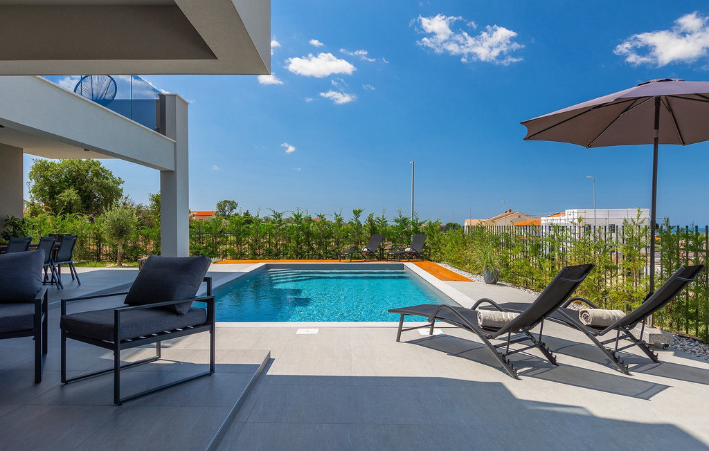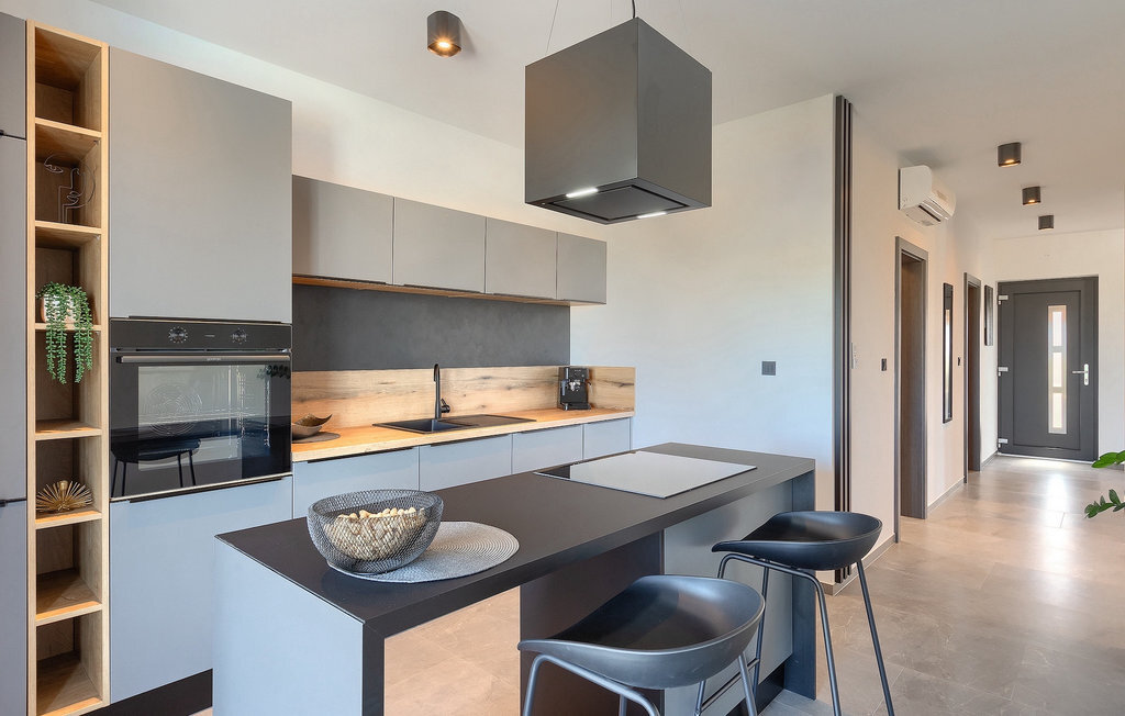La villa IVaLA est une magnifique villa familiale située près de Pula, idéale pour des vacances de rêve en famille ou entre amis. Devant la villa se trouve une magnifique piscine de 32 m2. Pendant les chaleurs estivales, vous trouverez de quoi vous rafraîchir dans la piscine, tandis que les amateurs de soleil pourront profiter du soleil d'Istrie sur les chaises longues installées directement au bord de la piscine. Détendez-vous dans le jacuzzi extérieur. Dégustez des plats istriens préparés sur le barbecue dans un espace couvert devant la villa, où vous trouverez une table à manger pour 8 personnes. Les plus jeunes s'amuseront sur l'aire de jeux pour enfants, équipée de balançoires et de structures d'escalade. Mais le divertissement n'est pas en reste dans la villa. Sur la terrasse au premier étage de la villa, vous pouvez faire une partie de baby-foot. Au rez-de-chaussée de la villa, il y a un salon confortable avec une vue magnifique sur la piscine. Dans l'espace ouvert, il y a également une cuisine équipée avec tout ce dont vous avez besoin pour préparer de délicieux repas et une salle à manger avec 6 places assises. Au même étage, une salle de bains et des toilettes séparées sont à votre disposition. Au premier étage se trouvent les chambres à coucher. La première chambre est équipée d'un lit double et d'une salle de bain privée. Les deux autres chambres disposent de lits doubles et une salle de bain séparée se trouve à cet étage. Toutes les chambres disposent de l'air conditionné, d'une télévision et de terrasses privées où vous pourrez savourer votre café matinal tout en admirant la magnifique vue sur la mer. La particularité de la villa est la terrasse sur le toit, qui se trouve au deuxième étage. Profitez de la vue unique sur les îles Brijuni et la mer magnifique, qui vous coupera le souffle. Ne manquez pas des vacances uniques dans la villa IVaLA avec vue panoramique et profitez de l'atmosphère du charmant village de Galizana. Galizana est un village d'Istrie situé entre Vodnjan et Pula. Galizana a une histoire et une tradition riches qui remontent à l'Antiquité. La population locale vous ravira avec ses produits. Ne manquez pas de goûter à l'huile d'olive extra-vierge, au fromage de brebis et à d'autres produits locaux. Amusez-vous lors des manifestations locales telles que les nuits galiciennes et le folklore. Ne manquez pas de visiter Vodnjan et sa riche offre gastronomique. Explorez Vodnjan avec ses peintures murales intéressantes, l'église St. Foska, près de laquelle se trouvent trois kazuns, des abris traditionnels en pierre d'Istrie. Les amoureux de la nature apprécieront le village de Peroj et admireront la vue magnifique sur le canal de Fazana et l'archipel de Brijuni. Une destination incontournable est la plus grande ville d'Istrie, Pula, où vous pourrez visiter l'arène de Pula, le temple d'Auguste, la Porte d'Or et de nombreux autres monuments culturels et historiques. À la fin de votre aventure en Istrie, explorez l'archipel de Brijuni avec le célèbre parc national de Brijuni et son parc safari.