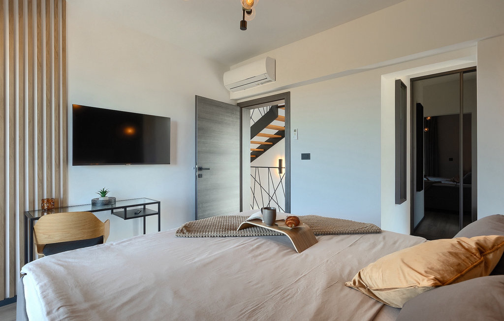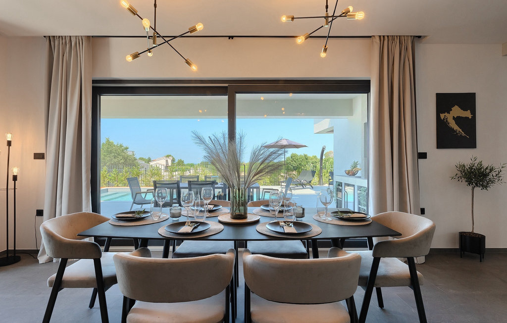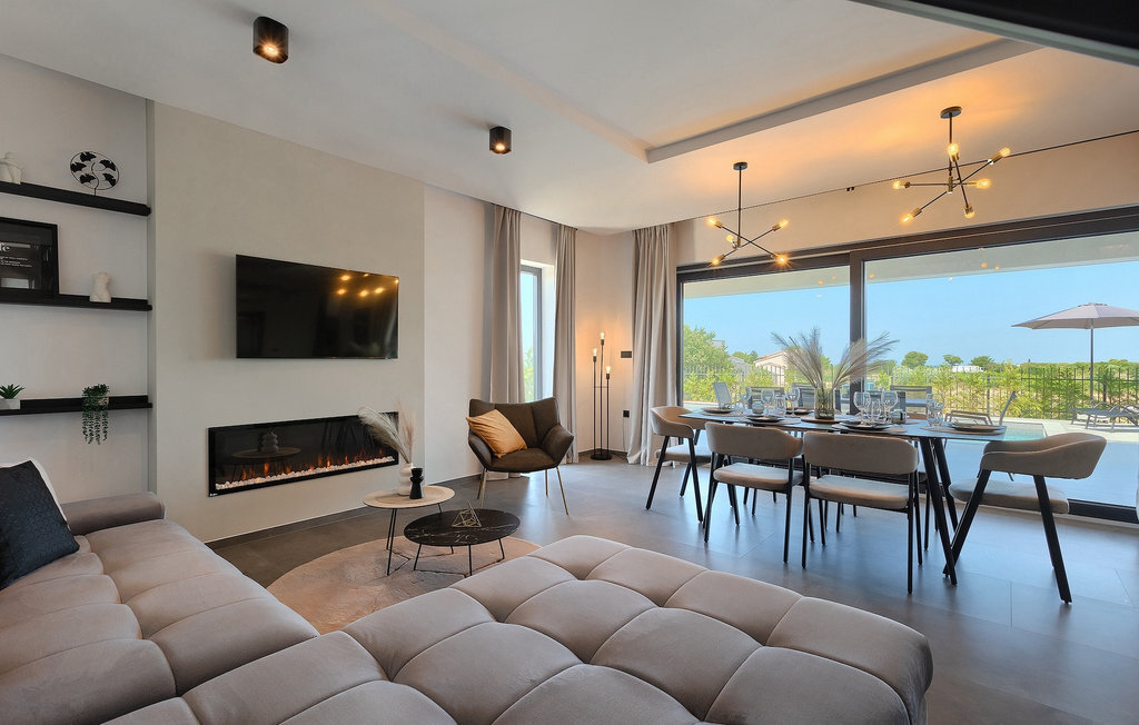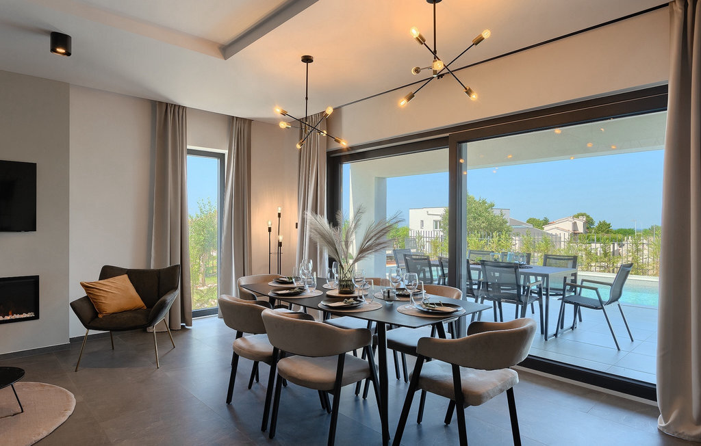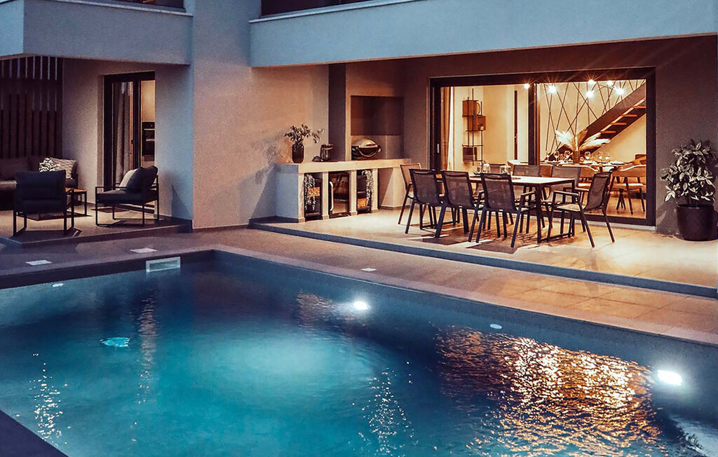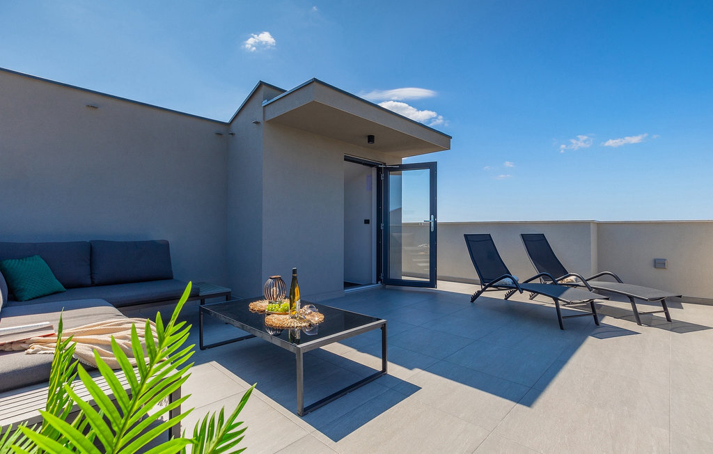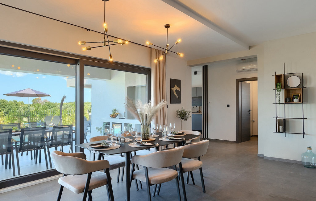 La villa IVaLA est une magnifique villa familiale située près de Pula, idéale pour des vacances de rêve en famille ou entre amis. Devant la villa se trouve une magnifique piscine de 32 m2. Pendant les chaleurs estivales, vous trouverez de quoi vous rafraîchir dans la piscine, tandis que les amateurs de soleil pourront profiter du soleil d'Istrie sur les chaises longues installées directement au bord de la piscine. Détendez-vous dans le jacuzzi extérieur. Dégustez des plats istriens préparés sur le barbecue dans un espace couvert devant la villa, où vous trouverez une table à manger pour 8 personnes. Les plus jeunes s'amuseront sur l'aire de jeux pour enfants, équipée de balançoires et de structures d'escalade. Mais le divertissement n'est pas en reste dans la villa. Sur la terrasse au premier étage de la villa, vous pouvez faire une partie de baby-foot. Au rez-de-chaussée de la villa, il y a un salon confortable avec une vue magnifique sur la piscine. Dans l'espace ouvert, il y a également une cuisine équipée avec tout ce dont vous avez besoin pour préparer de délicieux repas et une salle à manger avec 6 places assises. Au même étage, une salle de bains et des toilettes séparées sont à votre disposition. Au premier étage se trouvent les chambres à coucher. La première chambre est équipée d'un lit double et d'une salle de bain privée. Les deux autres chambres disposent de lits doubles et une salle de bain séparée se trouve à cet étage. Toutes les chambres disposent de l'air conditionné, d'une télévision et de terrasses privées où vous pourrez savourer votre café matinal tout en admirant la magnifique vue sur la mer. La particularité de la villa est la terrasse sur le toit, qui se trouve au deuxième étage. Profitez de la vue unique sur les îles Brijuni et la mer magnifique, qui vous coupera le souffle. Ne manquez pas des vacances uniques dans la villa IVaLA avec vue panoramique et profitez de l'atmosphère du charmant village de Galizana. Galizana est un village d'Istrie situé entre Vodnjan et Pula. Galizana a une histoire et une tradition riches qui remontent à l'Antiquité. La population locale vous ravira avec ses produits. Ne manquez pas de goûter à l'huile d'olive extra-vierge, au fromage de brebis et à d'autres produits locaux. Amusez-vous lors des manifestations locales telles que les nuits galiciennes et le folklore. Ne manquez pas de visiter Vodnjan et sa riche offre gastronomique. Explorez Vodnjan avec ses peintures murales intéressantes, l'église St. Foska, près de laquelle se trouvent trois kazuns, des abris traditionnels en pierre d'Istrie. Les amoureux de la nature apprécieront le village de Peroj et admireront la vue magnifique sur le canal de Fazana et l'archipel de Brijuni. Une destination incontournable est la plus grande ville d'Istrie, Pula, où vous pourrez visiter l'arène de Pula, le temple d'Auguste, la Porte d'Or et de nombreux autres monuments culturels et historiques. À la fin de votre aventure en Istrie, explorez l'archipel de Brijuni avec le célèbre parc national de Brijuni et son parc safari.
