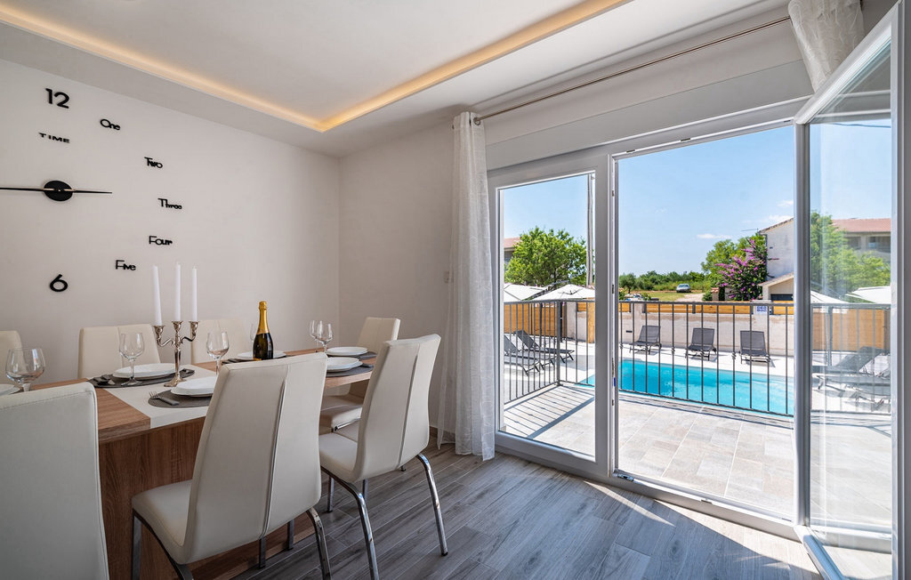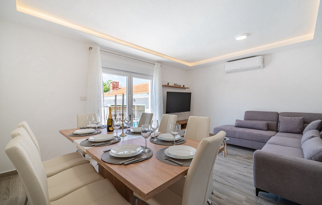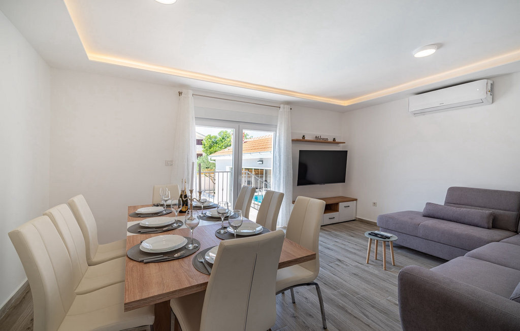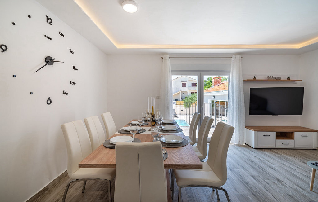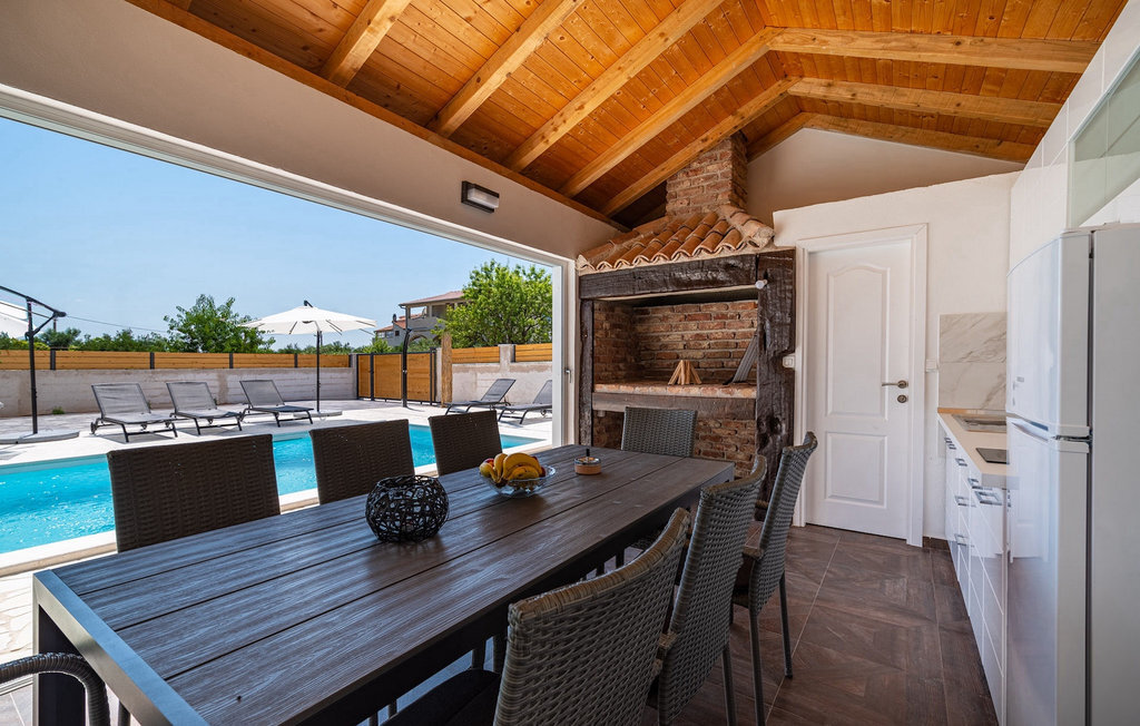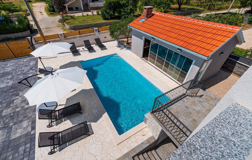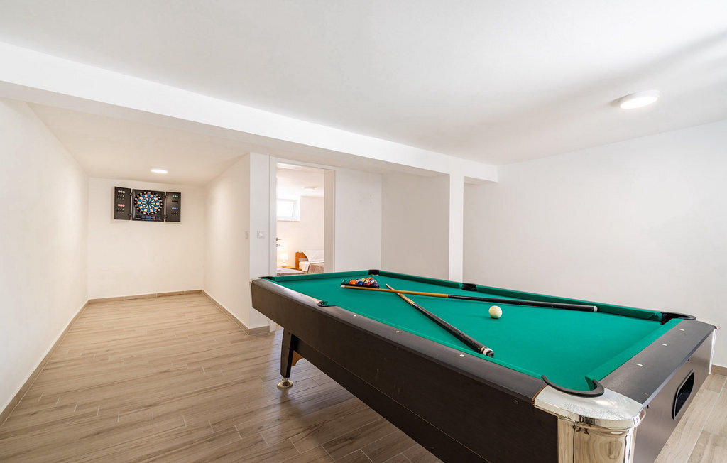 La villa Feniks, située dans le village de Polaa, est une villa idéale pour des vacances en famille. Le jardin est entièrement clôturé et vous offre l'intimité souhaitée pendant vos vacances. Devant cette magnifique villa se trouve une piscine de 32 mètres carrés dans laquelle vous pourrez vous rafraîchir de la chaleur estivale. Si vous êtes un fan des bains de soleil, détendez-vous dans les chaises longues au bord de la piscine et profitez de boissons rafraîchissantes et de lectures intéressantes. Près de la piscine, il y a un espace couvert avec une cuisine extérieure et une table à manger en bois de 8 places, où vous pourrez déguster des spécialités dalmates au barbecue. Réveillez l'enfant qui sommeille en vous et amusez-vous avec les plus jeunes membres de la famille sur le trampoline. Les possibilités de divertissement ne manquent pas dans la villa : dans la salle du sous-sol, vous pouvez jouer au billard ou aux fléchettes. L'intérieur de la villa ne vous décevra pas non plus. Au rez-de-chaussée de la villa, il y a une cuisine avec tout ce dont vous avez besoin pour préparer vos repas, un espace ouvert avec un salon confortable et une salle à manger. Au premier étage de la villa, il y a une salle de bain, une chambre à coucher avec un lit double, une deuxième chambre à coucher qui dispose également d'un lit double et une troisième chambre à coucher avec un lit superposé, qui sera certainement appréciée par les plus jeunes clients. Les chambres à coucher du premier étage disposent d'une télévision et de la climatisation. Au sous-sol de la villa se trouve une quatrième chambre avec deux lits simples et la climatisation. Des vacances à la Villa Phoenix vous revigoreront et vous élèveront tel un phénix vers de nouvelles victoires dans la vie. Ne manquez pas des vacances amusantes en famille dans l'atmosphère dalmate de Polaa. La villa Feniks est située à Polaa, près de la ville de Biograd na Moru. Elle se trouve dans la région de Ravni Kotar, connue pour sa cerise locale Maraska et son agrotourisme. Visitez le parc naturel du lac Vrana, qui abrite le plus grand lac naturel et l'une des plus grandes zones humides de la région méditerranéenne de Croatie. Le territoire du parc compte 95 espèces protégées par la loi. La vieille ville de Vrana a été créée au Moyen-Âge à proximité immédiate du lac. Le monastère bénédictin a ensuite été utilisé par les chevaliers templiers et les insignes symboles du pouvoir du royaume croate ont longtemps été conservés entre ses murs. Visitez les centres touristiques de Biograd na Moru et Pakotane. Pakotane est situé au centre de la Dalmatie et possède de nombreuses attractions culturelles et historiques telles que les églises St-Justin, St-Michel, St-Roka et des fêtes locales comme le carnaval, les jeux d'été. Biograd na moru est une station balnéaire d'été réputée et populaire avec de magnifiques plages de sable. Les amateurs d'histoire peuvent visiter le musée de Biograd. Visitez de nombreuses îles comme Paman, Galesnjak et NP Kornati. Une destination incontournable est Zadar, le berceau culturel et historique de la Croatie, célèbre pour l'église Sainte-Donata, Sainte-Stoija et Sainte-Marie, le coffre de Saint imuna, la rue principale Kalelarga, l'orgue de mer et le salut au soleil.
