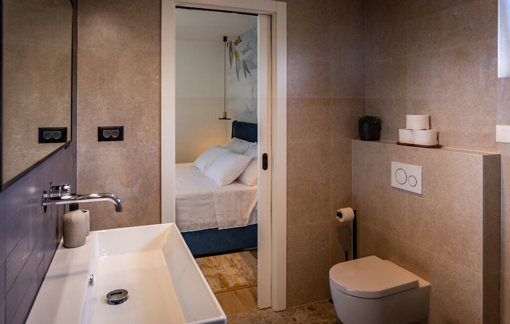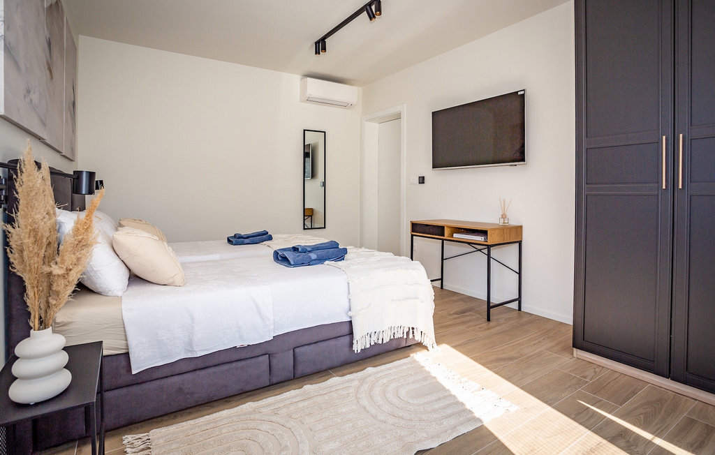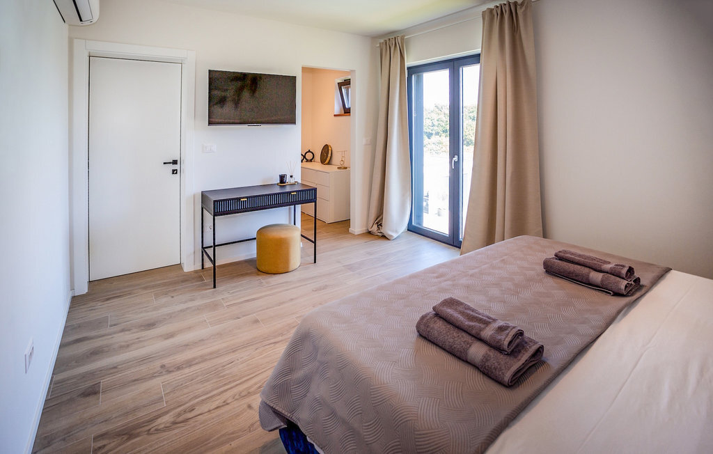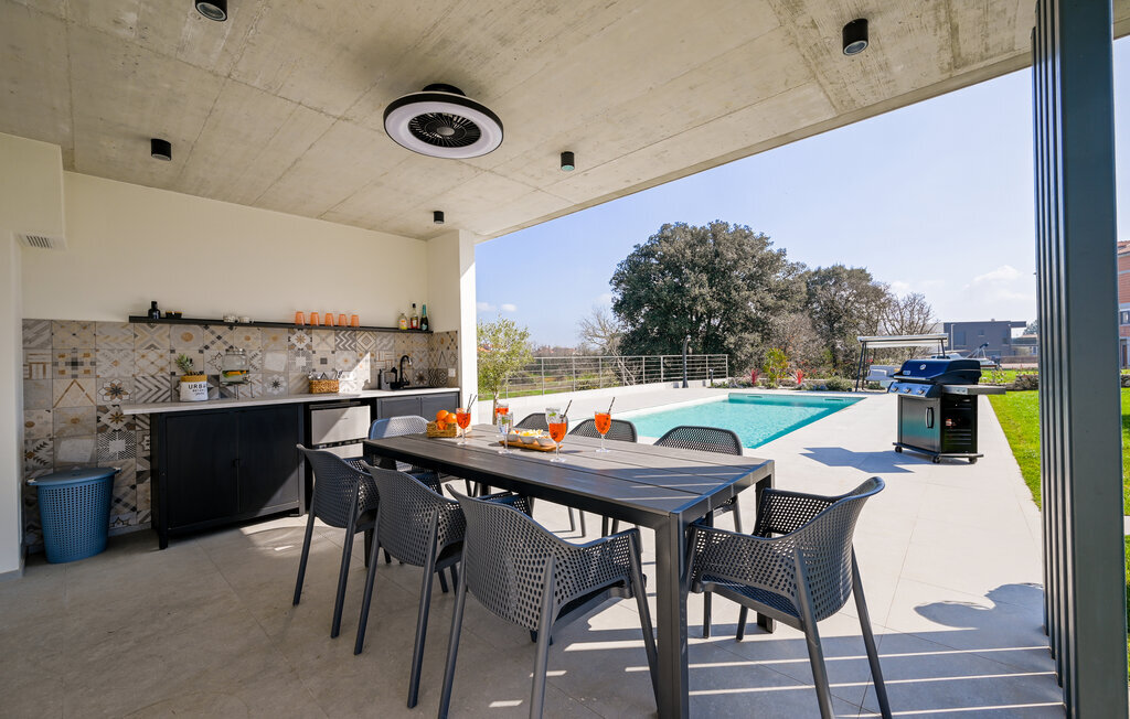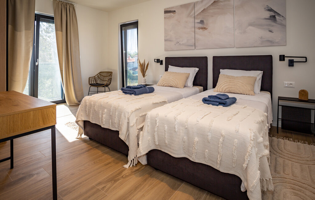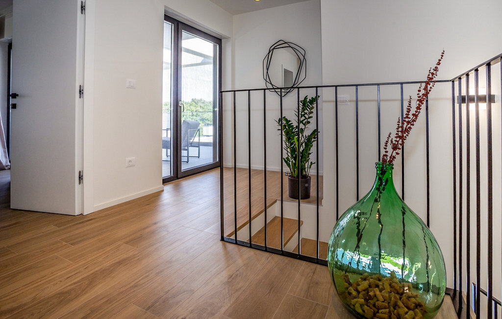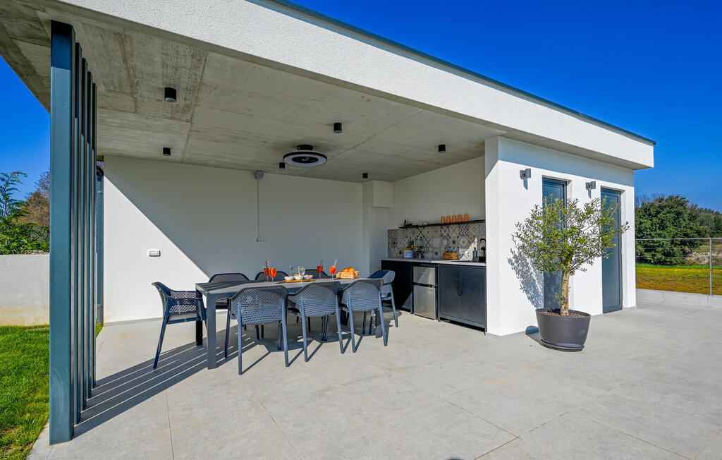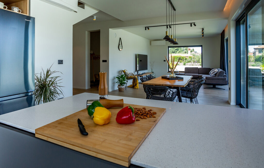 La villa moderne Mia Stella est une villa époustouflante située dans un endroit à couper le souffle, à un jet de pierre du centre-ville de la ville étonnamment belle de Rovinj. La maison offre des vacances tranquilles et agréables au bord de la mer pour les familles ou les groupes d'amis. Lorsque vous entrez dans cette oasis de détente, une accueillante piscine de 36 mètres carrés vous attend, avec une eau bleu azur qui reflète la beauté intacte de la nature. À côté de la piscine extérieure, vous trouverez des chaises longues et une cuisine extérieure avec barbecue pour préparer de délicieux plats d'été. Commencez les réunions avec vos proches autour de la table à manger devant l'espace couvert de la villa. À l'intérieur de la villa, il y a un bel espace ouvert avec une cuisine moderne, une salle à manger et un salon confortable avec une vue magnifique sur la piscine et les environs verdoyants. Au rez-de-chaussée de la villa, il y a des toilettes séparées et une buanderie, tandis qu'au premier étage se trouvent 3 chambres à coucher. Une chambre dispose de deux lits simples, tandis que les deux autres ont chacune un lit double. Une chambre à coucher avec lit double dispose de sa propre salle de bain, tandis qu'une autre salle de bain séparée est disponible au premier étage. Toutes les chambres sont confortablement climatisées et disposent de leur propre télévision. Réveillez vos sens au rythme méditerranéen en savourant votre café matinal sur la terrasse du premier étage, un belvédère qui offre une vue panoramique sur la nature environnante. Ici, la journée commence dans le calme et la sérénité. Passez des vacances inoubliables et reposantes avec vos proches dans un environnement calme et profitez de la bonne énergie de la Villa Mia Stella et de la belle ville de Rovinj. La Villa Mia Stella est située au centre de la ville touristique de Rovinj, mais dans un endroit calme. La charmante ville de Rovinj vous séduira par son riche patrimoine historique et culturel, ses ruelles étroites et son atmosphère méditerranéenne. Promenez-vous dans les rues du centre historique et visitez l'église St. Eufemije, le musée local de Rovinj et les galeries. Pour les amateurs de vacances actives, le parc forestier Zlatni rt est l'endroit idéal à Rovinj, où diverses activités les attendent, comme le vélo, les promenades dans la nature et l'escalade libre. Rovinj est également connue pour ses nombreux festivals, ses manifestations locales et sa riche offre gastronomique. Découvrez les délices de Rovinj dans les restaurants et tavernes locaux et faites l'expérience de saveurs istriennes autochtones uniques. Et vous trouverez tout ce dont vous avez besoin pour votre séjour dans la villa dans les magasins situés à environ 100 mètres de l'emplacement de la villa. Ne manquez pas de découvrir les 13 îles de l'archipel de Rovinj et le phare de St. Ivan en pleine mer est une destination appréciée des plongeurs et des amoureux de la nature intacte. Tombez amoureux de cette ville pittoresque et romantique où vous aurez plaisir à revenir. La température de la piscine chauffée dépend de facteurs extérieurs, y compris des conditions météorologiques, et la température de l'eau ne peut donc pas être garantie.
