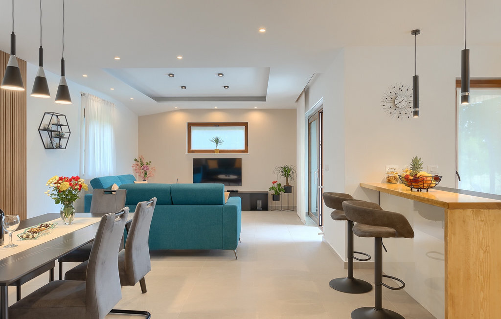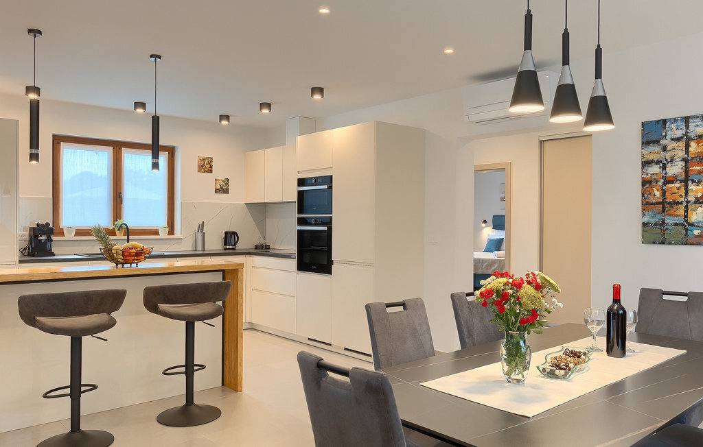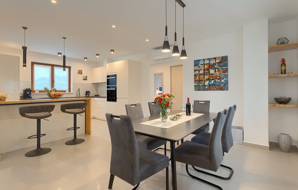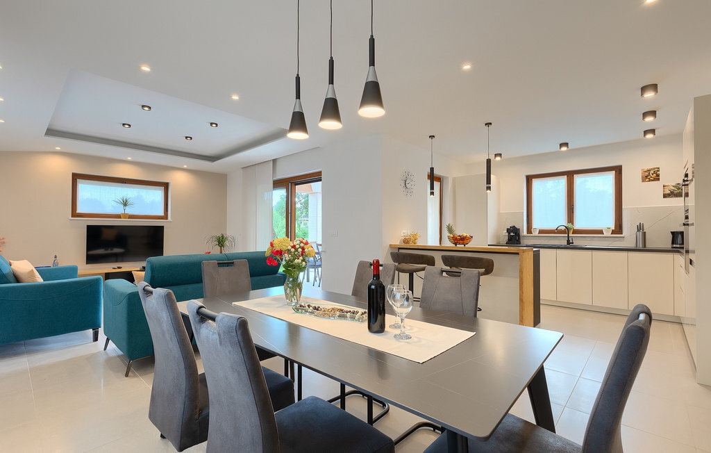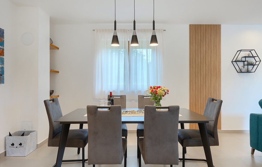 La Villa Dora N est une magnifique villa pour des vacances en famille ou entre amis. Devant la villa se trouve une belle piscine de 32 m2 dans laquelle vous pourrez vous rafraîchir lors des chaudes journées d'été. Amusez-vous au bord de la piscine en jouant au baby-foot ou au badminton, tandis que les plus jeunes peuvent se défouler sur l'aire de jeux pour enfants. Profitez d'un moment de convivialité dans l'espace couvert au bord de la piscine, avec des sièges confortables. Passez des moments inoubliables à rire et à faire des barbecues sur la terrasse couverte de la villa et ressentez la véritable atmosphère istrienne. Au rez-de-chaussée de la villa se trouve un espace ouvert avec une cuisine entièrement équipée pour la préparation de plats traditionnels, une salle à manger et un salon confortable. La première chambre à coucher avec un lit double ainsi qu'une salle de bain et des toilettes séparées se trouve au rez-de-chaussée de la villa. Au premier étage se trouvent deux autres chambres à coucher modernes, l'une avec un lit double et une salle de bain privée, tandis que la deuxième chambre est équipée de deux lits simples et d'une salle de bain privée, où vous pourrez vous reposer et vous préparer pour de nouvelles aventures. Une chambre dispose d'un balcon privé avec vue sur la verdure, idéal pour savourer votre café du matin. Commencez à explorer la magnifique Istrie à la Villa Dora N à Nedescina. La Villa Dora N se trouve dans le village de Nedescina, près de la ville istrienne de Labin. Elle se trouve à 306 mètres au-dessus du niveau de la mer, au-dessus de la vallée de la rivière Rasa. Laissez-vous envoûter par l'atmosphère istrienne, la population locale et l'offre gastronomique de Nedescina. Visitez la ville médiévale de Labin, son musée national et la collection commémorative de Matija Vlacic Ilirik. Observez avec le parfum des pins côtiers et des lauriers la vue de Labin sur Rabac, l'île de Cres et Ucka. Cette ville mystique vous invite à explorer le chemin de la déesse de Labin, Sentona, la patronne des voyageurs. Ce chemin mène jusqu'au centre touristique de Rabac. Ne manquez pas de visiter le centre touristique de Rabac. Rabac est connu pour sa beauté naturelle, ses magnifiques caps et ses plages. Nous vous recommandons également de visiter la plus grande ville d'Istrie, Pula. Admirez l'imposant amphithéâtre romain de Pula et de nombreux autres monuments historiques. Visitez le parc naturel d'Ucka, riche en beauté naturelle et en diversité de la flore et de la faune.