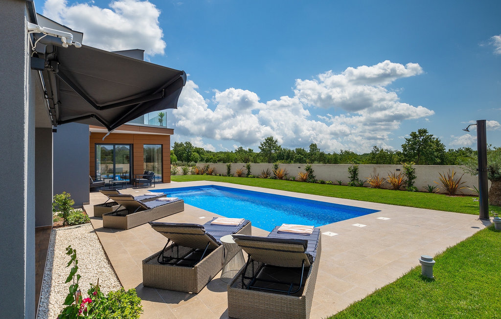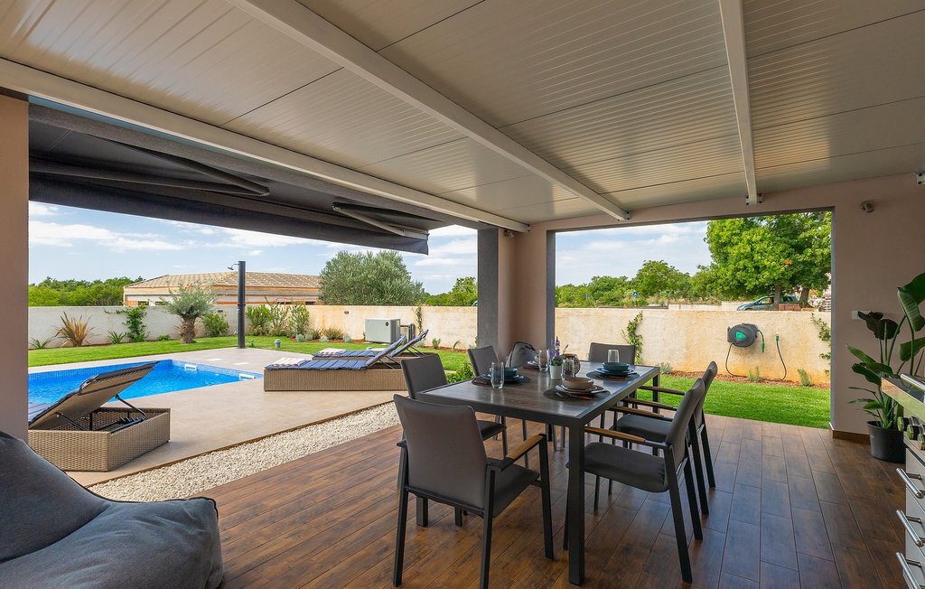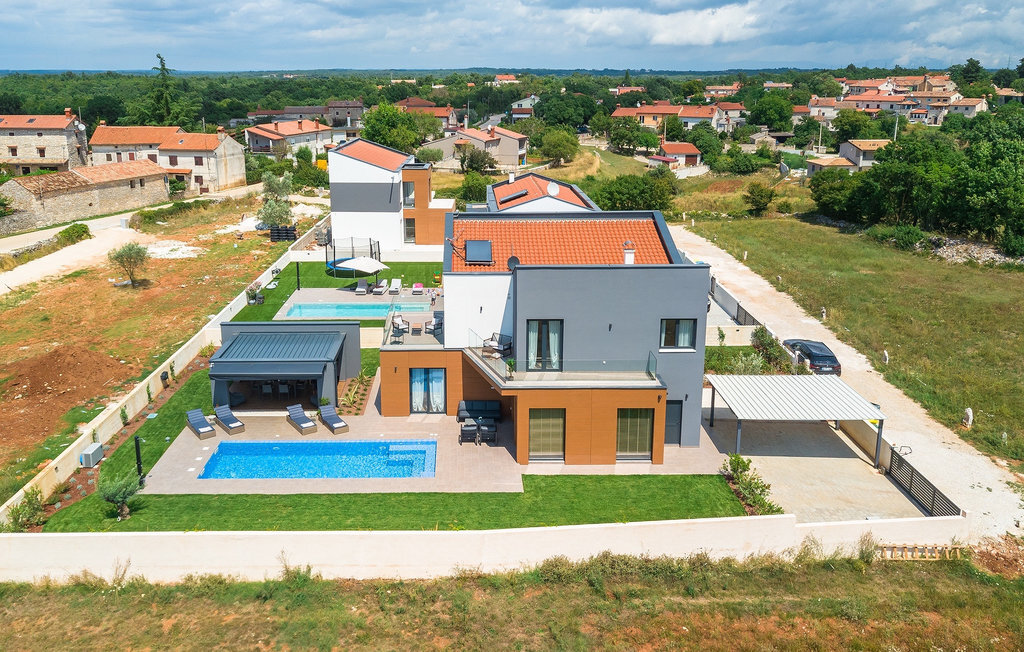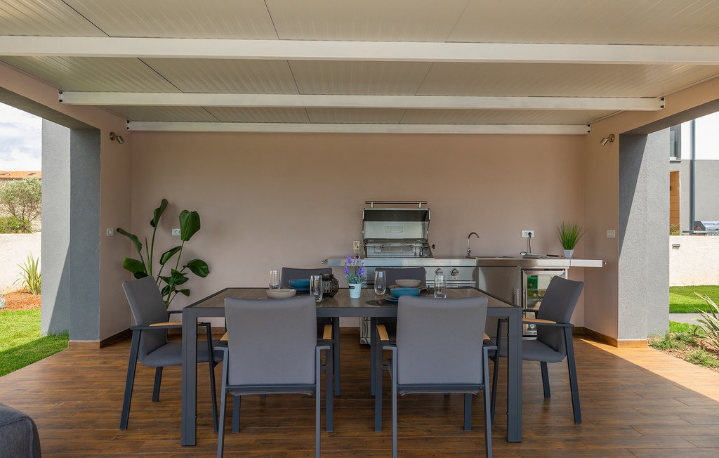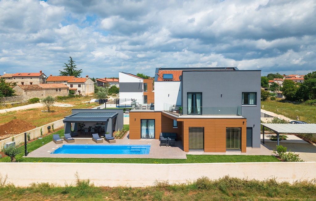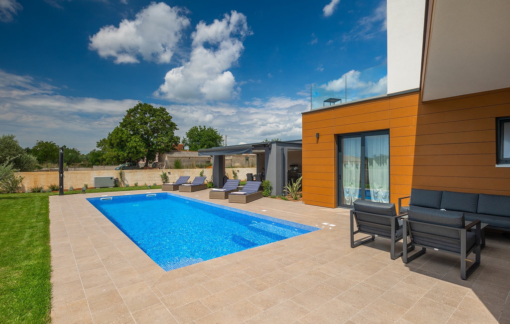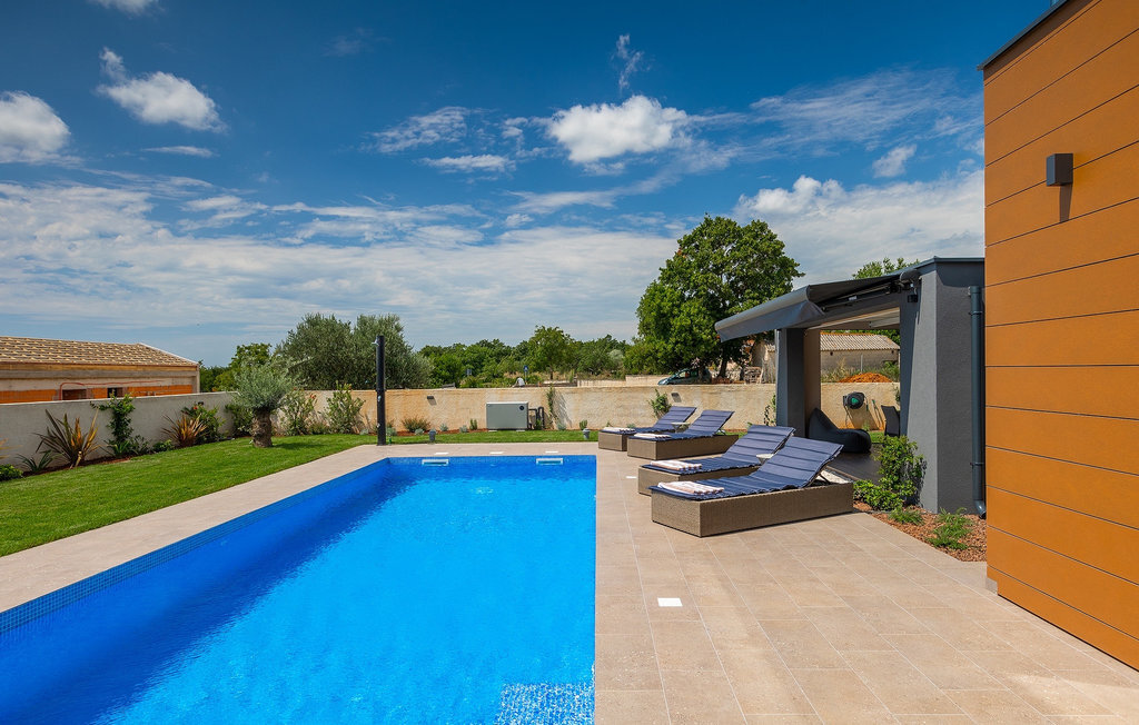 Villa LiLa Sunshine est l'endroit où le luxe rencontre la sérénité. Cette villa élégante et moderne vous offre un séjour luxueux dans l'intérieur de l'Istrie. La villa est située dans un endroit calme à Orbanici, à une courte distance en voiture de Pula et de la côte. La villa LiLa Sunshine peut accueillir jusqu'à 6 hôtes dans 3 chambres à coucher avec lits king-size et salles de bain privées. Toutes les chambres disposent de la climatisation et d'une télévision ainsi que d'un accès à la terrasse ou au balcon. Un petit enfant de moins de trois ans peut également être hébergé dans un lit bébé. La cuisine entièrement équipée et le luxueux salon se trouvent au rez-de-chaussée et offrent une atmosphère fraîche et moderne. À l'extérieur, une piscine privée, un barbecue à gaz et une salle à manger en plein air vous attendent, le tout entouré de verdure dans un endroit calme. Avec un système d'alarme dans la maison, votre tranquillité d'esprit est tout aussi importante que votre confort. Profitez du soleil d'Istrie sur l'une des quatre chaises longues et faites de chaque instant un chef-d'œuvre de confort et de sérénité. La magnifique villa LiLa Sunshine est située au centre de l'Istrie, à Orbanici, une petite ville pleine de charme. C'est ici que vous pourrez découvrir le charmant arrière-pays istrien avec ses paysages magnifiques et ses spécialités gastronomiques comme le fromage, le jambon prosciutto, le miel et les truffes. Les premières plages se trouvent à proximité de Fazana. En ferry ou en bateau, vous pouvez facilement vous rendre d'ici aux magnifiques îles de Brijuni et à leur parc national. La plus grande destination touristique de la région est Pula, qui dispose d'un amphithéâtre à couper le souffle ainsi que d'une série de restaurants, de bars et d'une vie nocturne trépidante. Visitez des villes médiévales comme Svetvincenat, Vodnjan et Bale, connues pour leurs places pittoresques, leurs ruelles sinueuses, leurs tavernes, leurs magasins et leurs cafés. La température de la piscine chauffée dépend de facteurs extérieurs, y compris des conditions météorologiques, et la température de l'eau ne peut donc pas être garantie.