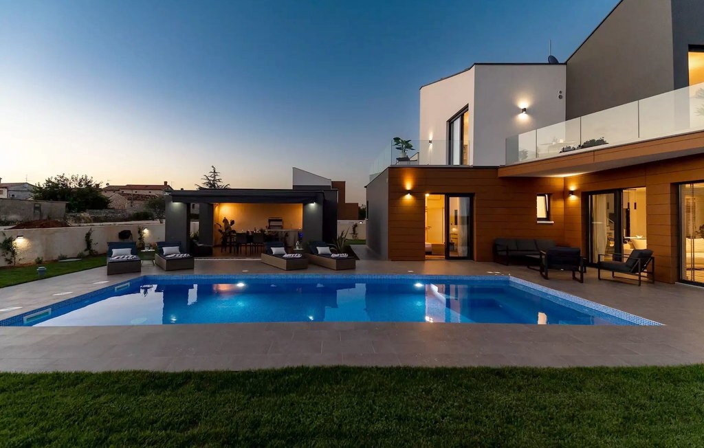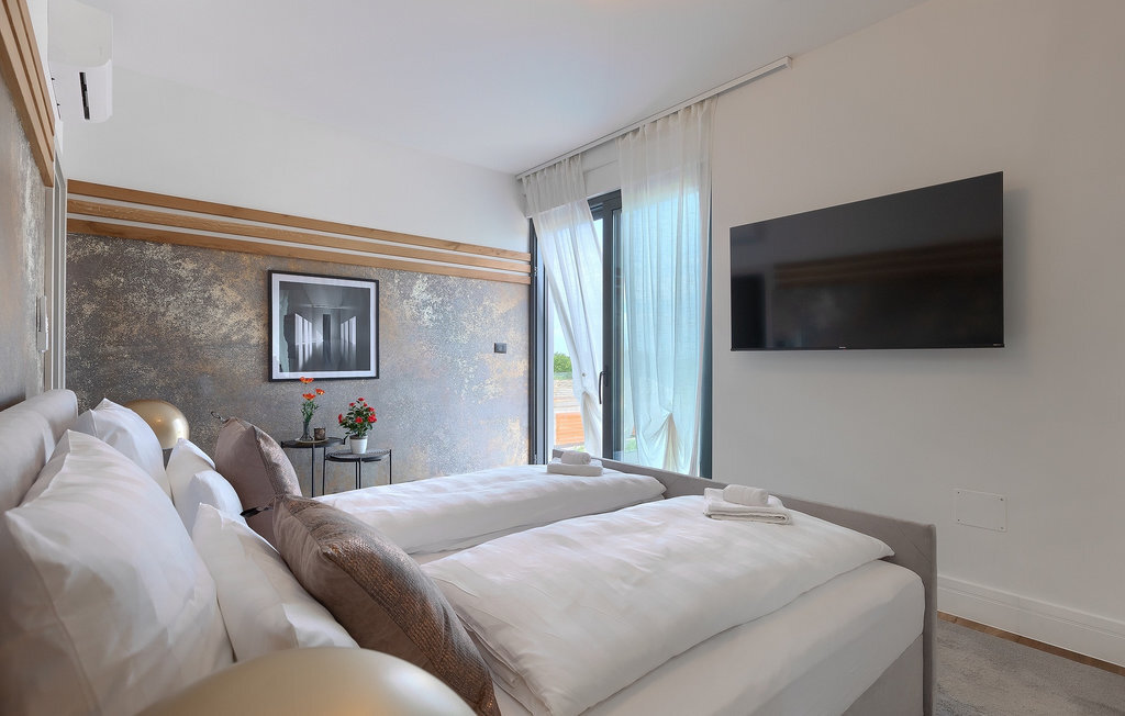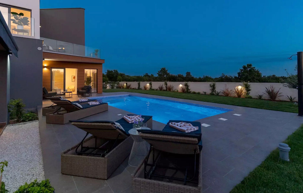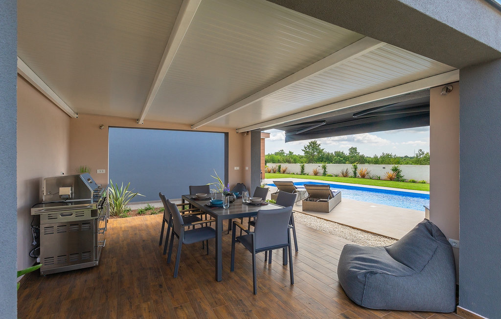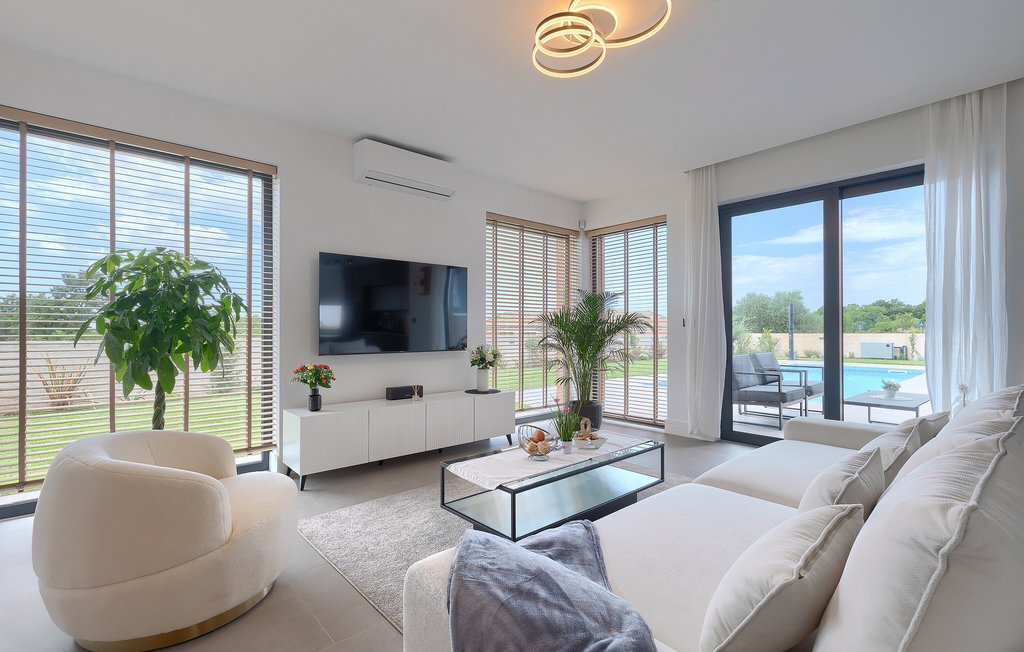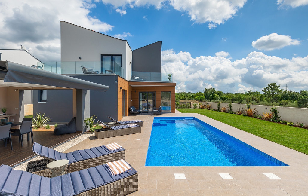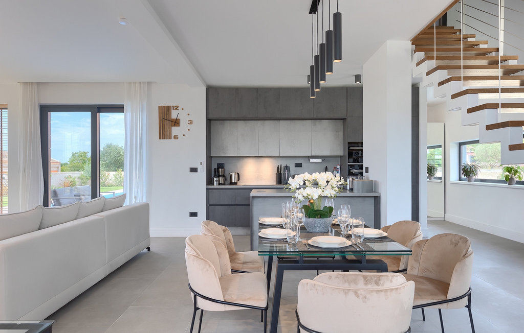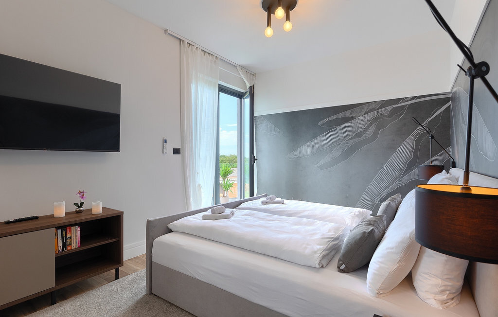 Villa LiLa Sunshine est l'endroit où le luxe rencontre la sérénité. Cette villa élégante et moderne vous offre un séjour luxueux dans l'intérieur de l'Istrie. La villa est située dans un endroit calme à Orbanici, à une courte distance en voiture de Pula et de la côte. La villa LiLa Sunshine peut accueillir jusqu'à 6 hôtes dans 3 chambres à coucher avec lits king-size et salles de bain privées. Toutes les chambres disposent de la climatisation et d'une télévision ainsi que d'un accès à la terrasse ou au balcon. Un petit enfant de moins de trois ans peut également être hébergé dans un lit bébé. La cuisine entièrement équipée et le luxueux salon se trouvent au rez-de-chaussée et offrent une atmosphère fraîche et moderne. À l'extérieur, une piscine privée, un barbecue à gaz et une salle à manger en plein air vous attendent, le tout entouré de verdure dans un endroit calme. Avec un système d'alarme dans la maison, votre tranquillité d'esprit est tout aussi importante que votre confort. Profitez du soleil d'Istrie sur l'une des quatre chaises longues et faites de chaque instant un chef-d'œuvre de confort et de sérénité. La magnifique villa LiLa Sunshine est située au centre de l'Istrie, à Orbanici, une petite ville pleine de charme. C'est ici que vous pourrez découvrir le charmant arrière-pays istrien avec ses paysages magnifiques et ses spécialités gastronomiques comme le fromage, le jambon prosciutto, le miel et les truffes. Les premières plages se trouvent à proximité de Fazana. En ferry ou en bateau, vous pouvez facilement vous rendre d'ici aux magnifiques îles de Brijuni et à leur parc national. La plus grande destination touristique de la région est Pula, qui dispose d'un amphithéâtre à couper le souffle ainsi que d'une série de restaurants, de bars et d'une vie nocturne trépidante. Visitez des villes médiévales comme Svetvincenat, Vodnjan et Bale, connues pour leurs places pittoresques, leurs ruelles sinueuses, leurs tavernes, leurs magasins et leurs cafés. La température de la piscine chauffée dépend de facteurs extérieurs, y compris des conditions météorologiques, et la température de l'eau ne peut donc pas être garantie.