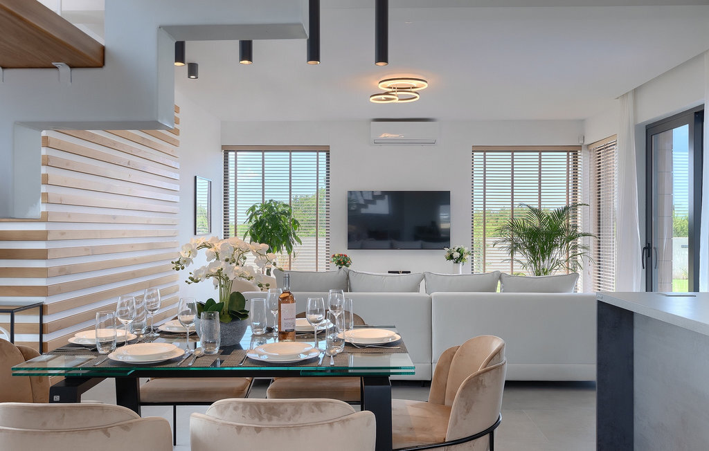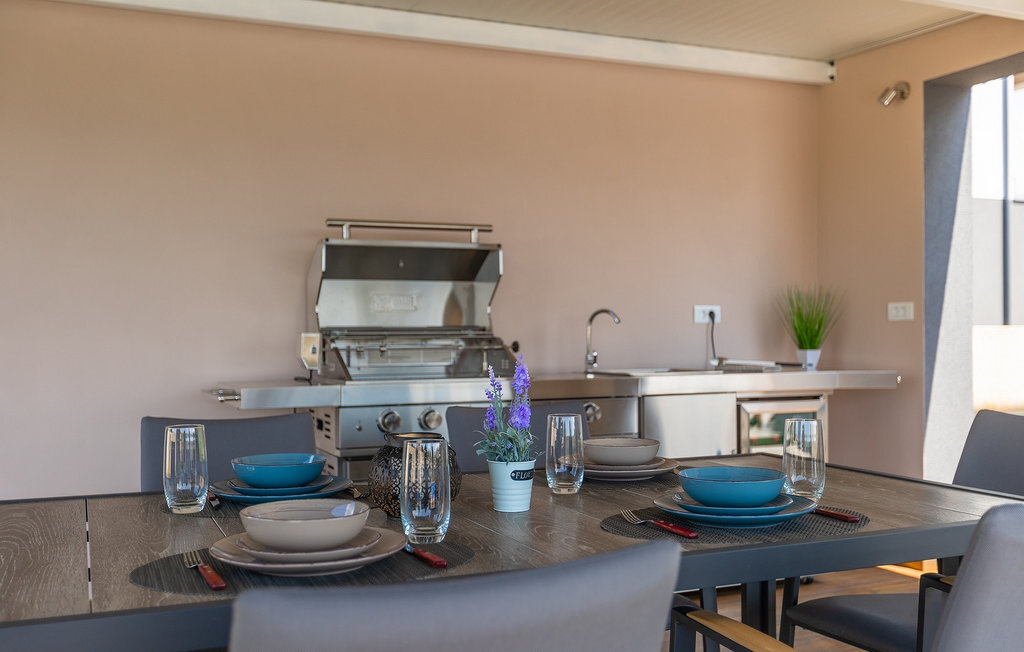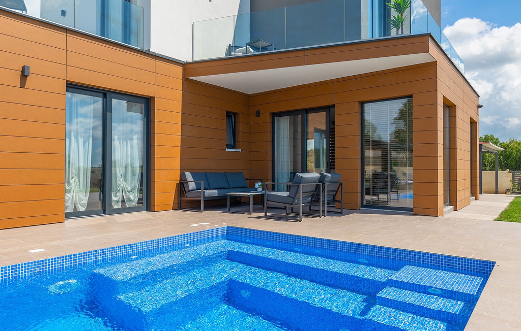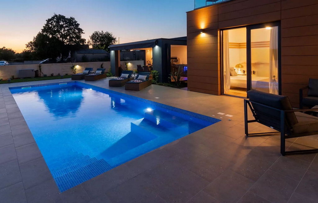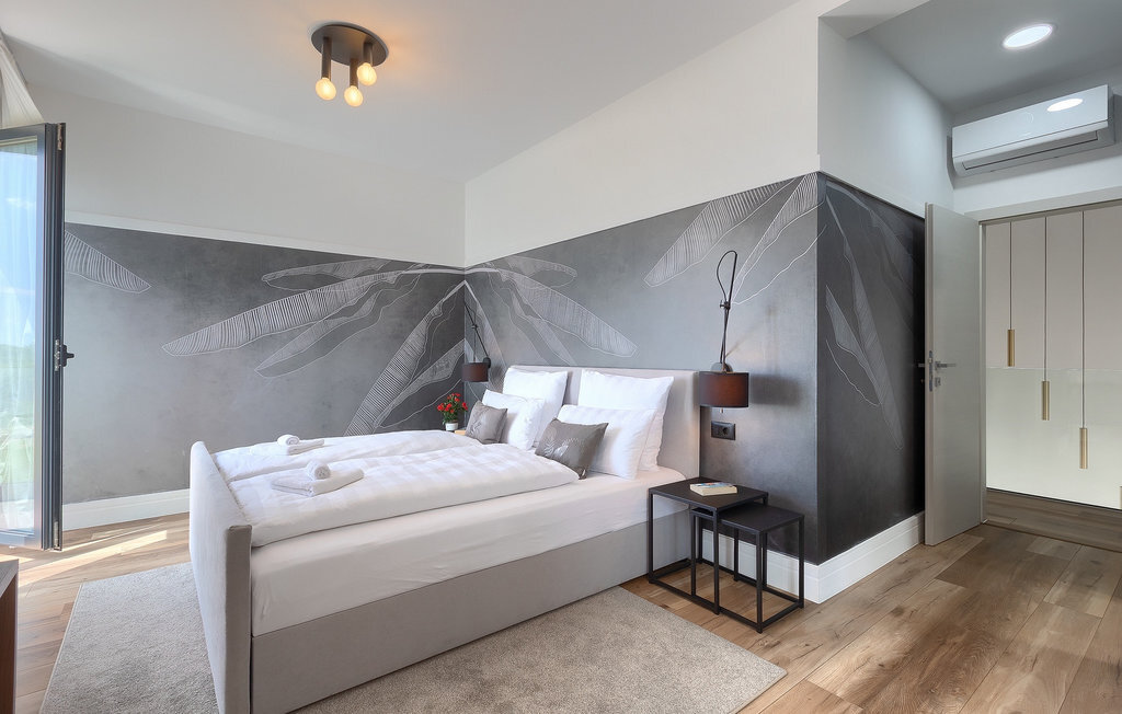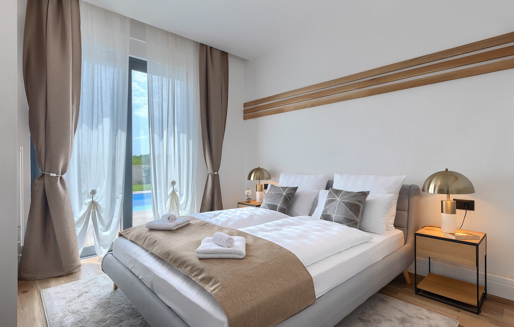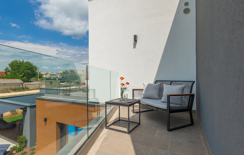 Villa LiLa Sunshine est l'endroit où le luxe rencontre la sérénité. Cette villa élégante et moderne vous offre un séjour luxueux dans l'intérieur de l'Istrie. La villa est située dans un endroit calme à Orbanici, à une courte distance en voiture de Pula et de la côte. La villa LiLa Sunshine peut accueillir jusqu'à 6 hôtes dans 3 chambres à coucher avec lits king-size et salles de bain privées. Toutes les chambres disposent de la climatisation et d'une télévision ainsi que d'un accès à la terrasse ou au balcon. Un petit enfant de moins de trois ans peut également être hébergé dans un lit bébé. La cuisine entièrement équipée et le luxueux salon se trouvent au rez-de-chaussée et offrent une atmosphère fraîche et moderne. À l'extérieur, une piscine privée, un barbecue à gaz et une salle à manger en plein air vous attendent, le tout entouré de verdure dans un endroit calme. Avec un système d'alarme dans la maison, votre tranquillité d'esprit est tout aussi importante que votre confort. Profitez du soleil d'Istrie sur l'une des quatre chaises longues et faites de chaque instant un chef-d'œuvre de confort et de sérénité. La magnifique villa LiLa Sunshine est située au centre de l'Istrie, à Orbanici, une petite ville pleine de charme. C'est ici que vous pourrez découvrir le charmant arrière-pays istrien avec ses paysages magnifiques et ses spécialités gastronomiques comme le fromage, le jambon prosciutto, le miel et les truffes. Les premières plages se trouvent à proximité de Fazana. En ferry ou en bateau, vous pouvez facilement vous rendre d'ici aux magnifiques îles de Brijuni et à leur parc national. La plus grande destination touristique de la région est Pula, qui dispose d'un amphithéâtre à couper le souffle ainsi que d'une série de restaurants, de bars et d'une vie nocturne trépidante. Visitez des villes médiévales comme Svetvincenat, Vodnjan et Bale, connues pour leurs places pittoresques, leurs ruelles sinueuses, leurs tavernes, leurs magasins et leurs cafés. La température de la piscine chauffée dépend de facteurs extérieurs, y compris des conditions météorologiques, et la température de l'eau ne peut donc pas être garantie.