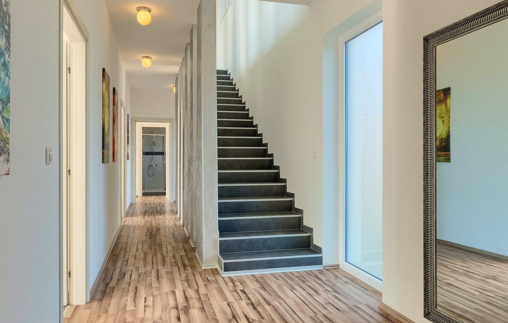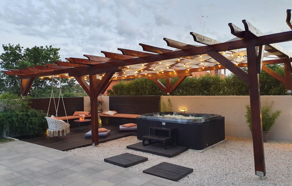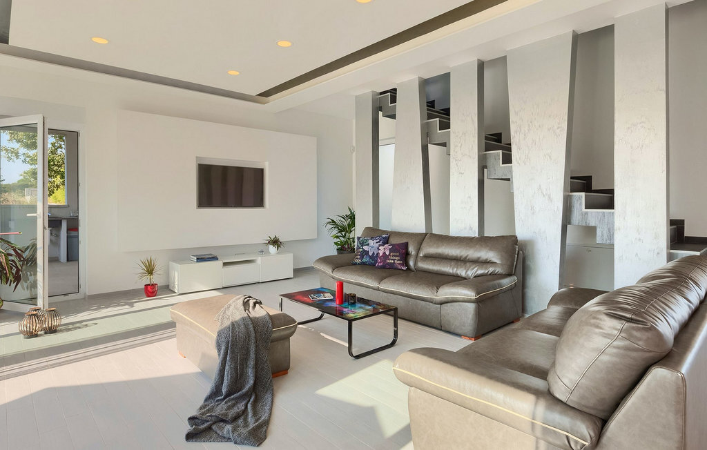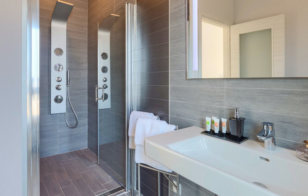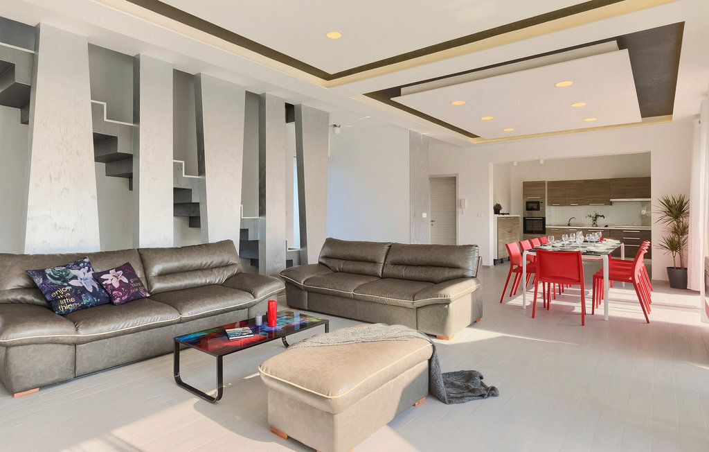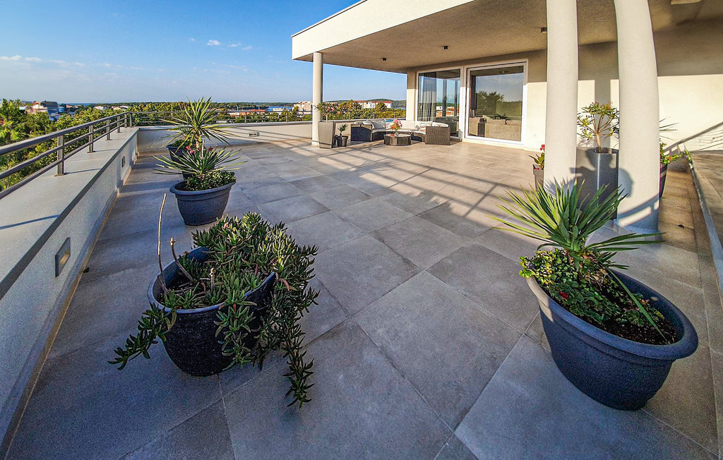 La maison est répartie sur plusieurs étages, chacun avec une grande terrasse qui s'étend sur toute la longueur de la maison. Les immenses fenêtres en forme de galerie offrent des vues magnifiques et permettent un accès direct aux terrasses depuis chaque pièce de la maison. La plus belle vue est bien sûr celle du dernier étage, avec un salon extérieur et un jacuzzi séduisant pour un plaisir de luxe supplémentaire. Ils jouxtent le confortable salon intérieur, le coin idéal pour une soirée cinéma ou des jeux vidéo passionnants. Il y a aussi une chambre double avec une salle de bain privée moderne. Au premier étage se trouvent 4 autres chambres élégantes, 3 chambres doubles et 1 chambre à deux lits, chacune avec une salle de bain en suite. Au rez-de-chaussée se trouve un grand espace de vie lumineux avec une grande table à manger et une cuisine moderne entièrement équipée. Les immenses portes vitrées les relient sans problème à la belle terrasse avec une piscine privée rafraîchissante, ainsi qu'à une spacieuse salle à manger extérieure couverte avec un barbecue à charbon et à gaz. Vous y trouverez également un espace salon extérieur chic pour vos soirées de détente sous les étoiles.