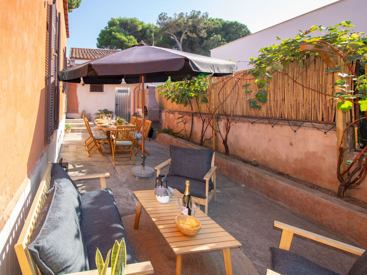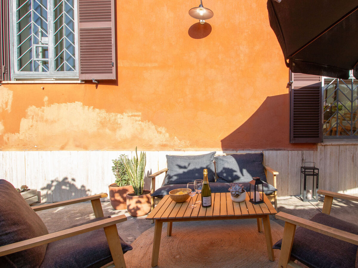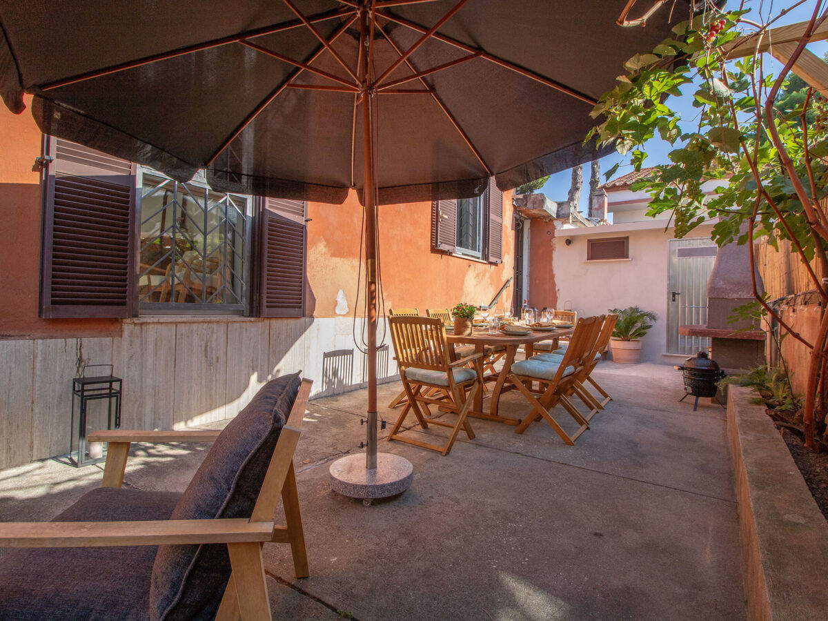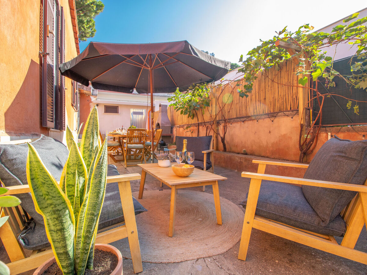 Meubles de jardin, barbecue, parking public 50 m possible dans la rue.