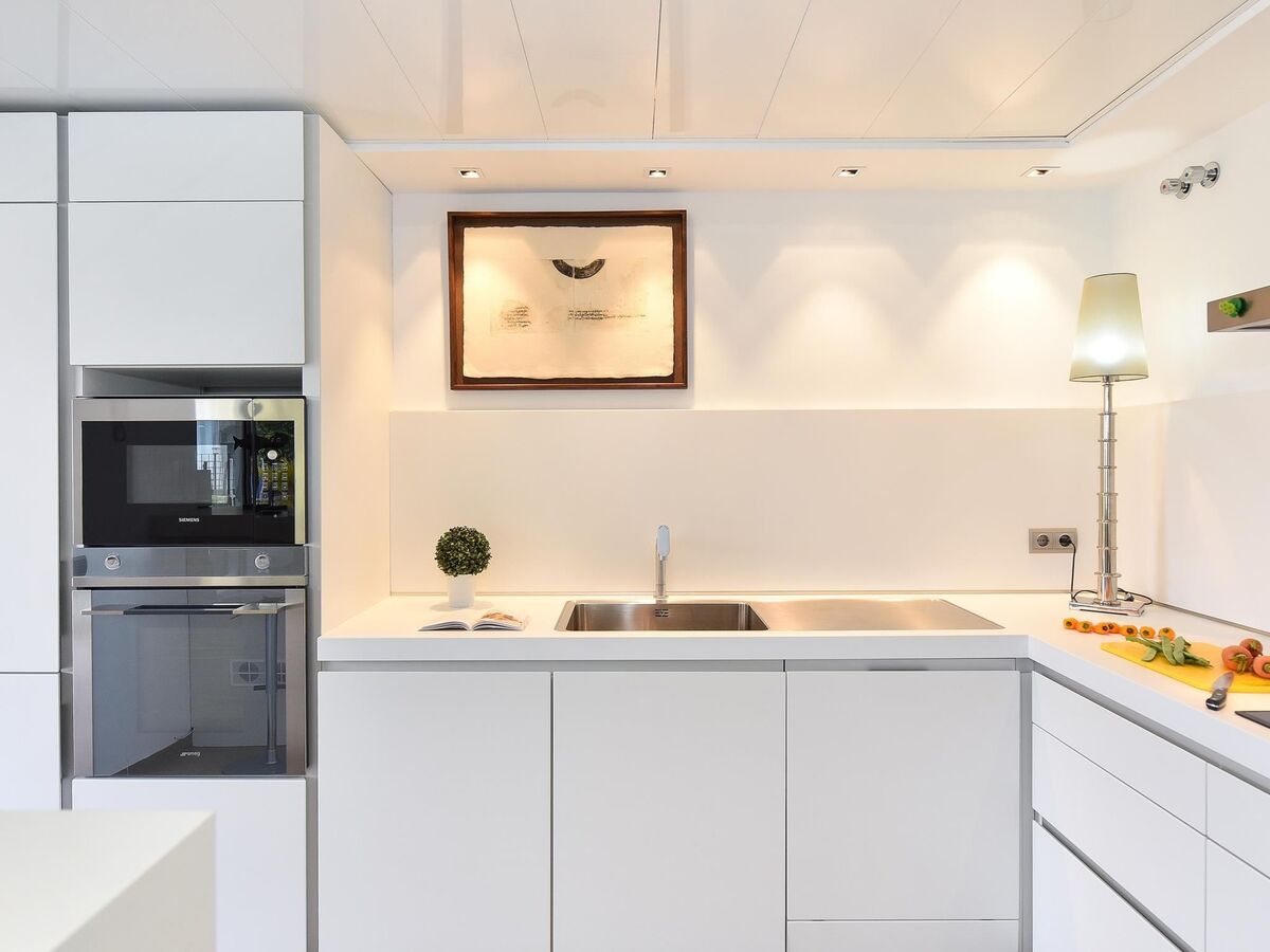 Cuisine ouverte (four, lave-vaisselle, 3 plaques vitrocéramiques, grille-pain, bouilloire électrique, micro-ondes, cafetière électrique).