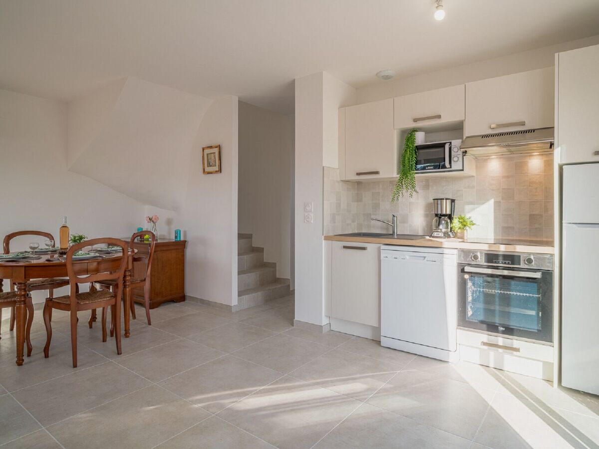 Cuisine ouverte (four, lave-vaisselle, 3 plaques à induction, grille-pain, bouilloire électrique, micro-ondes, cafetière électrique).