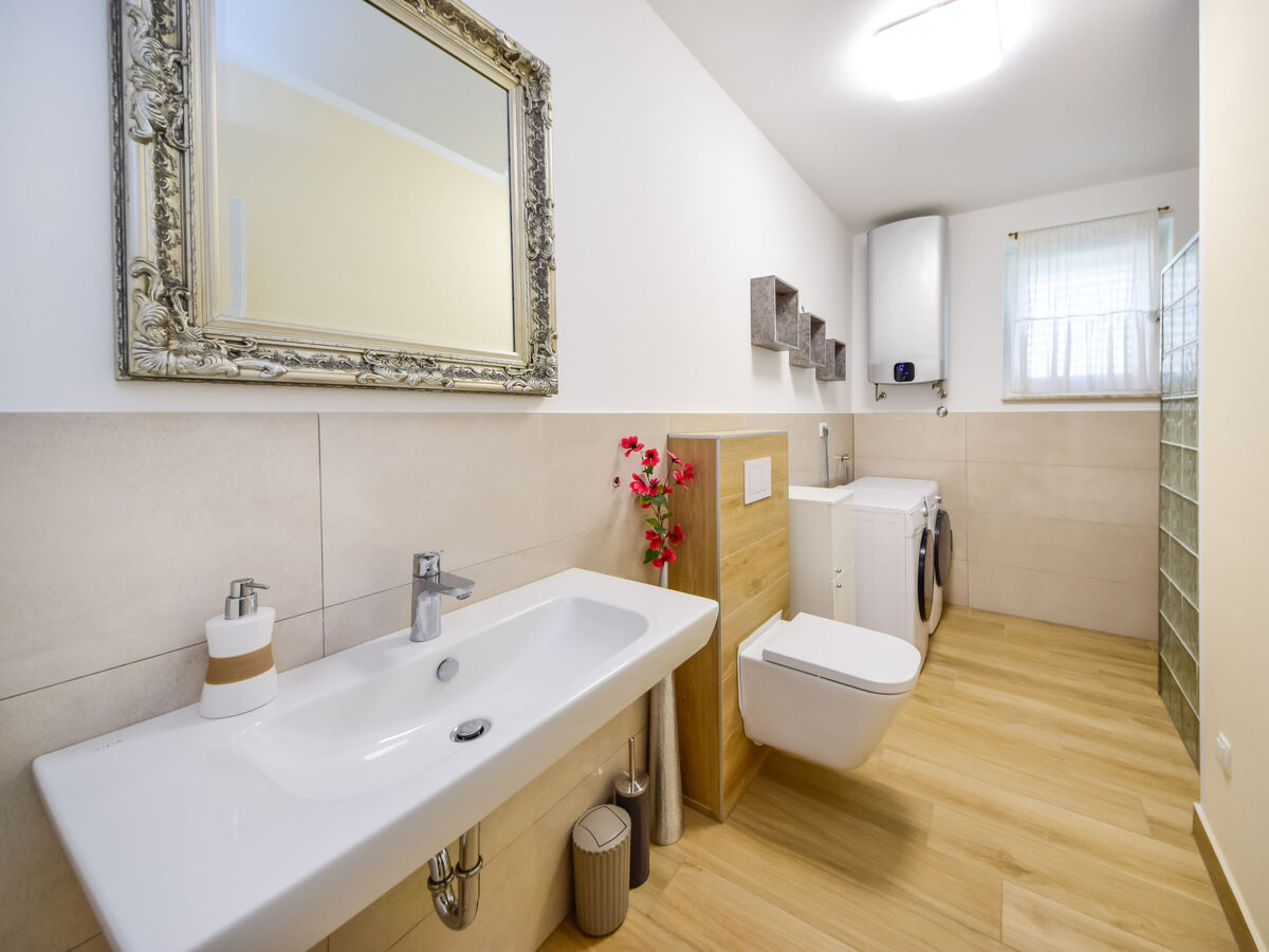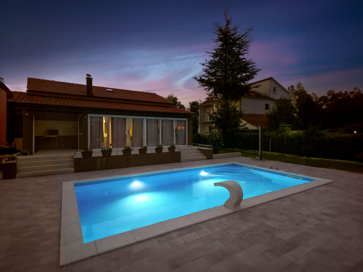 A usage privé: terrain 700 m2 (clôturé), piscine rectangulaire (28 m2, disponibilité saisonnière: 01.Mai.