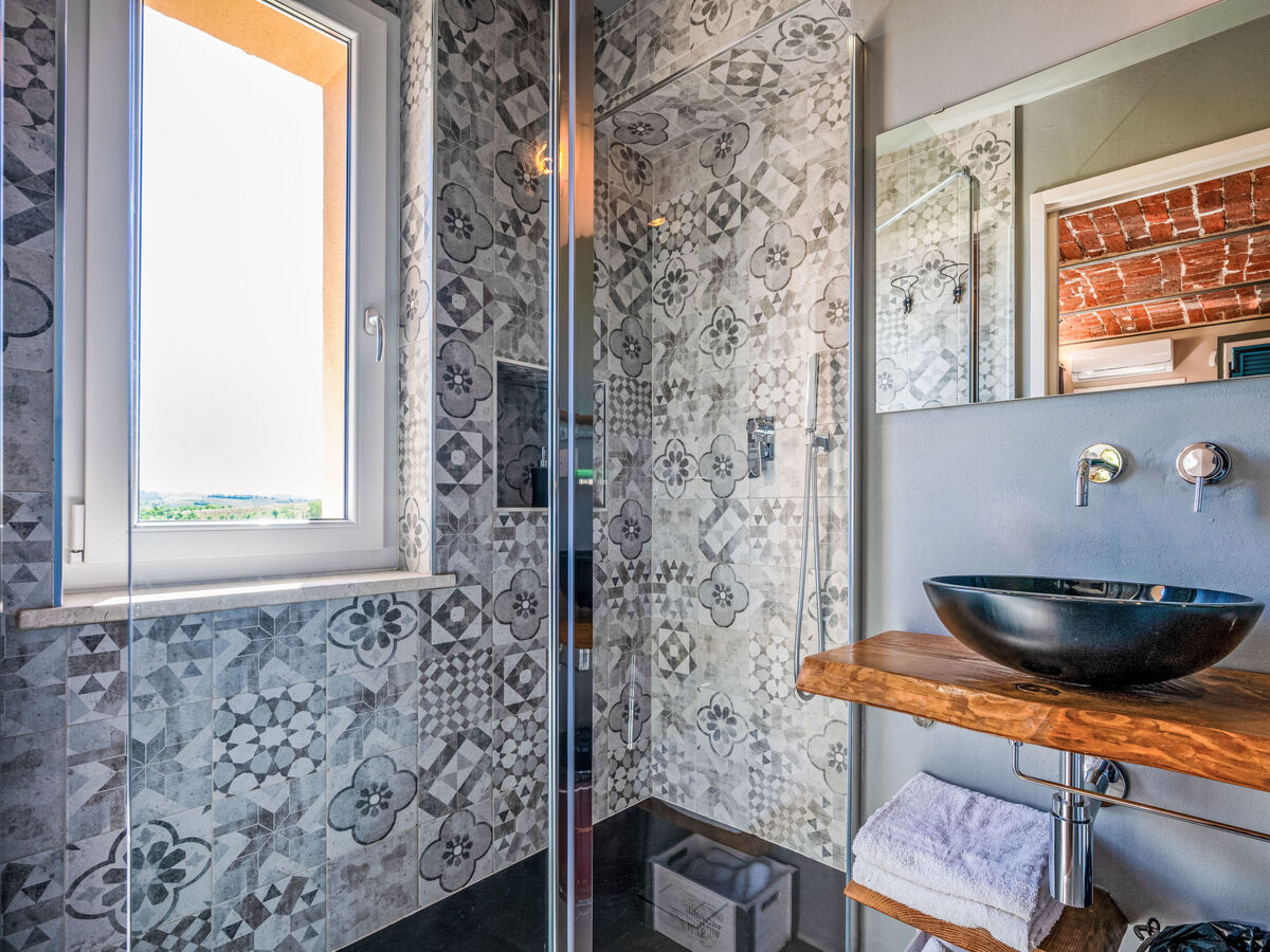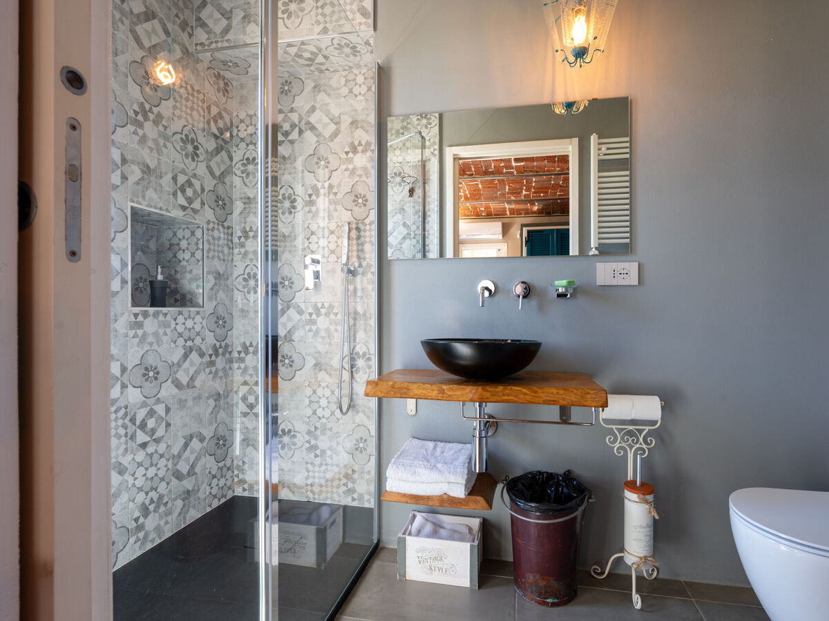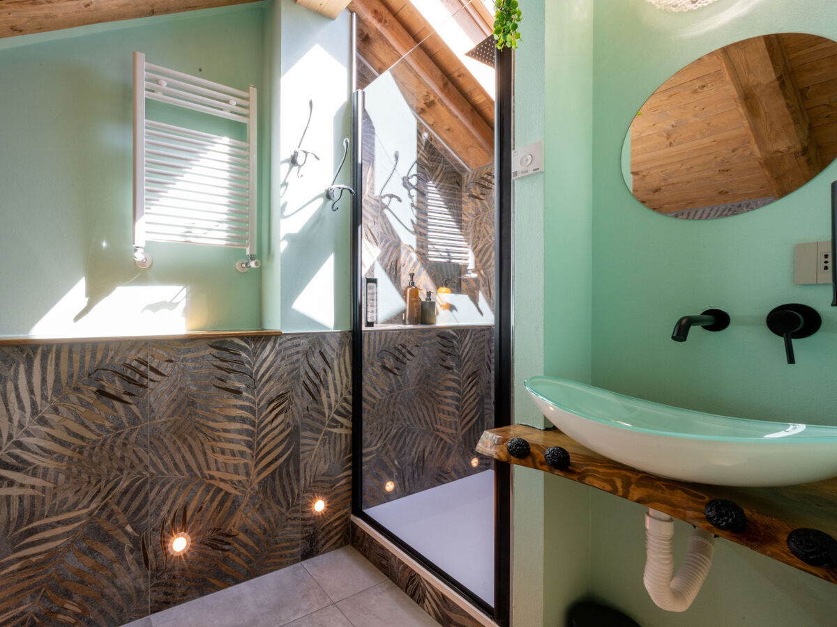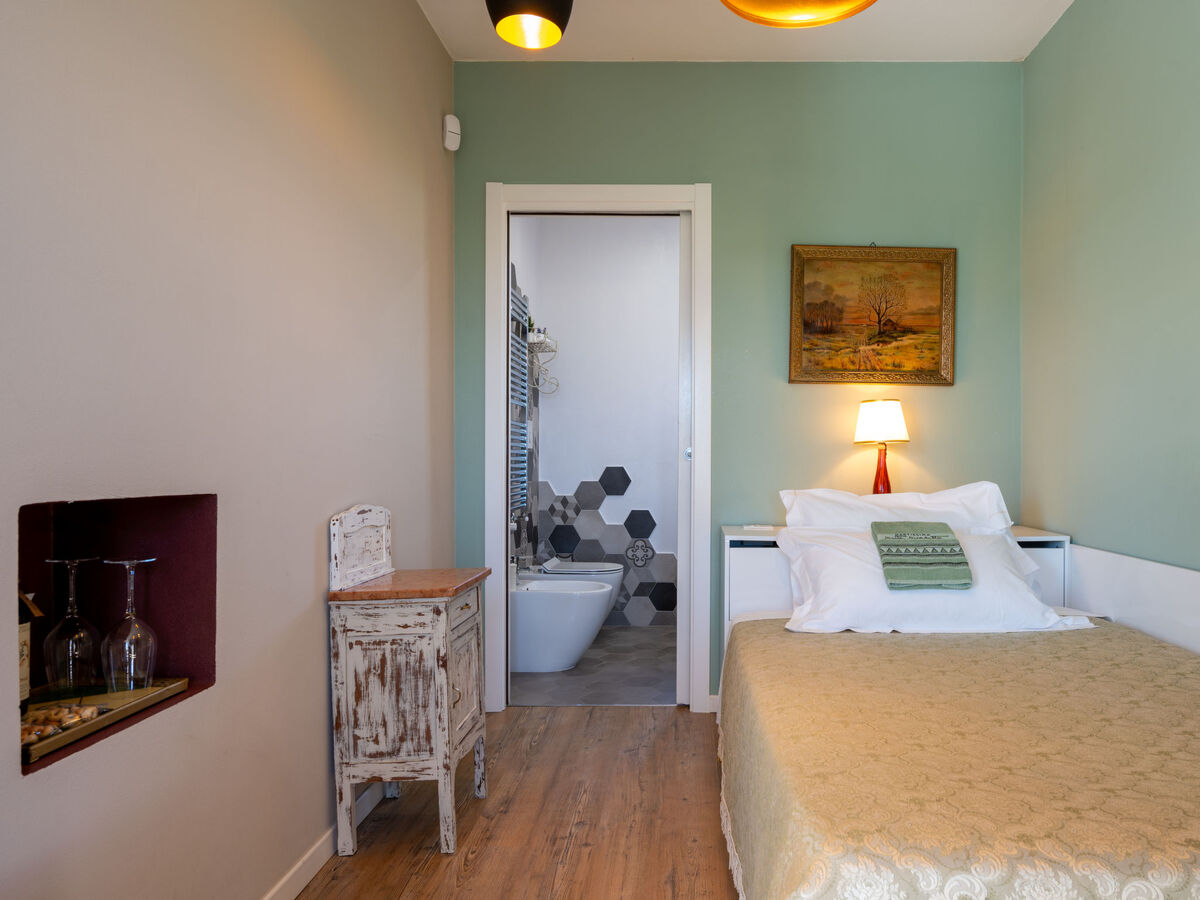 1 chambre avec 1 lit (125 cm, longueur 190 cm), douche/WC et air-conditionné.