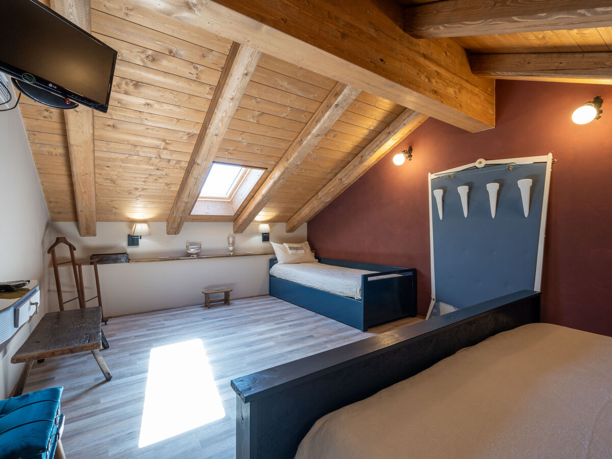 Sous le toit: 1 chambre avec 2 lits, 1 lit double et air-conditionné.