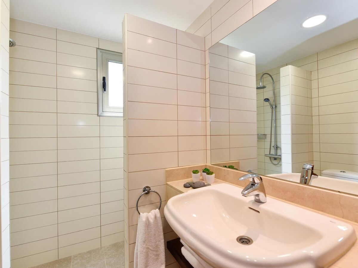 1 chambre avec 1 grand-lit, douche/WC et air-conditionné.