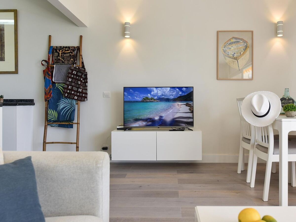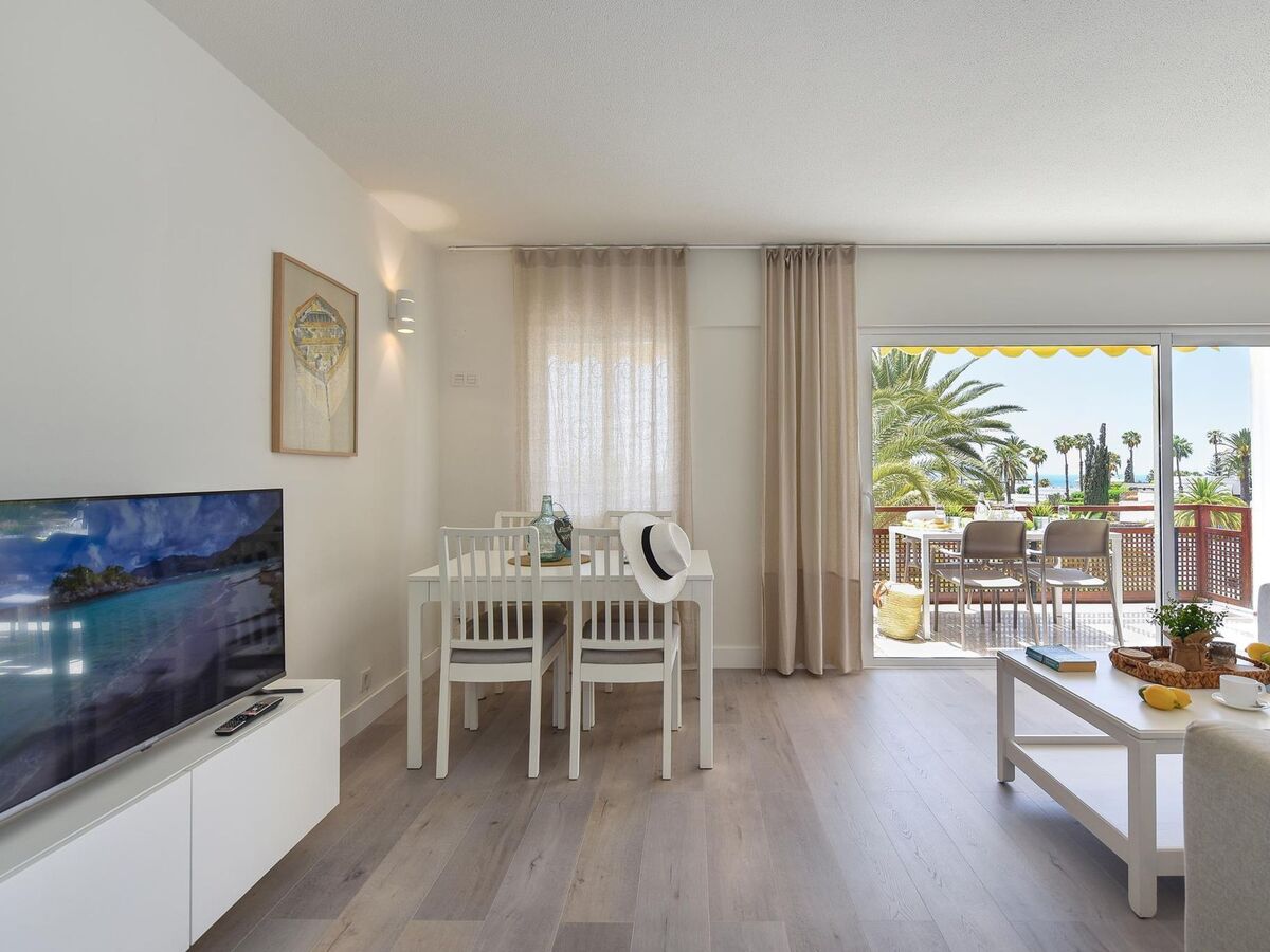 Aménagement confortable et moderne: séjour/salle à manger avec table pour les repas et Télévision numérique.