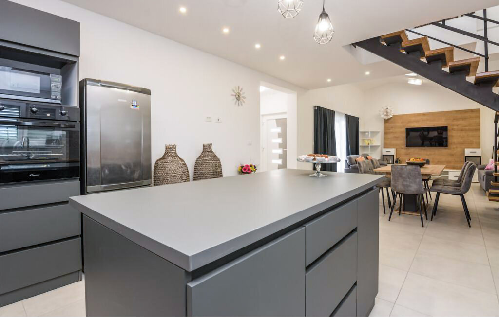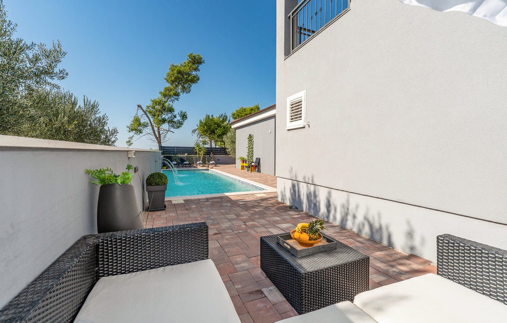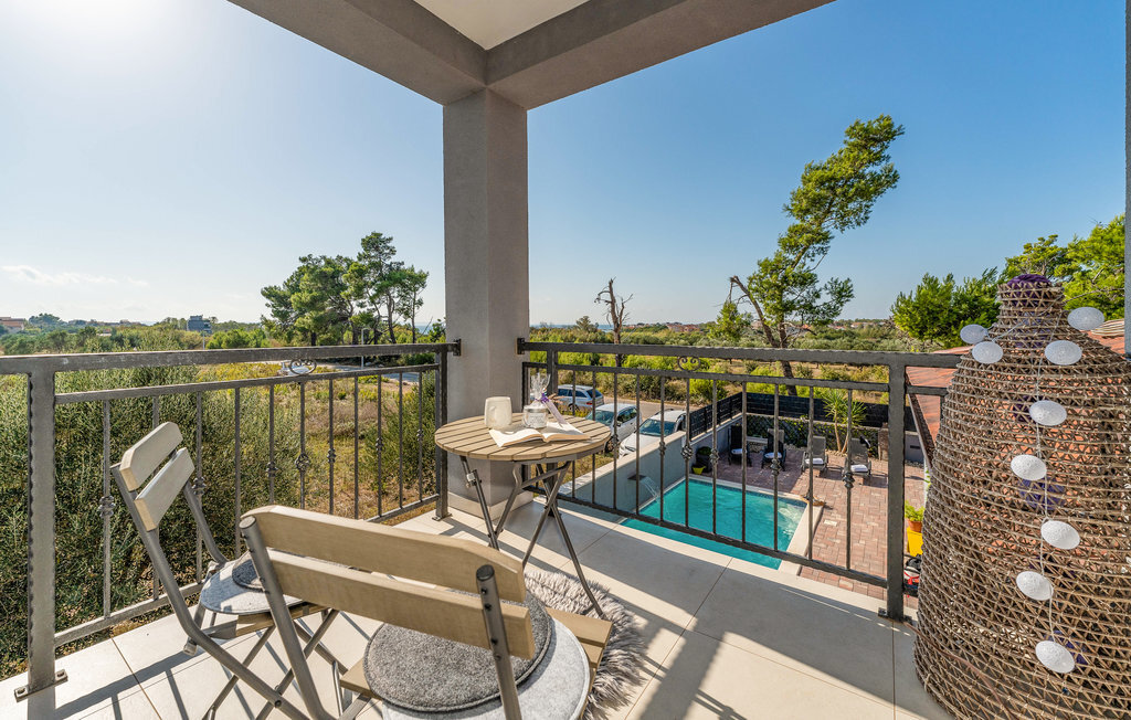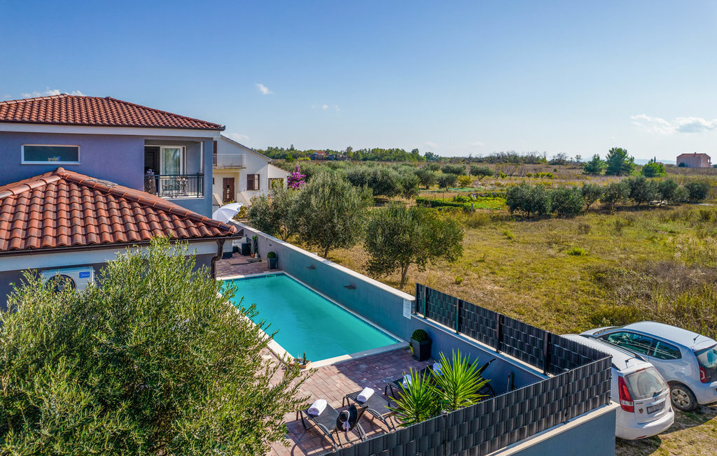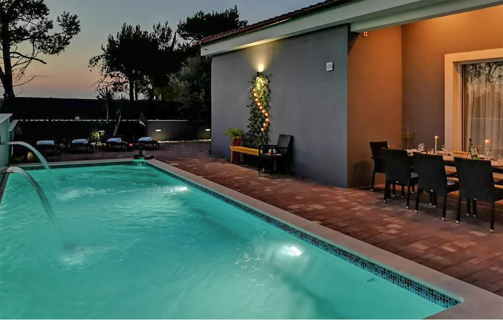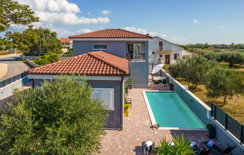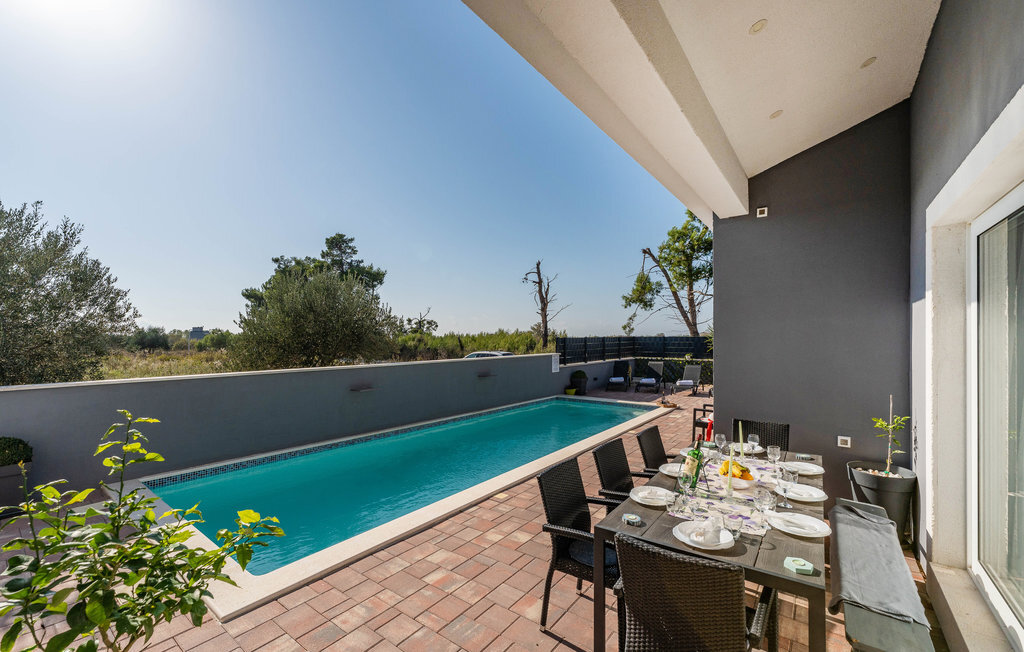 Entre les villes côtières de Nin et Pivlaka, cette grande et agréable maison de vacances avec piscine vous accueille. Arrivez ici et profitez du confort et de l'aménagement harmonisé qui créent une belle atmosphère de bien-être. Avec la grande fenêtre de la terrasse, le séjour communique avec la terrasse et le jardin. De plus, au premier étage, vous pouvez trouver un petit coin tranquille sur le balcon, d'où vous pouvez découvrir la mer. Baignez-vous, bronzez, mangez et faites des barbecues en plein air et réjouissez-vous de passer des heures inoubliables dans la maison et le jardin.