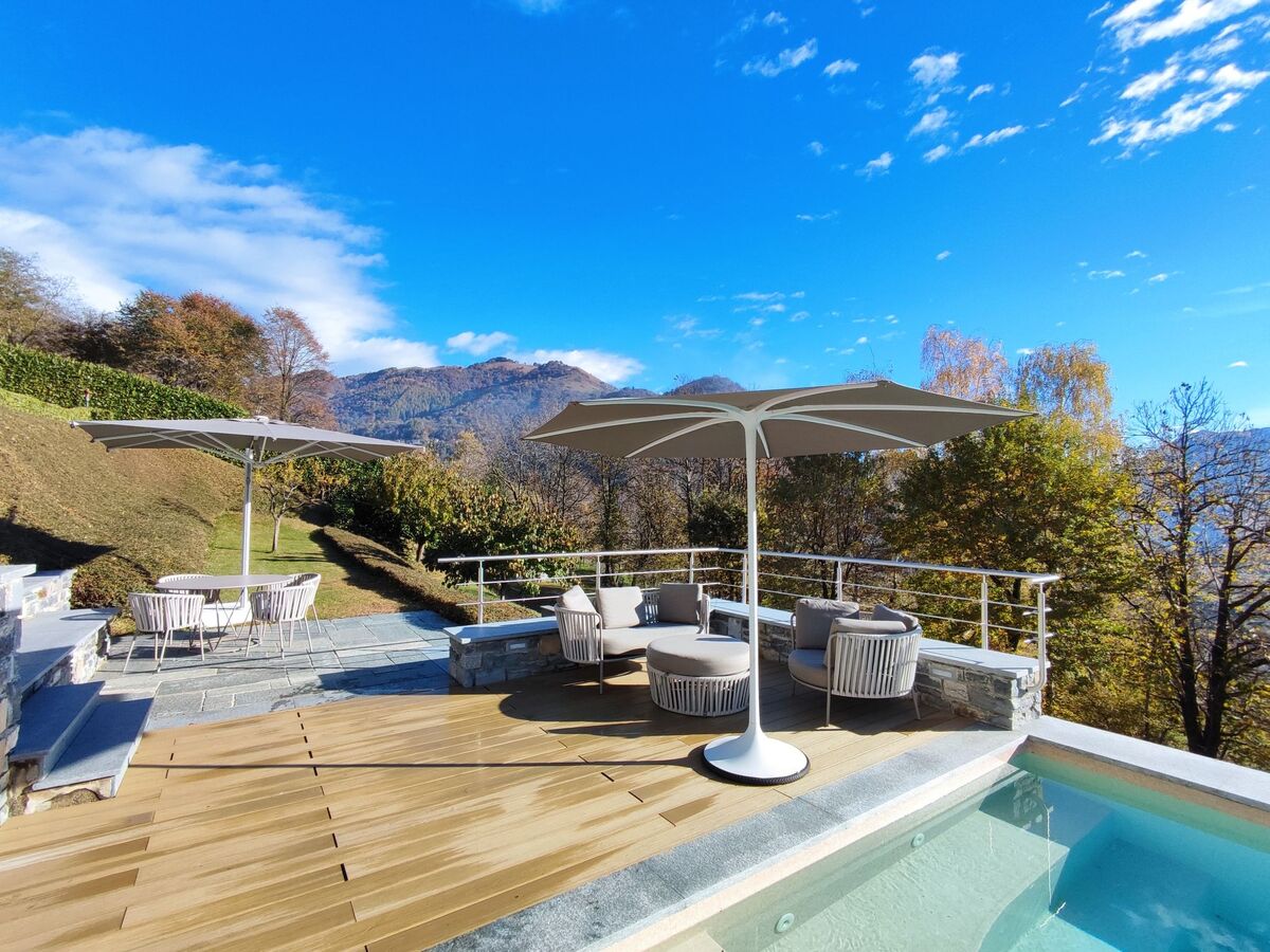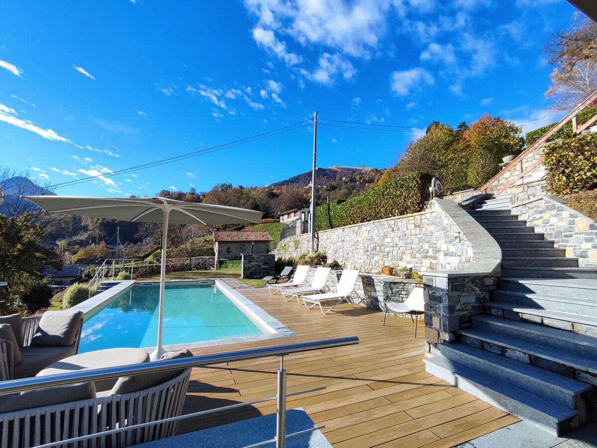 A usage privé: terrain 6'000 m2 (clôturé), jardin sur plusieurs niveaux avec pelouse et plantes, piscine rectangulaire (profondeur 140 cm, disponibilité saisonnière: 01.Mai.