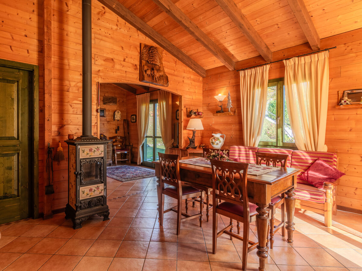 À l'étage supérieur: (escalier extérieur) séjour/chambre à coucher avec 1 divan-lit double et poêle suédois (uniquement à titre de décoration), table pour les repas et TV (écran plat).