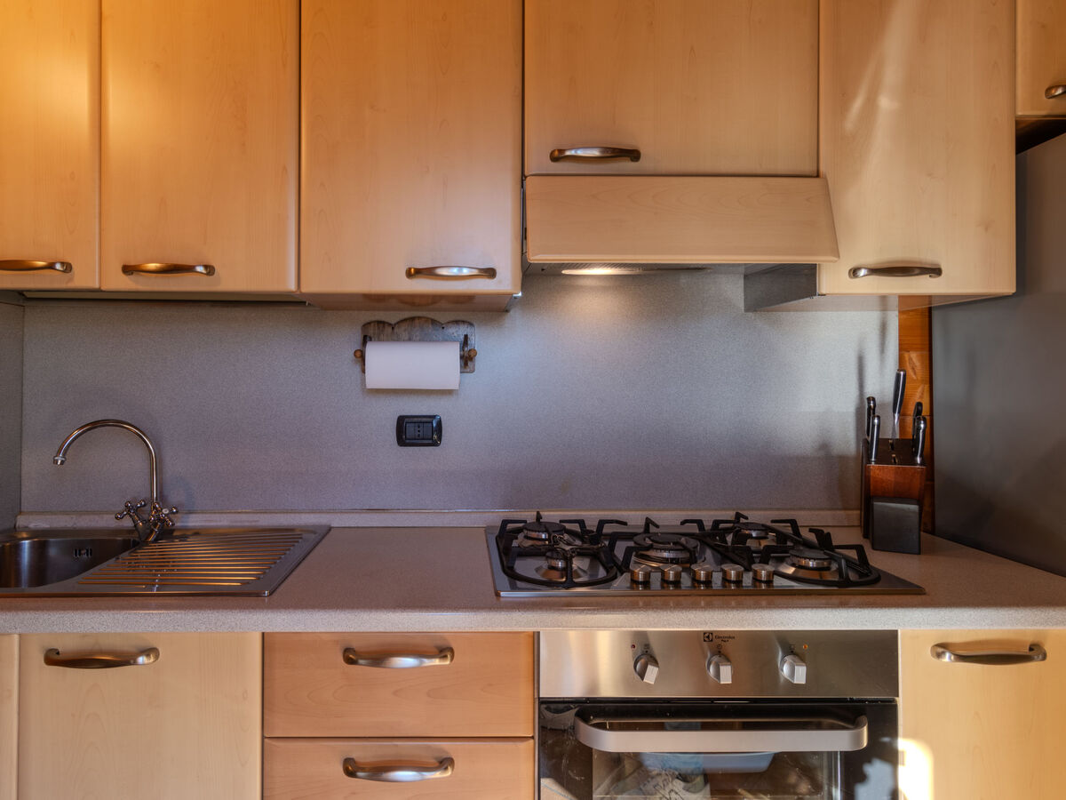 Cuisine (four, lave-vaisselle, Poêle à gaz, 4 feux, grille-pain, bouilloire électrique, micro-ondes, congélateur, cafetière électrique).
