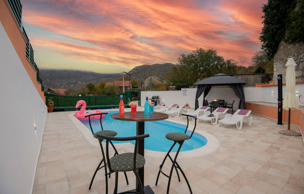 Bien-être à l'extérieur : Location de vacances disposant de chaises-longues et d'un ou plusieurs équipements tels que piscine extérieure, jacuzzi extérieur, lit à baldaquin de jardin etc...