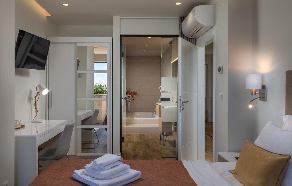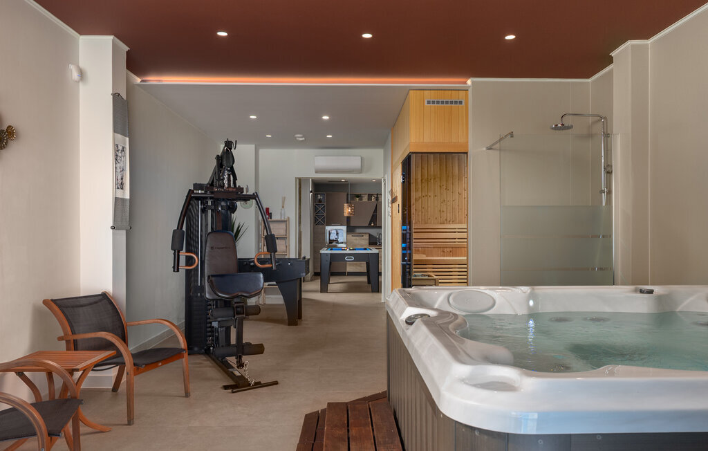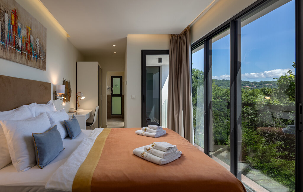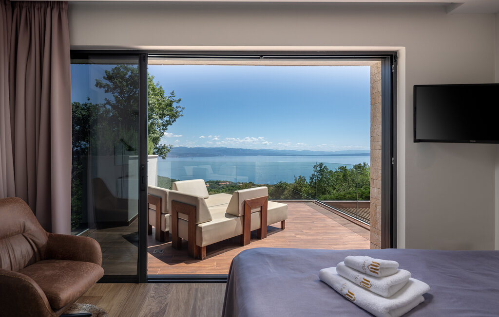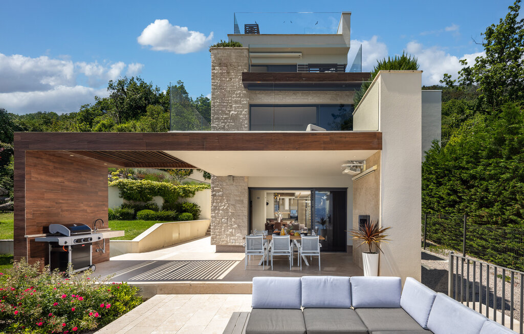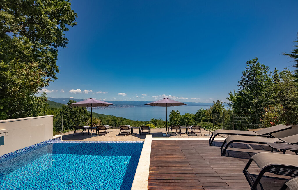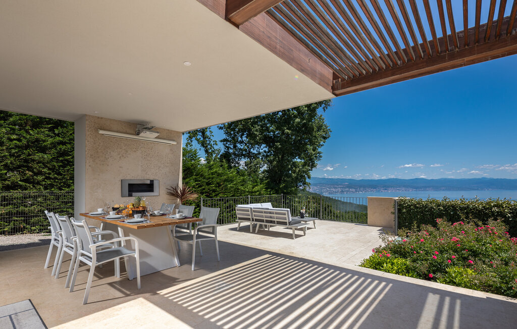 Parfaitement située en bordure de la Riviera d'Opatija, avec une vue imprenable sur la mer, la villa AltaVista est l'incarnation de la vie moderne de luxe. Aucune dépense n'a été épargnée pour créer cette villa exceptionnelle. Si vous voulez vous réveiller chaque matin avec une vue sur la côte, vous n'avez plus besoin de chercher plus loin. Vous avez trouvé la villa parfaite ! La villa a été décorée avec des matériaux et des meubles de haute qualité afin de pouvoir offrir une expérience inoubliable à ses hôtes. La villa dispose d'un salon moderne, d'une cuisine entièrement équipée, d'une salle à manger, de 4 chambres avec salle de bains privative, d'un jacuzzi et d'un espace de divertissement. Toute la villa dispose d'un système de chauffage et de refroidissement automatique, d'une connexion Internet sans fil et d'un système audio dans le salon et les chambres. La salle de spa est l'endroit idéal pour se détendre dans le sauna finlandais ou profiter des soirées dans le jacuzzi. La villa offre une multitude de divertissements avec une table de billard, un air hockey et des équipements pour le tir à l'arc. De la piscine à débordement avec rideau d'eau massant, qui peut être chauffée sur demande, s'étend une belle vue sur la baie et les îles environnantes.