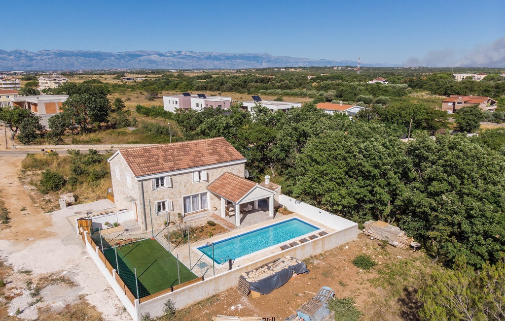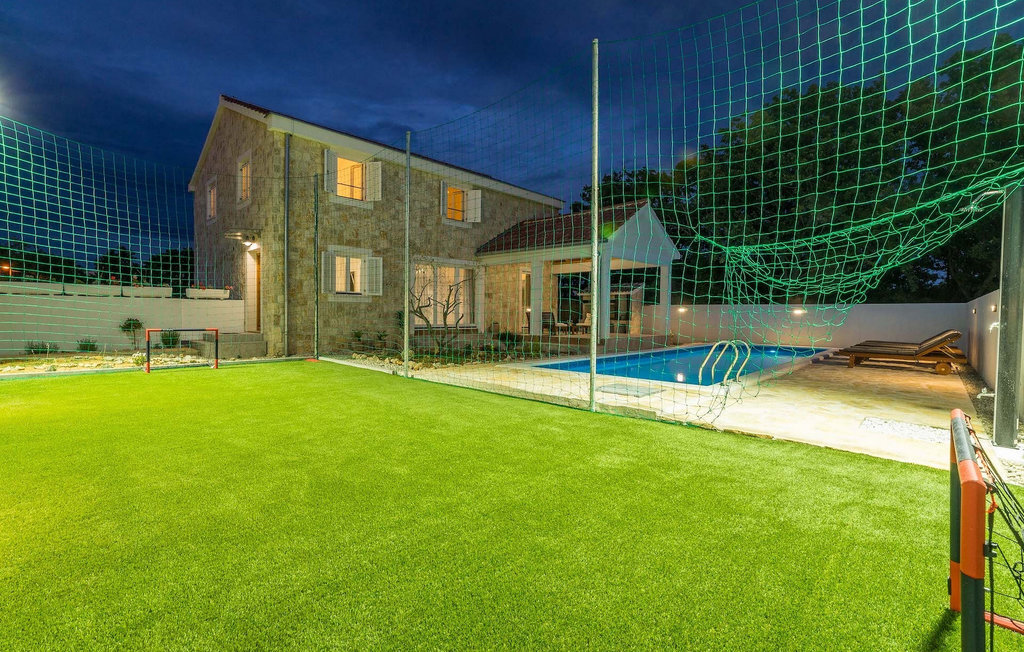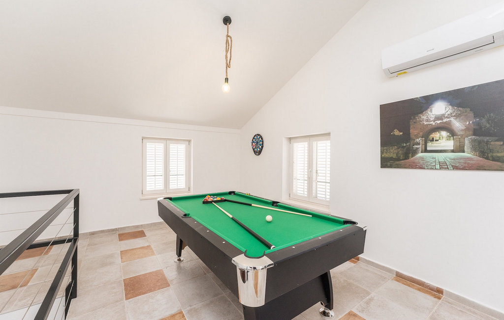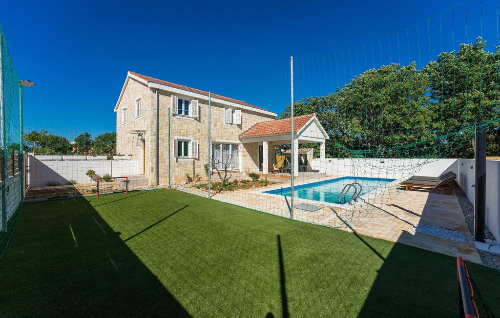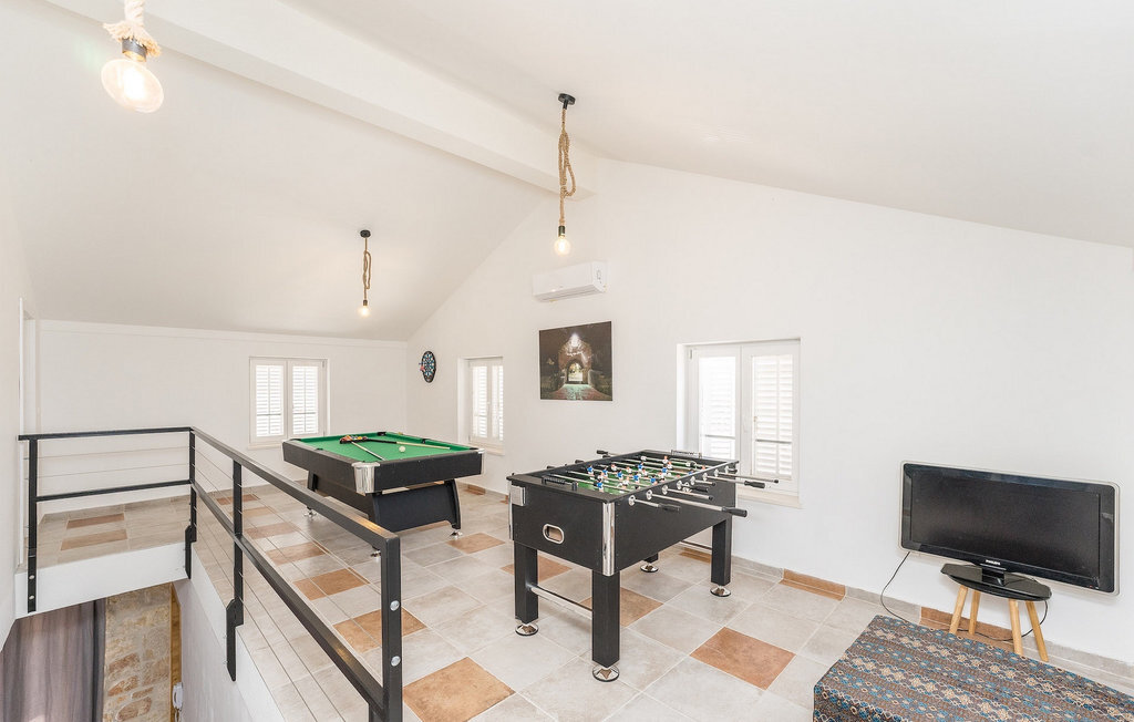 Quelle est la première chose qui vous vient à l'esprit lorsque vous entendez "vacances" ? Est-ce la plage, ou la détente, ou peut-être des vacances actives ? Eh bien, la Villa Aenona a tout ce dont vous rêviez. La charmante villa Aenona est située en Dalmatie, près de la ville de Zadar. Cette villa de deux étages est idéale pour les familles ou les groupes d'amis qui souhaitent passer des vacances à la fois reposantes et actives. Le rez-de-chaussée de la villa se compose d'une cuisine entièrement équipée, d'un salon confortable avec un coin repas, d'une buanderie et d'une chambre confortable avec un lit double et une salle de bain. À l'étage, il y a une salle de jeux avec une table de billard, un baby-foot, des fléchettes et une PlayStation 4, deux autres chambres et deux salles de bains. Deux salles de bain sont équipées d'une douche à l'italienne, tandis qu'une salle de bain dispose d'une baignoire. À l'extérieur, vous trouverez un coin salon couvert où vous pourrez vous détendre pendant que votre moitié prépare un délicieux repas pour vous et votre famille sur le barbecue au charbon de bois. À deux pas de là se trouve la grande piscine privée, qui invite à une baignade rafraîchissante les chaudes journées d'été. Le point fort de la villa est le terrain de football éclairé, sur lequel vous pouvez vous amuser avec vos enfants en jouant au football, au badminton ou au volley-ball. Comme la villa n'est qu'à quelques minutes à pied de la plage de sable, elle est également idéale pour les familles avec de jeunes enfants. Si tout ce que vous avez lu jusqu'ici sur cette villa vous plaît, il est temps de la réserver et de vivre vos prochaines vacances à la Villa Aenona.La Villa Aenona se trouve à Zaton, non loin de la ville de Nin, à quelques minutes à pied de belles plages de sable, idéales pour les familles avec de jeunes enfants. Nin est connue pour ses belles plages, mais aussi pour sa longue tradition de production de sel. Visitez la saline de Nin et son musée, où vous pourrez apprendre comment le sel est extrait de manière naturelle, comment le stocker et, bien sûr, goûter aux nombreux délices fabriqués avec du sel, comme l'huile d'olive, les biscuits et le chocolat. Outre sa beauté naturelle, Nin est l'une des plus anciennes villes de la côte orientale de l'Adriatique, avec une histoire vieille de 3 000 ans. La vieille ville historique de Nin se trouve sur une petite île reliée à la terre ferme par deux ponts en pierre. Promenez-vous dans les ruelles étroites de la ville et découvrez les secrets qui y sont cachés. La Villa Aenona est également un point de départ idéal pour de nombreuses excursions. Ne manquez pas de visiter la ville de Zadar, qui vous émerveillera avec sa promenade côtière, son orgue de mer unique et l'un des plus beaux couchers de soleil du monde. Ne manquez pas non plus de visiter l'île de Pag, connue pour son relief insolite, sa délicieuse cuisine et ses nombreuses plages. Il est intéressant de noter que cette petite région compte 3 parcs nationaux, à savoir le parc national de Paklenica, le parc national de Kornati et le parc national de Krka. Tous ces parcs ont un point commun, à savoir une nature intacte qui ne laissera personne indifférent.