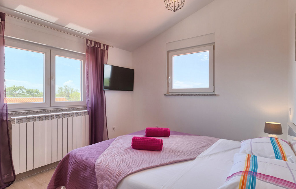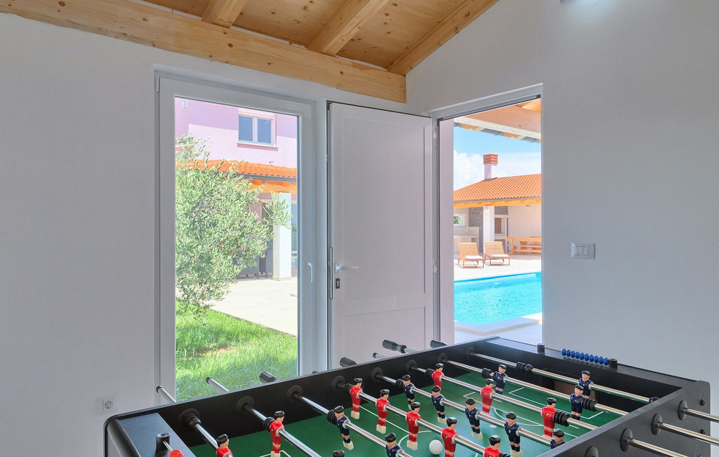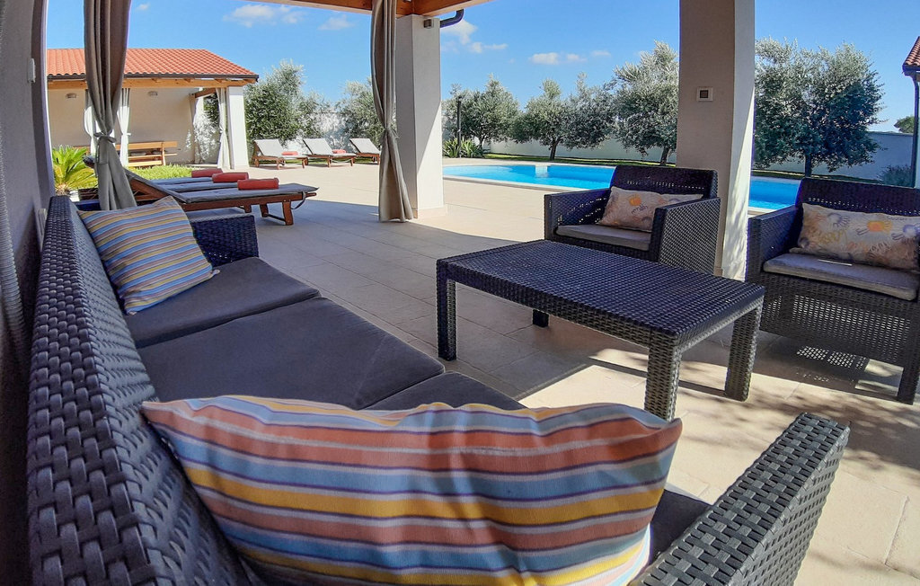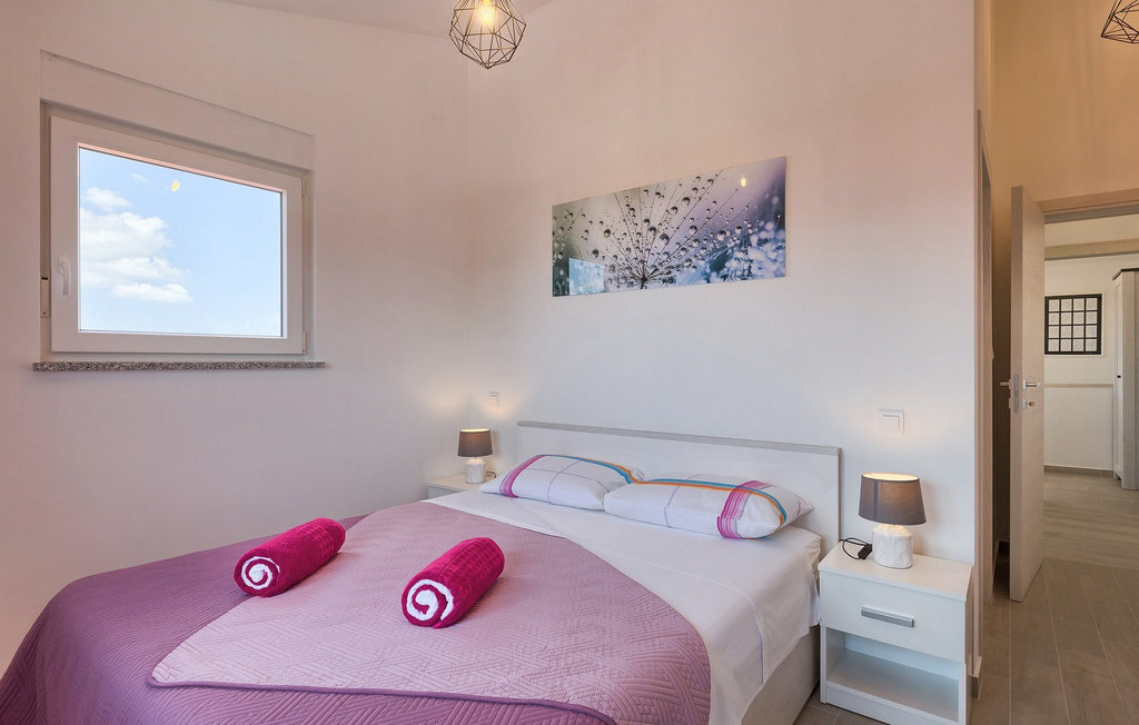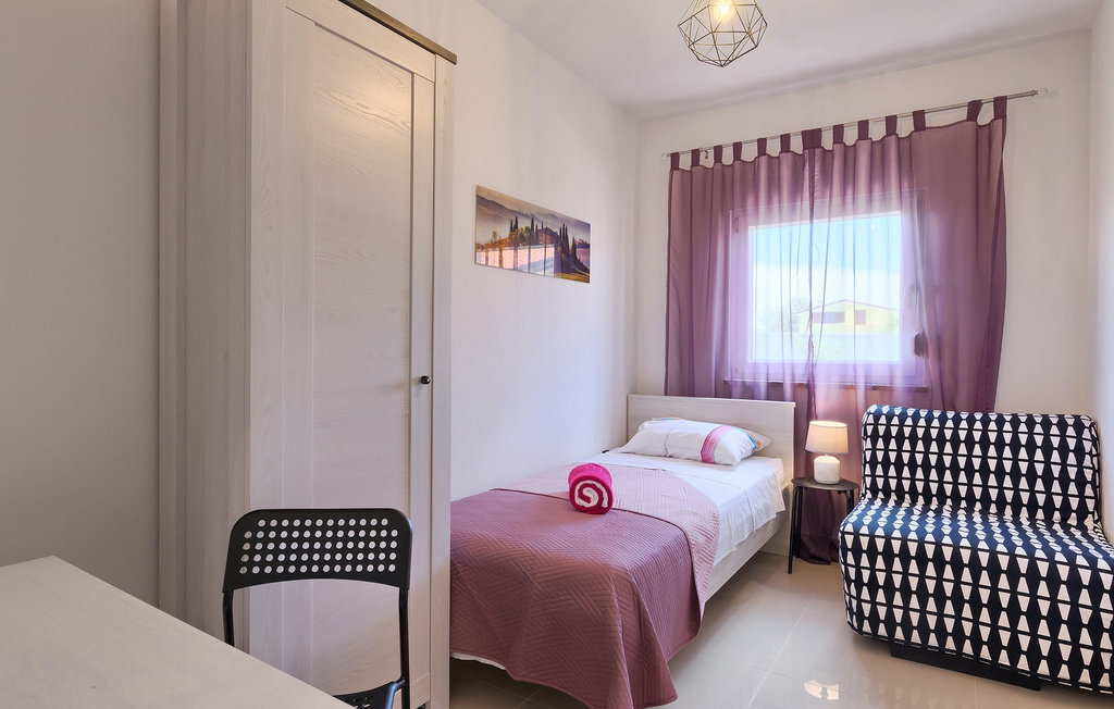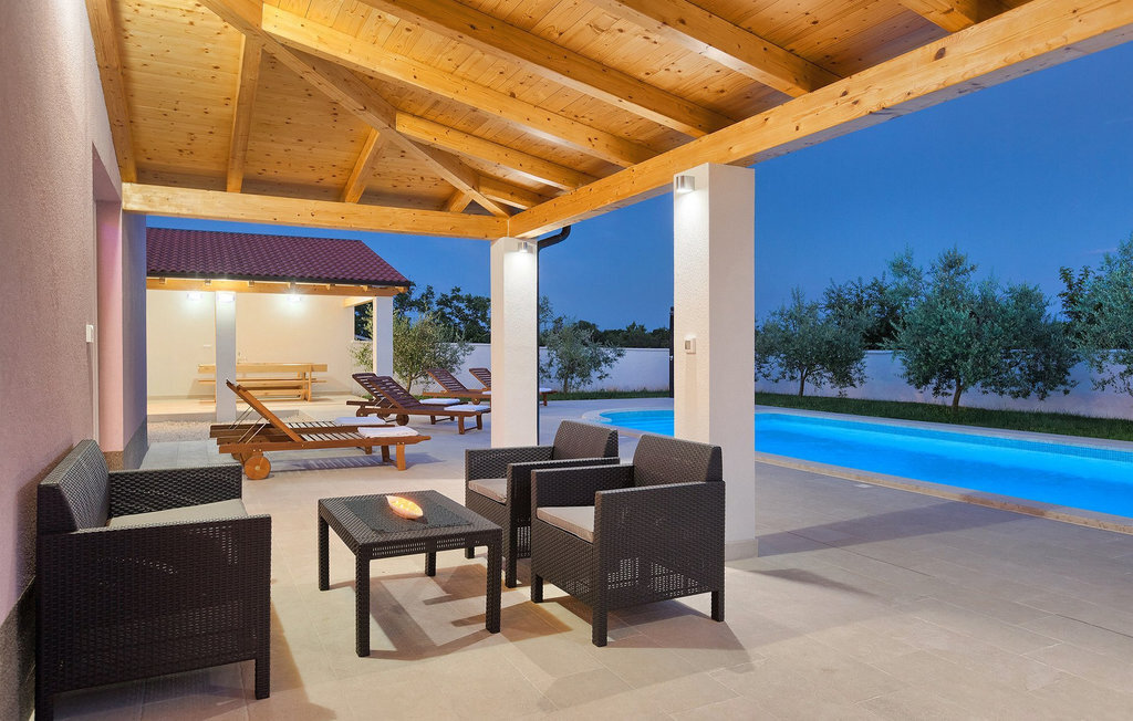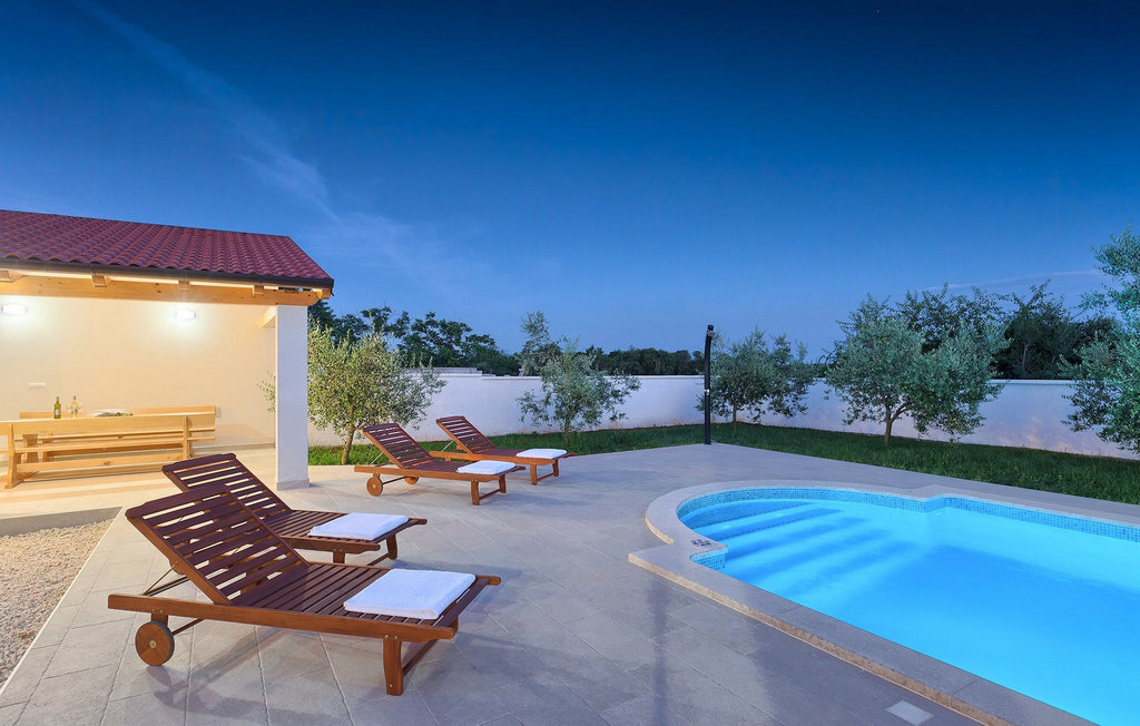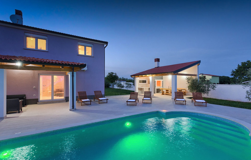 La magnifique Villa Zeus est le logement familial idéal à Pula. Elle dispose d'un magnifique jardin planté d'oliviers et est idéalement située - proche de la ville et de toutes ses commodités et proche de la mer et des magnifiques plages. La villa se compose de quatre chambres à coucher confortables. Trois d'entre elles sont équipées d'un lit double et une autre d'un lit simple et d'un canapé-lit extensible pour une personne. Au rez-de-chaussée, tu trouveras le salon et la salle à manger, une cuisine entièrement équipée, une chambre à coucher et une salle de bain. Au premier étage se trouvent les trois autres chambres, chacune avec sa propre salle de bain. D'autres possibilités de couchage pour deux personnes se trouvent sur le grand canapé-lit dans le salon et sur le fauteuil extensible dans l'une des chambres. La villa dispose d'une belle piscine privée éclairée, d'une terrasse couverte avec coin repas et d'une cuisine extérieure. La villa est climatisée, dispose du wifi, de 5 places de parking privées et se trouve dans un endroit vraiment avantageux.L'emplacement de cette villa est très pratique - à quelques kilomètres seulement de la plage la plus proche et à proximité de chaque partie de la ville de Pula et de toutes les commodités que Pula peut offrir. En même temps, la villa est située dans un quartier assez calme. Pula est le plus grand port et le carrefour touristique de l'Istrie. Riche d'un point de vue culturel et traditionnel mais aussi en raison de la beauté de son paysage naturel, Pula offre toutes sortes d'activités de loisirs telles que des activités sportives, une boîte de nuit, un casino, des pubs et des restaurants ainsi que des visites organisées. Le symbole de cette ville est définitivement l'arène de la ville, vieille de vingt siècles, où se déroulaient à l'époque romaine de spectaculaires combats de gladiateurs. Aujourd'hui, il s'agit du sixième plus grand amphithéâtre du monde. Pula offre de grandes possibilités aux vacanciers. Il faut aussi absolument visiter les environs de la ville - le paysage vert et luxuriant du sud de l'Istrie, les belles plages environnantes, le parc naturel de Kamenjak ou le parc national de Brioni.