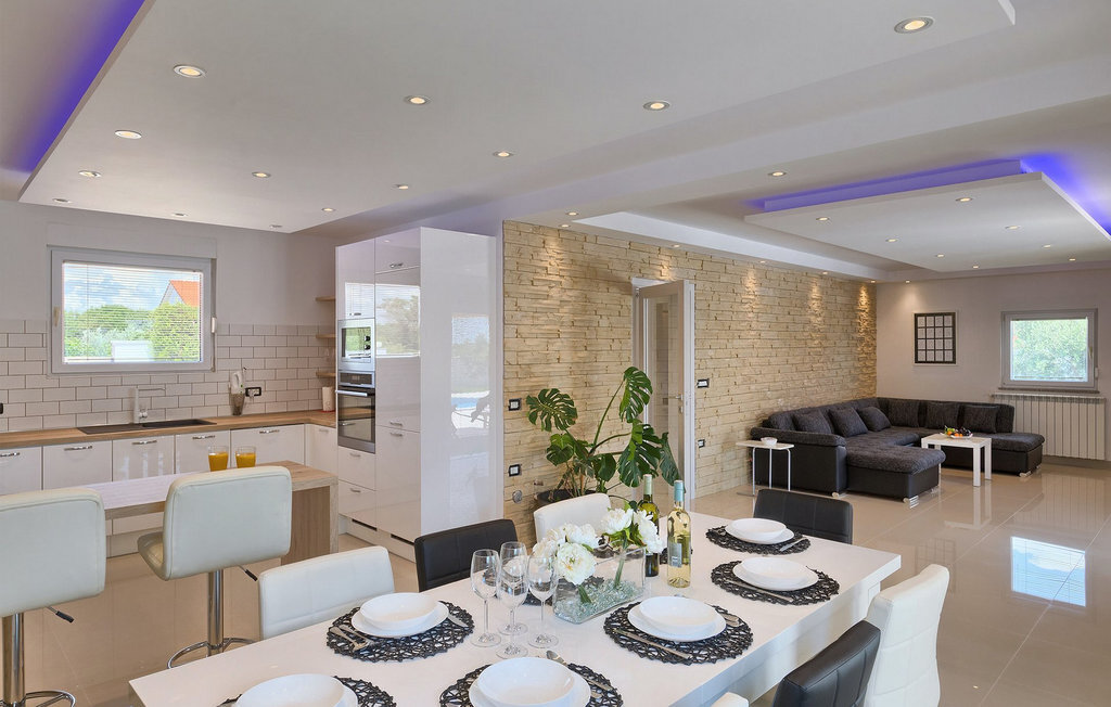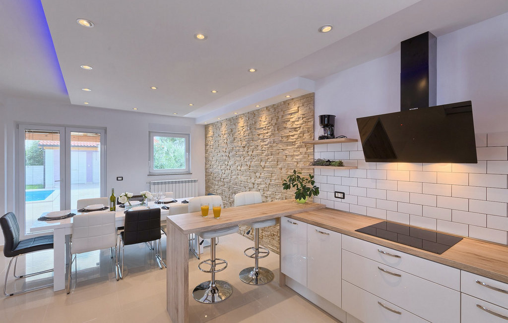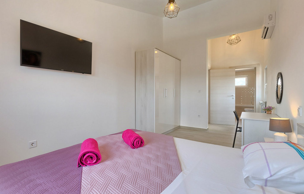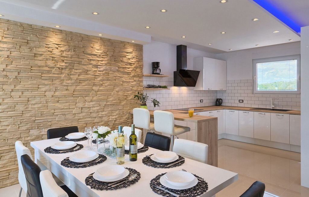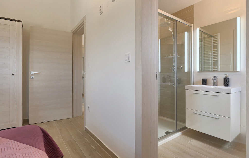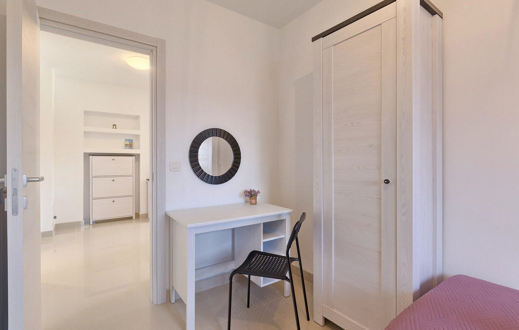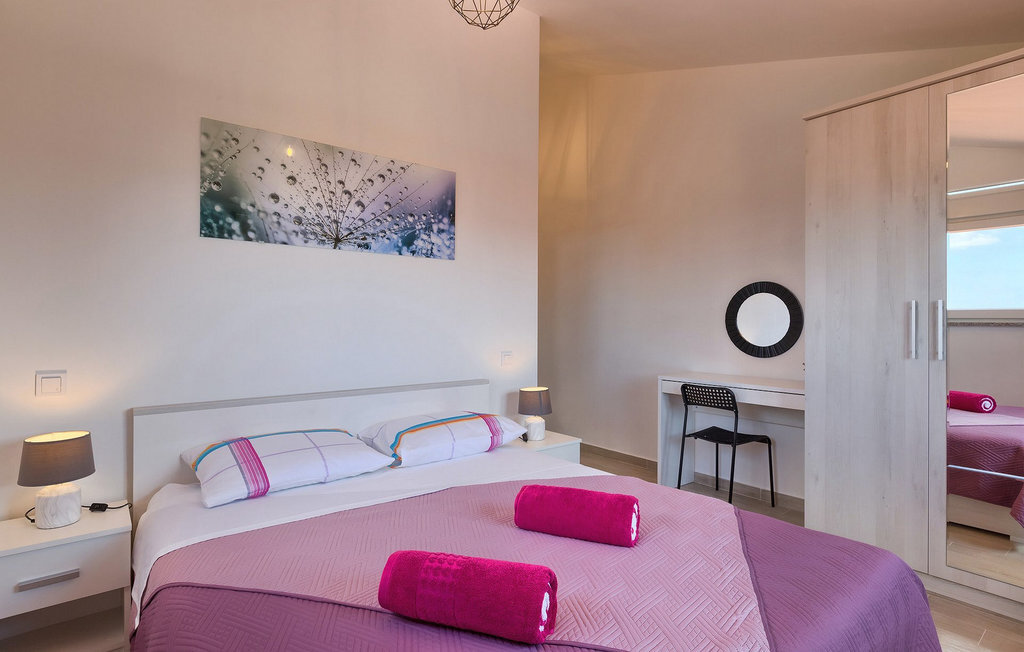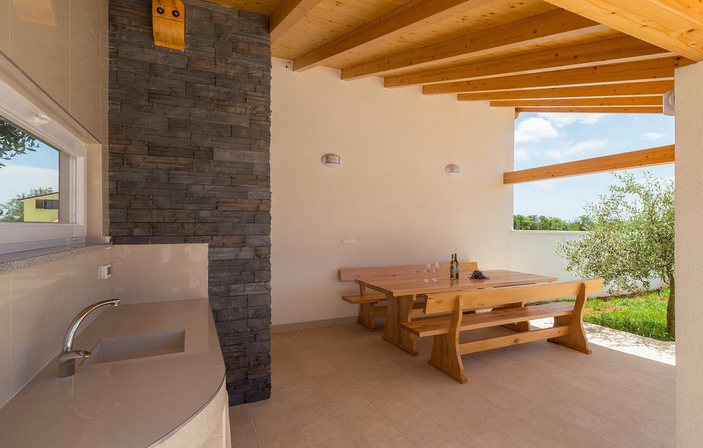 La magnifique Villa Zeus est le logement familial idéal à Pula. Elle dispose d'un magnifique jardin planté d'oliviers et est idéalement située - proche de la ville et de toutes ses commodités et proche de la mer et des magnifiques plages. La villa se compose de quatre chambres à coucher confortables. Trois d'entre elles sont équipées d'un lit double et une autre d'un lit simple et d'un canapé-lit extensible pour une personne. Au rez-de-chaussée, tu trouveras le salon et la salle à manger, une cuisine entièrement équipée, une chambre à coucher et une salle de bain. Au premier étage se trouvent les trois autres chambres, chacune avec sa propre salle de bain. D'autres possibilités de couchage pour deux personnes se trouvent sur le grand canapé-lit dans le salon et sur le fauteuil extensible dans l'une des chambres. La villa dispose d'une belle piscine privée éclairée, d'une terrasse couverte avec coin repas et d'une cuisine extérieure. La villa est climatisée, dispose du wifi, de 5 places de parking privées et se trouve dans un endroit vraiment avantageux.L'emplacement de cette villa est très pratique - à quelques kilomètres seulement de la plage la plus proche et à proximité de chaque partie de la ville de Pula et de toutes les commodités que Pula peut offrir. En même temps, la villa est située dans un quartier assez calme. Pula est le plus grand port et le carrefour touristique de l'Istrie. Riche d'un point de vue culturel et traditionnel mais aussi en raison de la beauté de son paysage naturel, Pula offre toutes sortes d'activités de loisirs telles que des activités sportives, une boîte de nuit, un casino, des pubs et des restaurants ainsi que des visites organisées. Le symbole de cette ville est définitivement l'arène de la ville, vieille de vingt siècles, où se déroulaient à l'époque romaine de spectaculaires combats de gladiateurs. Aujourd'hui, il s'agit du sixième plus grand amphithéâtre du monde. Pula offre de grandes possibilités aux vacanciers. Il faut aussi absolument visiter les environs de la ville - le paysage vert et luxuriant du sud de l'Istrie, les belles plages environnantes, le parc naturel de Kamenjak ou le parc national de Brioni.