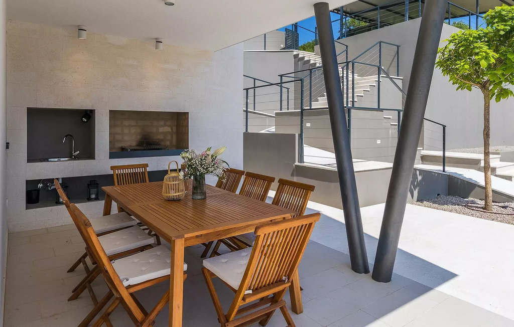 Lorsque vous vous rendez sur la terrasse de la villa, la première chose qui vous frappe est la vue et la grande piscine privée. Rafraîchissez-vous dans la piscine ou détendez-vous simplement sur les chaises longues et profitez de la nature de cette région magique. Dans le jardin, il y a une terrasse extérieure avec une table et des chaises et un barbecue pour que vous puissiez passer des soirées inoubliables avec vos proches en préparant de délicieux repas. Faites vos valises et partez pour la Villa Selene Sea and Sun, profitez des beautés de cette magnifique villa ...La villa moderne et minimaliste Selene Sea and Sun se trouve dans la commune de Gornji Rabac, au-dessus de la célèbre ville istrienne de Rabac. Rabac est située sur la côte est de la péninsule d'Istrie, à la frontière entre l'Istrie et le Kvarner. La ville de Rabac est également connue sous le nom de "Perle de Kvarner" en raison de la beauté de ses plages de galets, de la pureté de la mer Adriatique et de son agréable climat méditerranéen. Rabac n'est qu'à 5 kilomètres de la ville de Labin et à environ 40 kilomètres de la célèbre ville de Pula. Profitez de la cuisine gastronomique et ne manquez pas de goûter aux fameux plats istriens à base de truffes noires et blanches, aux pâtes Fuzi d'Istrie et à la fameuse huile d'olive d'Istrie. Si vous êtes intéressé par les excursions et les activités sportives, allez à Rabac, où vous trouverez des offres pour des excursions en bateau et des activités sportives.