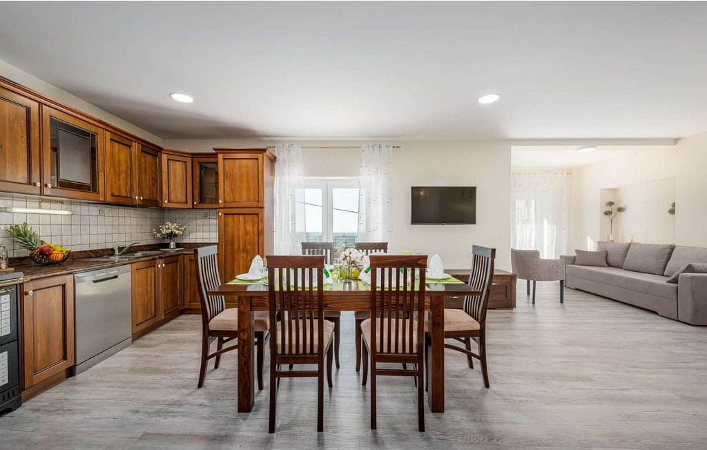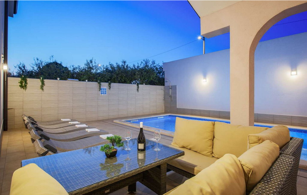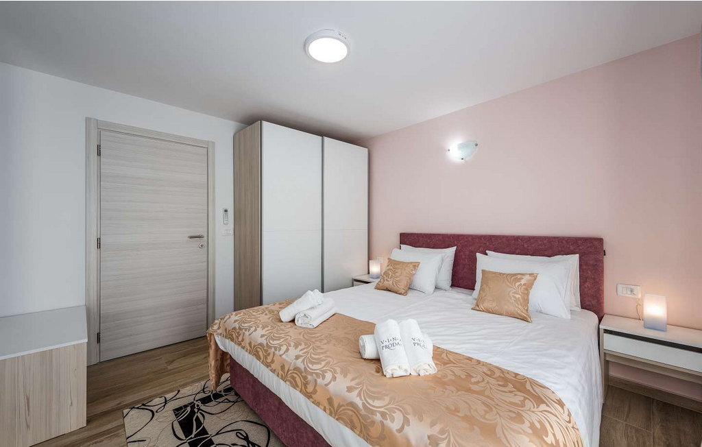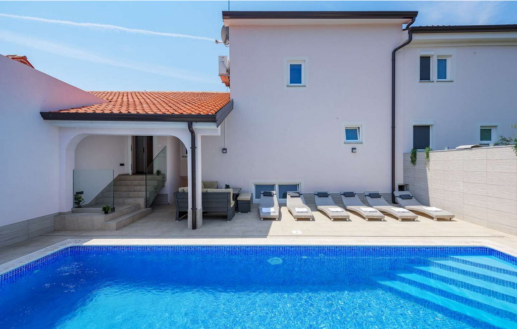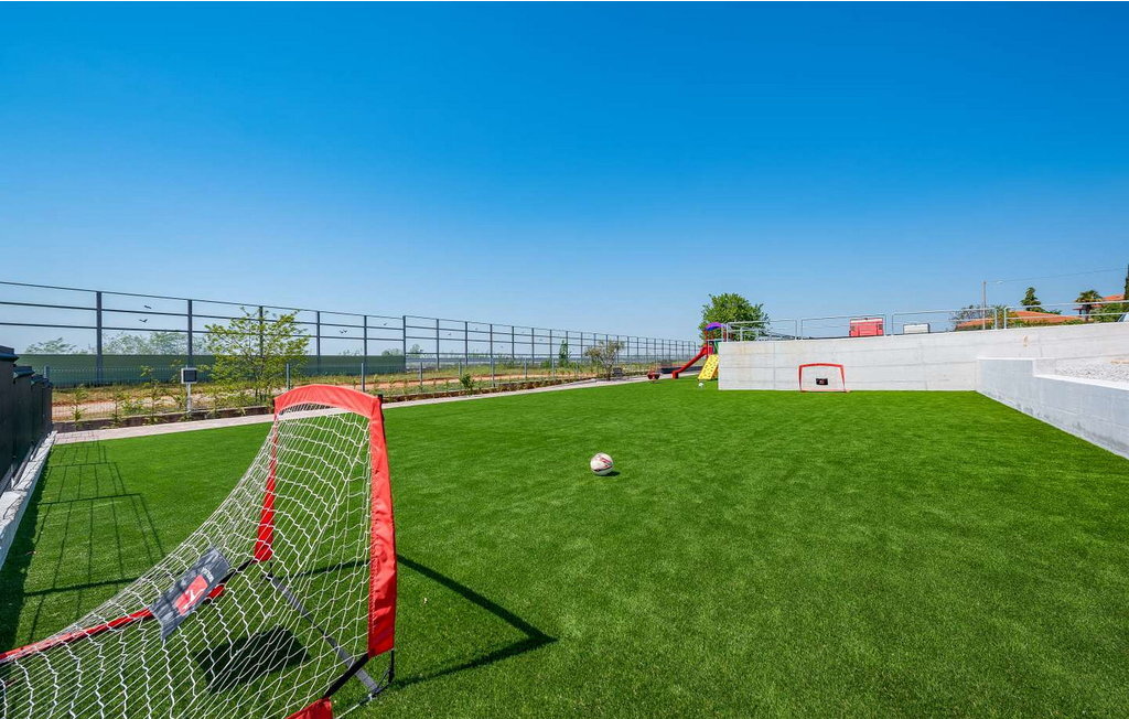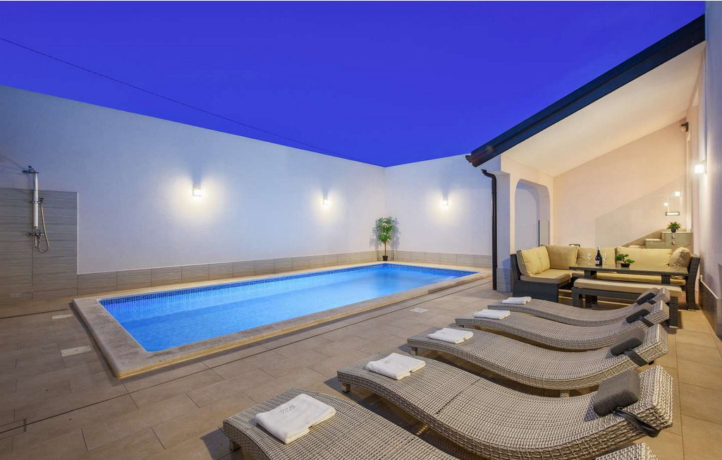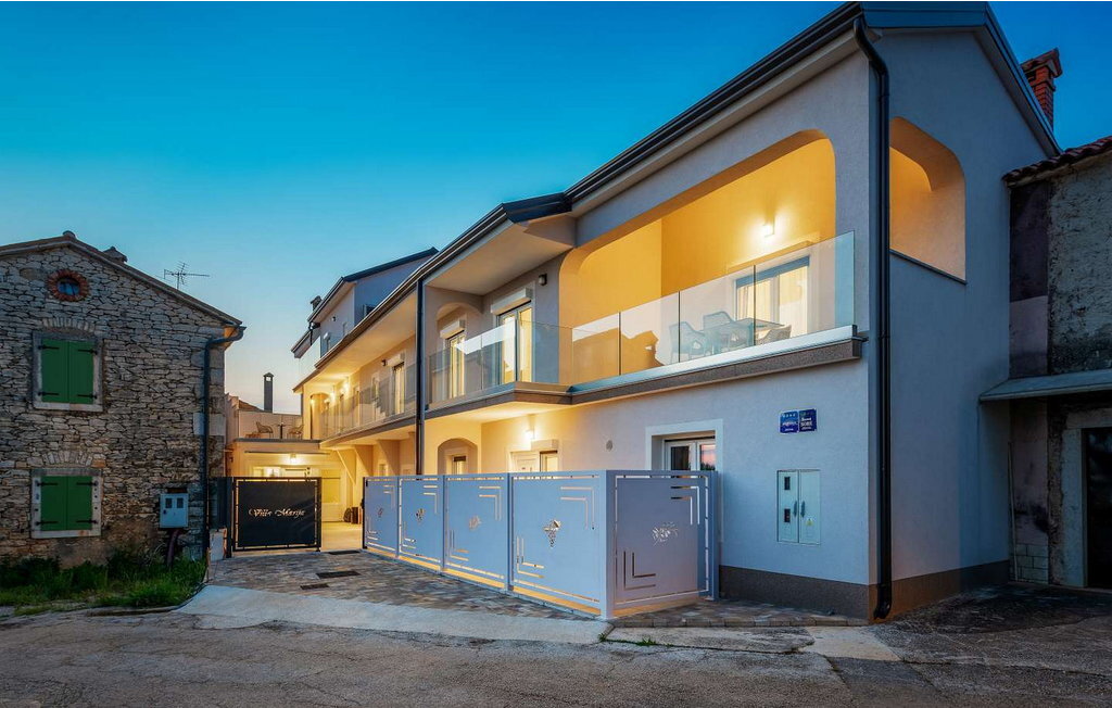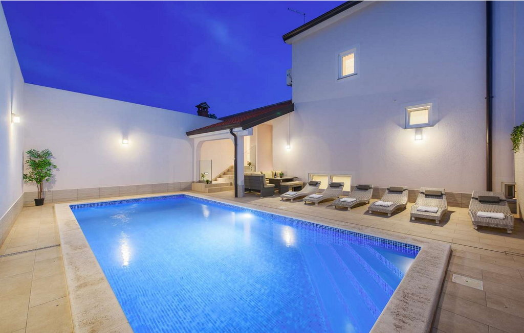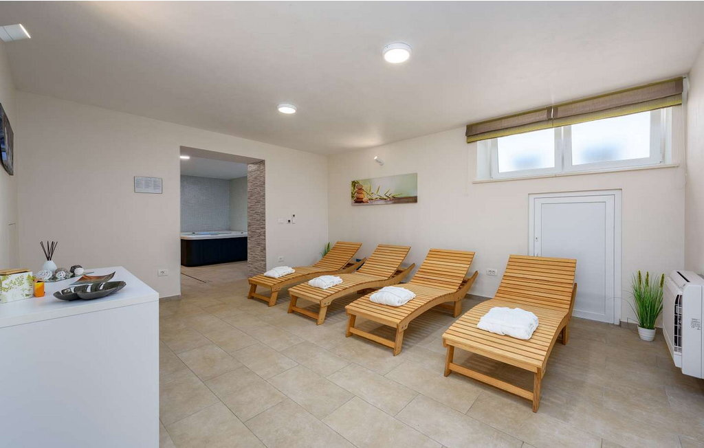 Bienvenue à la Villa Marija Prodan, une résidence de vacances exquise pouvant accueillir jusqu'à 16 personnes et offrant à la fois des installations de bien-être luxueuses et une vue imprenable sur la mer. Cette villa est parfaite pour les grands groupes qui recherchent des vacances tranquilles avec tout le confort de la maison et plus encore. Faites-vous plaisir dans le centre de bien-être richement équipé de la villa, avec jacuzzi, sauna, bain de vapeur, salle de repos et douche. Que vous vous détendiez dans la salle de repos ou que vous profitiez de la piscine chauffée à l'extérieur, ici, chaque moment est conçu pour la détente. La grande terrasse avec des sièges et des chaises longues est idéale pour les repas en plein air et pour profiter du soleil d'Istrie. La villa offre beaucoup d'espace pour les moments de partage, avec une salle à manger spacieuse et un espace commun avec une table et des chaises pour tous les invités, ainsi qu'une cuisine entièrement équipée. À quelques pas de la villa, vous trouverez une aire de jeux privée pour les enfants avec une balançoire, un toboggan et un petit terrain de football en gazon synthétique, ce qui en fait un lieu de retraite idéal pour les familles. La villa Marija Prodan est bien conçue et offre à la fois des espaces communs et des retraites privées. Elle dispose de deux appartements et de quatre chambres doubles, offrant ainsi confort et intimité à chaque hôte. La combinaison d'équipements modernes, de vues à couper le souffle et d'un environnement calme fait de cette villa le point de départ idéal pour des vacances inoubliables en Istrie. Veuillez noter que ce logement n'accepte pas les groupes de jeunes ou les enterrements de vie de garçon. Un groupe de jeunes dans ce logement se compose de personnes âgées de 26 ans ou moins. Ne réservez pas ce logement si vous êtes un groupe de jeunes ou un enterrement de vie de garçon, car votre réservation sera refusée après la réservation, ce qui peut également être le cas à l'arrivée au logement ou pendant votre séjour, et vous ne serez pas remboursé.