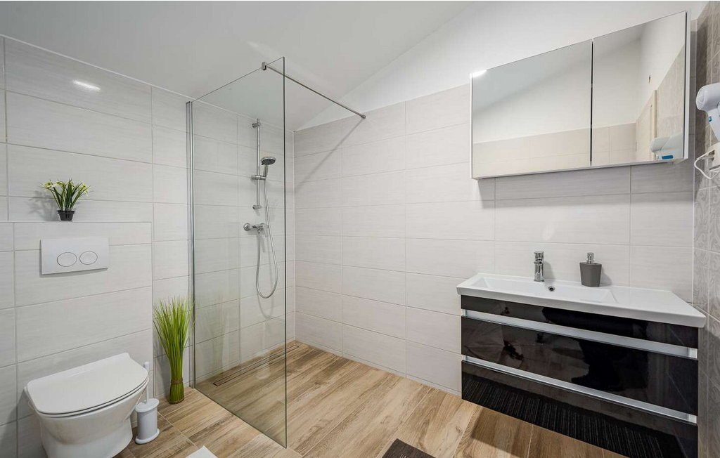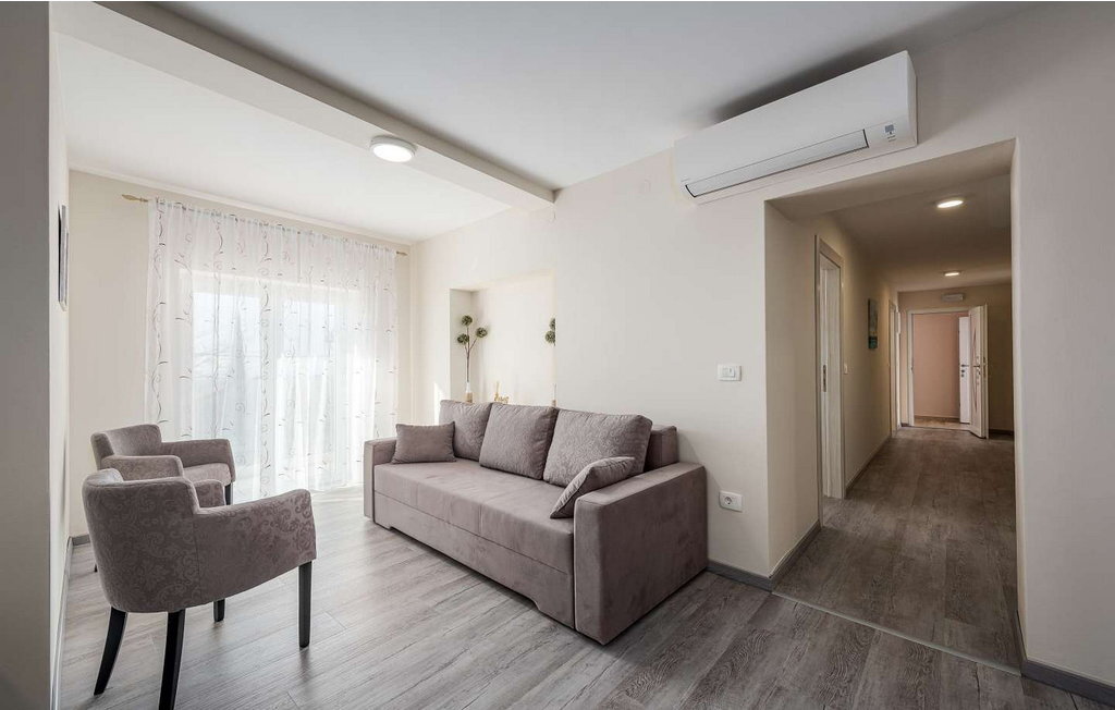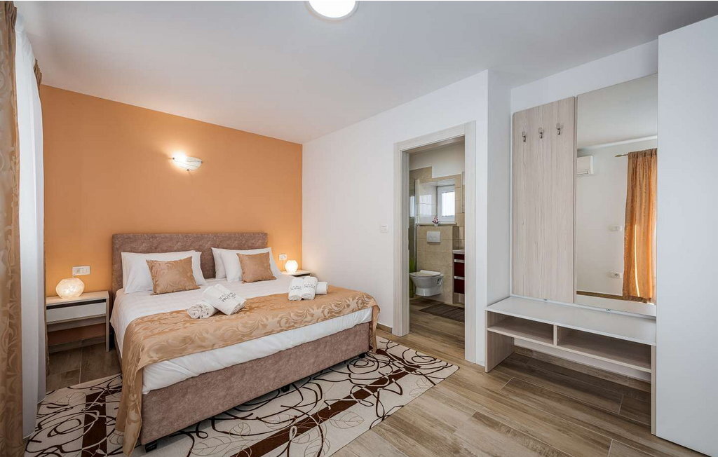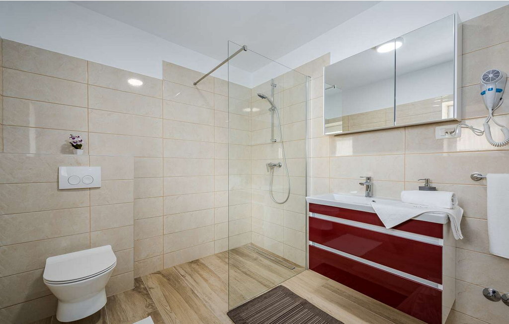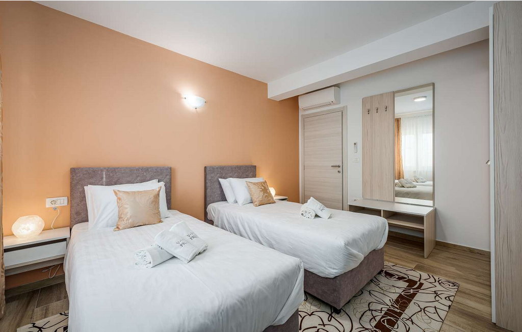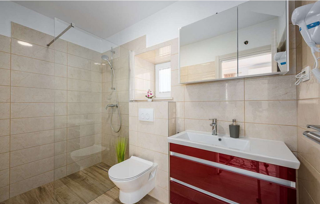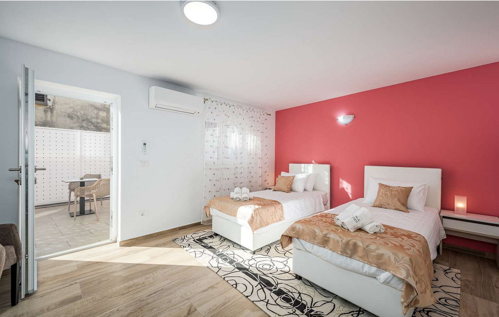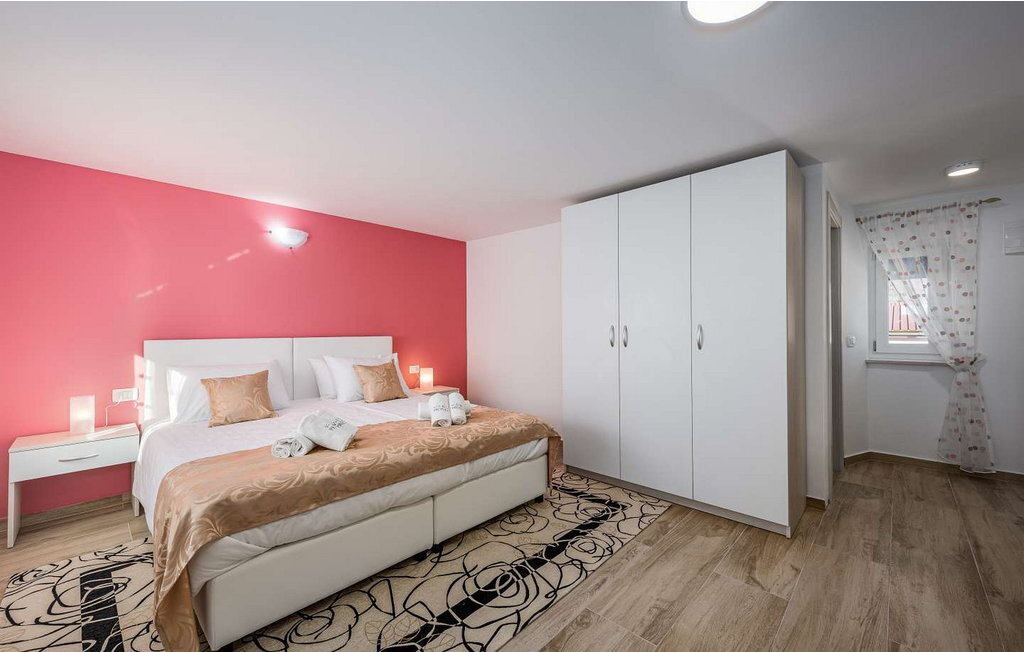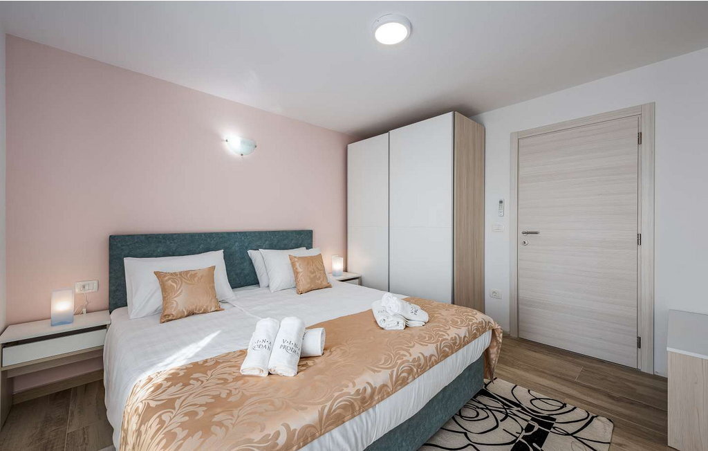 Bienvenue à la Villa Marija Prodan, une résidence de vacances exquise pouvant accueillir jusqu'à 16 personnes et offrant à la fois des installations de bien-être luxueuses et une vue imprenable sur la mer. Cette villa est parfaite pour les grands groupes qui recherchent des vacances tranquilles avec tout le confort de la maison et plus encore. Faites-vous plaisir dans le centre de bien-être richement équipé de la villa, avec jacuzzi, sauna, bain de vapeur, salle de repos et douche. Que vous vous détendiez dans la salle de repos ou que vous profitiez de la piscine chauffée à l'extérieur, ici, chaque moment est conçu pour la détente. La grande terrasse avec des sièges et des chaises longues est idéale pour les repas en plein air et pour profiter du soleil d'Istrie. La villa offre beaucoup d'espace pour les moments de partage, avec une salle à manger spacieuse et un espace commun avec une table et des chaises pour tous les invités, ainsi qu'une cuisine entièrement équipée. À quelques pas de la villa, vous trouverez une aire de jeux privée pour les enfants avec une balançoire, un toboggan et un petit terrain de football en gazon synthétique, ce qui en fait un lieu de retraite idéal pour les familles. La villa Marija Prodan est bien conçue et offre à la fois des espaces communs et des retraites privées. Elle dispose de deux appartements et de quatre chambres doubles, offrant ainsi confort et intimité à chaque hôte. La combinaison d'équipements modernes, de vues à couper le souffle et d'un environnement calme fait de cette villa le point de départ idéal pour des vacances inoubliables en Istrie. Veuillez noter que ce logement n'accepte pas les groupes de jeunes ou les enterrements de vie de garçon. Un groupe de jeunes dans ce logement se compose de personnes âgées de 26 ans ou moins. Ne réservez pas ce logement si vous êtes un groupe de jeunes ou un enterrement de vie de garçon, car votre réservation sera refusée après la réservation, ce qui peut également être le cas à l'arrivée au logement ou pendant votre séjour, et vous ne serez pas remboursé.