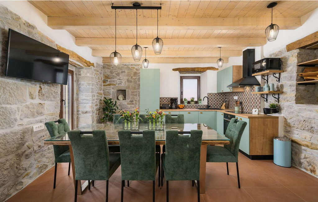 Casa Olika est une charmante maison de vacances qui offre un mélange parfait de détente et d'aventure avec ses deux piscines, une intérieure et une extérieure. Nichée dans un village tranquille près de Buzet, c'est une retraite idéale pour échapper à l'agitation et au stress de la vie quotidienne. Dans le jardin privé, vous trouverez une piscine extérieure à débordement avec hydromassage, où vous pourrez profiter de la vue imprenable sur les collines environnantes, la charmante ville de Ro et les pentes d'Uka. Les hôtes ont à leur disposition des chaises longues, des parasols, un coin salon couvert, un barbecue et de nombreuses places de parking. La Casa Olika se caractérise par une piscine intérieure chauffée avec hydromassage au rez-de-chaussée, ainsi que par un espace de détente confortable et une cave à vin réfrigérée contenant des vins sélectionnés. L'espace de vie ouvert comprend une cuisine spacieuse, une salle à manger et un salon, parfaits pour se retrouver entre amis ou en famille. Les collines environnantes vous invitent à explorer d'interminables sentiers de randonnée, dont le fameux Seven Waterfalls Trail. Pour les amateurs de cyclisme, l'emplacement est parfait pour explorer les nombreuses villes pittoresques d'Istrie à vélo. Pour ceux qui recherchent le calme dans la nature, une oliveraie voisine, appartenant au même propriétaire, offre un endroit paisible pour un pique-nique. Vous pouvez également vous immerger dans la culture locale en apprenant comment tailler, cueillir ou traiter les olives sous la direction du propriétaire expérimenté. Dans le jardin privé, vous trouverez une piscine extérieure à débordement avec hydromassage, où vous pourrez profiter de la vue imprenable sur les collines environnantes, la charmante ville de Ro et les pentes d'Uka. Les hôtes ont à leur disposition des chaises longues, des parasols, un coin salon couvert, un barbecue et de nombreuses places de parking. La particularité de Casa Olika est sa piscine intérieure chauffée avec hydromassage au rez-de-chaussée, ainsi qu'un agréable espace de détente et un réfrigérateur à vin avec des vins sélectionnés. L'espace de vie ouvert comprend une cuisine spacieuse, une salle à manger et un salon, parfaits pour se retrouver entre amis ou en famille. Buzet, souvent appelée la ville des truffes, est un paradis pour les gourmets. Cette charmante ville propose une authentique gastronomie istrienne, dont les fameuses truffes, que vous pourrez déguster dans les tavernes voisines. Avec sa riche histoire et sa beauté naturelle, Buzet offre une expérience unique qui complètera votre séjour à la Casa Olika.