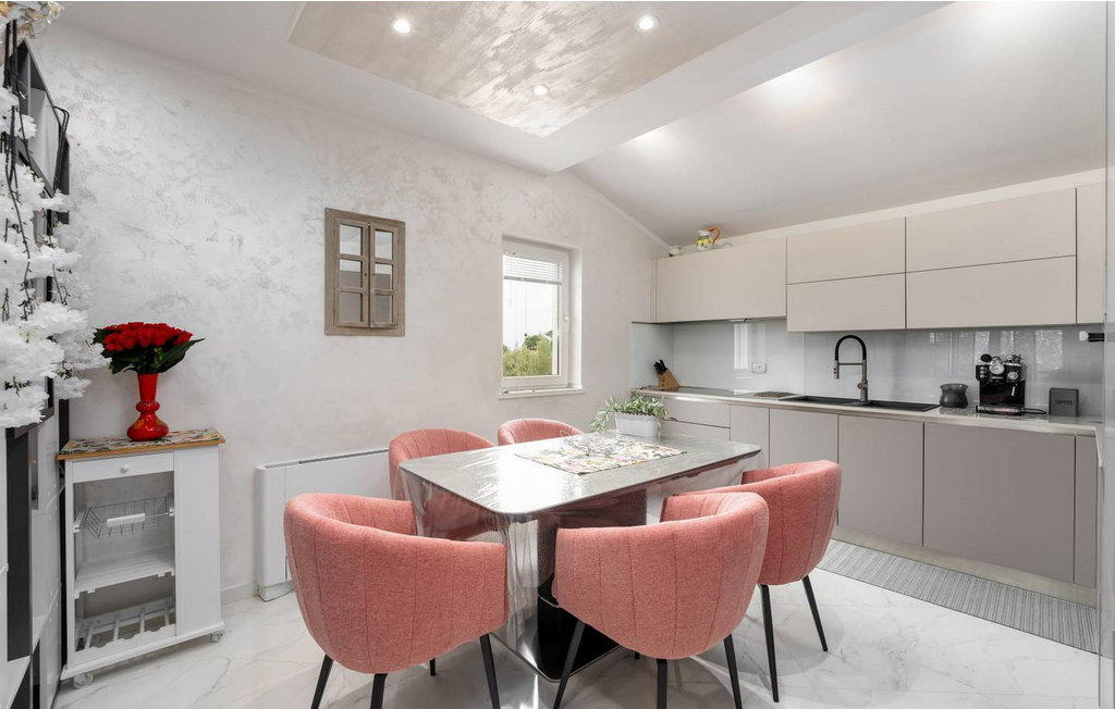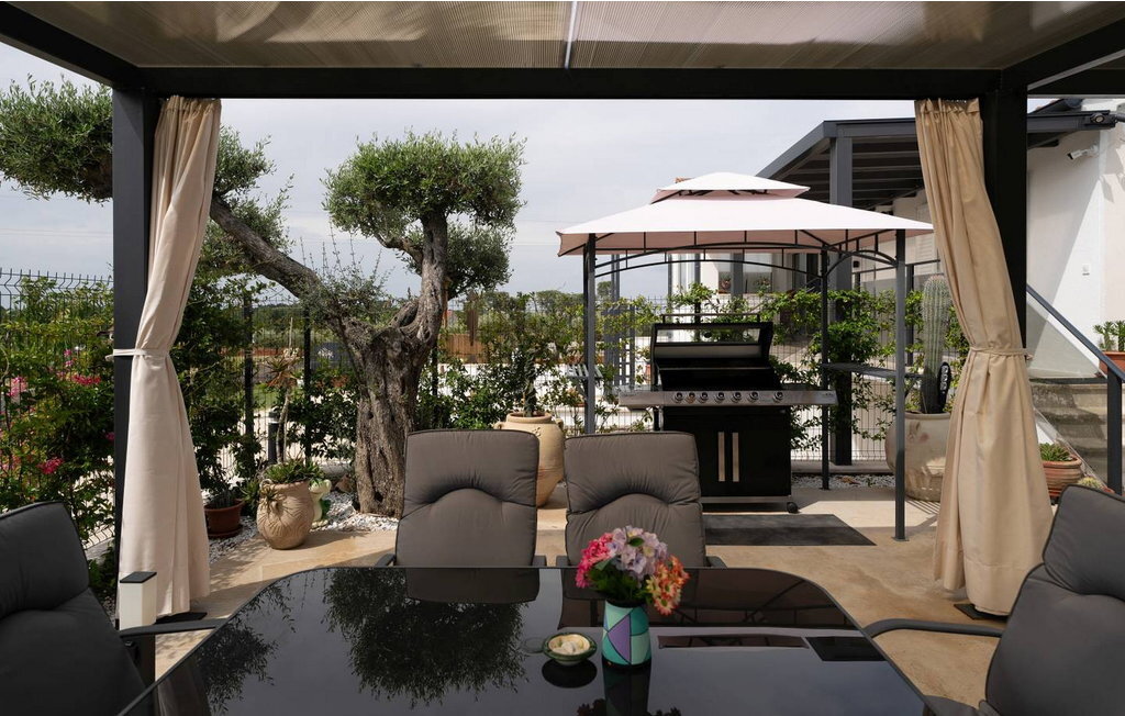 Bienvenue à la Villa Fortuna Vinjan, une retraite paisible au milieu d'une oliveraie au cœur de l'Istrie, à seulement 10 km de la côte adriatique et de la ville historique de Pore. Cette charmante villa est votre porte d'entrée vers la détente et offre un jardin clos où vous pourrez vous détendre dans le jacuzzi, préparer des repas dans la cuisine d'été couverte ou faire des barbecues en plein air. Les espaces de détente dans le jardin vous invitent à profiter de l'environnement calme et créent le décor parfait pour une retraite reposante. À l'intérieur, la villa respire la chaleur et le confort et dispose d'espaces de vie accueillants qui invitent à la détente. Vinjan, un village chargé d'histoire, poursuit sa tradition de centre culturel vivant avec son marché ouvert mensuel. Le village offre également une vue imprenable sur la mer depuis son ancienne terrasse, accessible par une arche vénitienne historique. Pour les passionnés d'astronomie, l'observatoire de Vinjan, situé à proximité, est un must. À une courte distance en voiture, la ville de Pore attire les visiteurs avec ses rues romaines, sa basilique d'Euphrasius, inscrite au patrimoine mondial de l'UNESCO, et son riche patrimoine culturel. Dans cette villa, vous découvrirez l'essence de l'Istrie où l'histoire, la culture et la détente s'entremêlent sans problème. Veuillez noter que les groupes de jeunes et les enterrements de vie de garçon ne sont pas acceptés dans ce logement. Un groupe de jeunes dans ce logement se compose de personnes âgées de 26 ans ou moins.