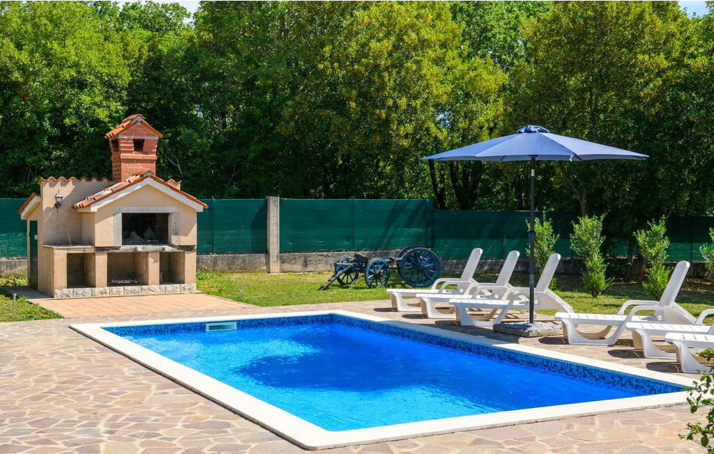 Sur un terrain de 3000 m², il y a une piscine, des chaises longues, une douche, des meubles de jardin, un barbecue extérieur et plusieurs places de parking. La ville de Labin est à seulement 3 km, où vous trouverez des magasins, des restaurants et de nombreuses manifestations. Rabac, en tant que destination touristique avec de nombreuses plages et des installations sportives et de loisirs, se trouve à 7 km.