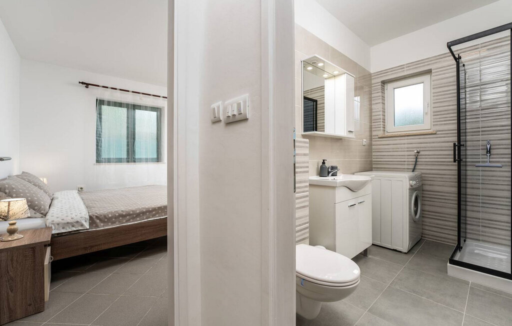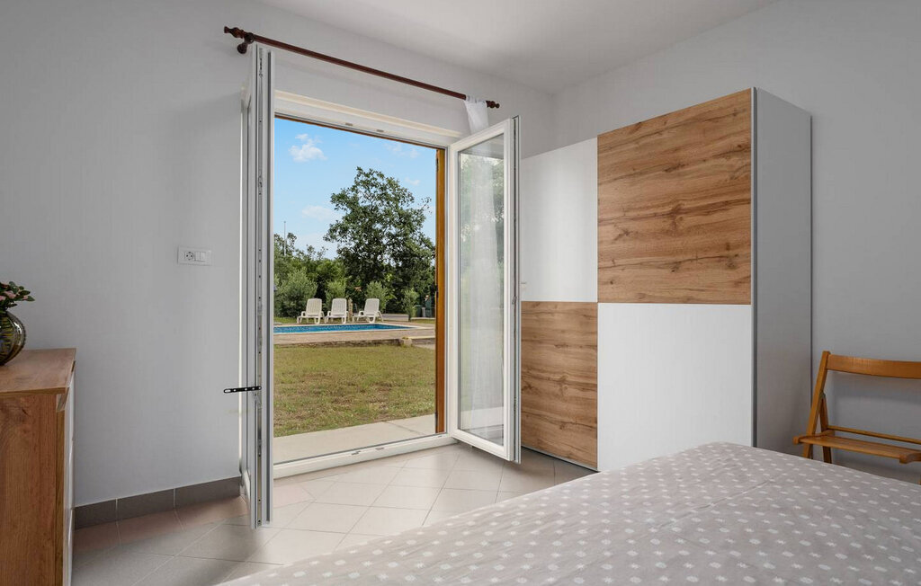 Maison Irma Labin se compose d'un rez-de-chaussée où il y a un salon, une salle à manger, une cuisine entièrement équipée, trois chambres et deux salles de bains. Une chambre a un lit double et un autre lit pour une personne, la deuxième chambre a deux lits simples, la troisième chambre a un lit double. Le premier étage de la maison est fermé, non loué et personne n'y habite. Les hôtes ont une intimité totale sur la propriété.