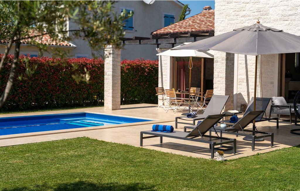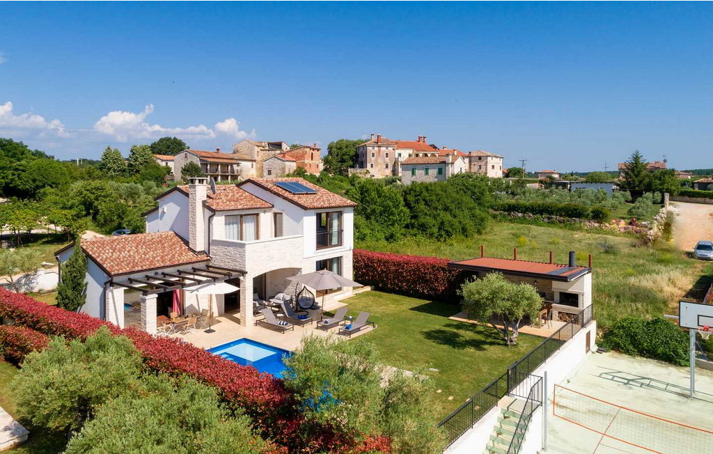 La Villa Baratto, une villa moderne et rustique de construction récente avec piscine, est située à la périphérie du village de Barat, non loin de Visnjan en Istrie centrale, à 15 km de Porec et des plages.