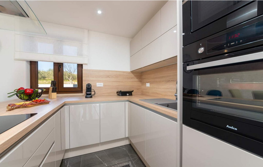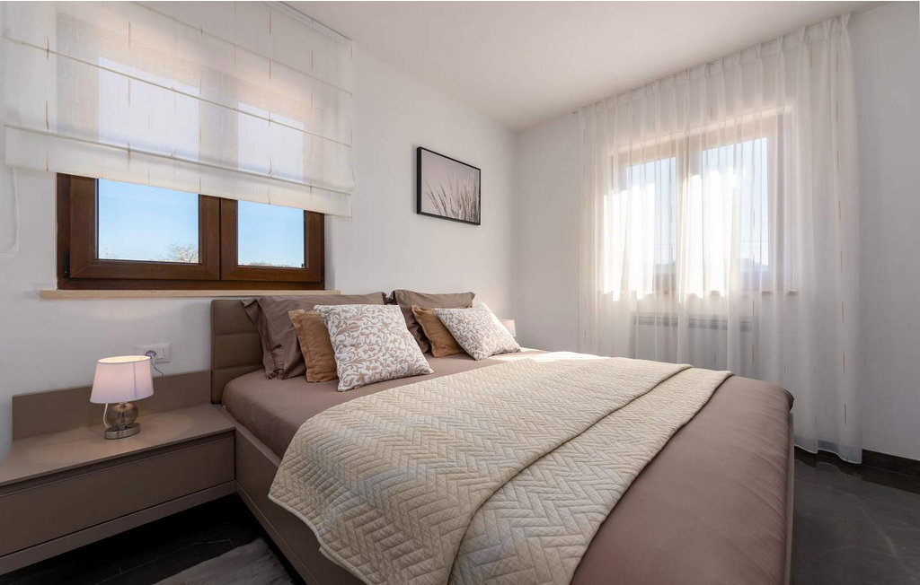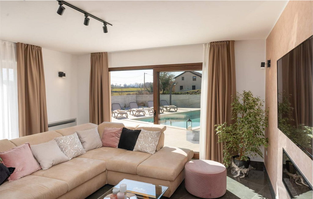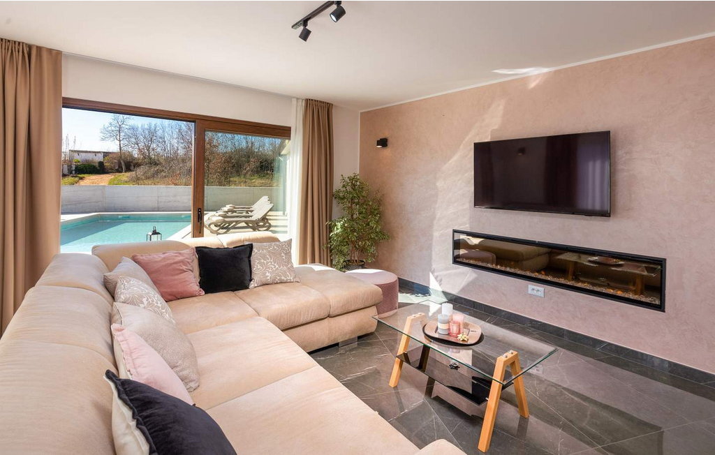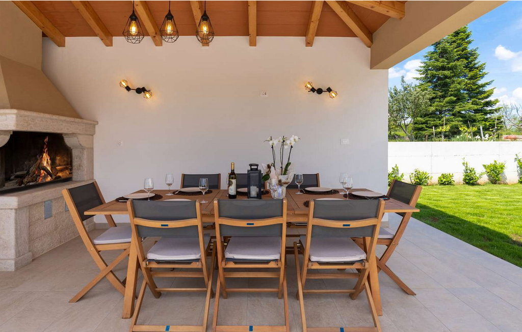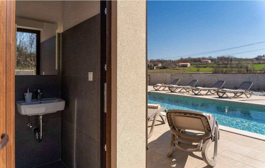 Villa Alena est une maison de vacances récemment construite avec piscine et offre une retraite paisible à proximité de la ville animée de Pore. Cette charmante villa située dans le village pittoresque de Viinada est entourée de la beauté paisible des vignobles et constitue un point de départ idéal pour explorer la région. Le terrain est clôturé, ce qui garantit l'intimité, et dispose d'une cuisine d'été avec barbecue pour de magnifiques repas en plein air. Le vaste terrain offre également suffisamment d'espace de stationnement pour plusieurs véhicules. À l'intérieur, la villa est bien conçue et dispose d'un salon confortable, d'une cuisine entièrement équipée et d'un agréable coin repas. Le salon est mis en valeur par une cheminée électrique qui confère chaleur et atmosphère à votre séjour. La villa est entièrement climatisée et assure votre confort pendant vos vacances. Viinada est connue pour ses routes du vin et de l'huile d'olive, ce qui en fait un paradis pour les gourmets et les amateurs de vin. Le célèbre sentier de randonnée Parenzana, autrefois un chemin de fer et aujourd'hui une route populaire pour le vélo et la randonnée, passe par Viinada et offre un mélange parfait d'aventure et de détente pendant votre séjour. Veuillez noter que cette propriété n'accepte pas les groupes de jeunes ou les enterrements de vie de garçon. Un groupe de jeunes dans cette propriété se compose de personnes âgées de 26 ans ou moins.