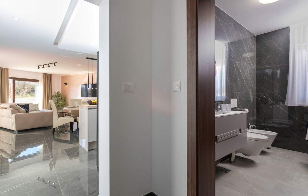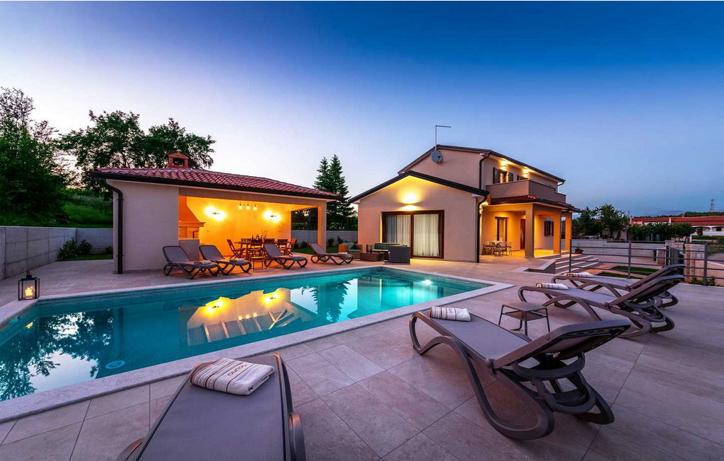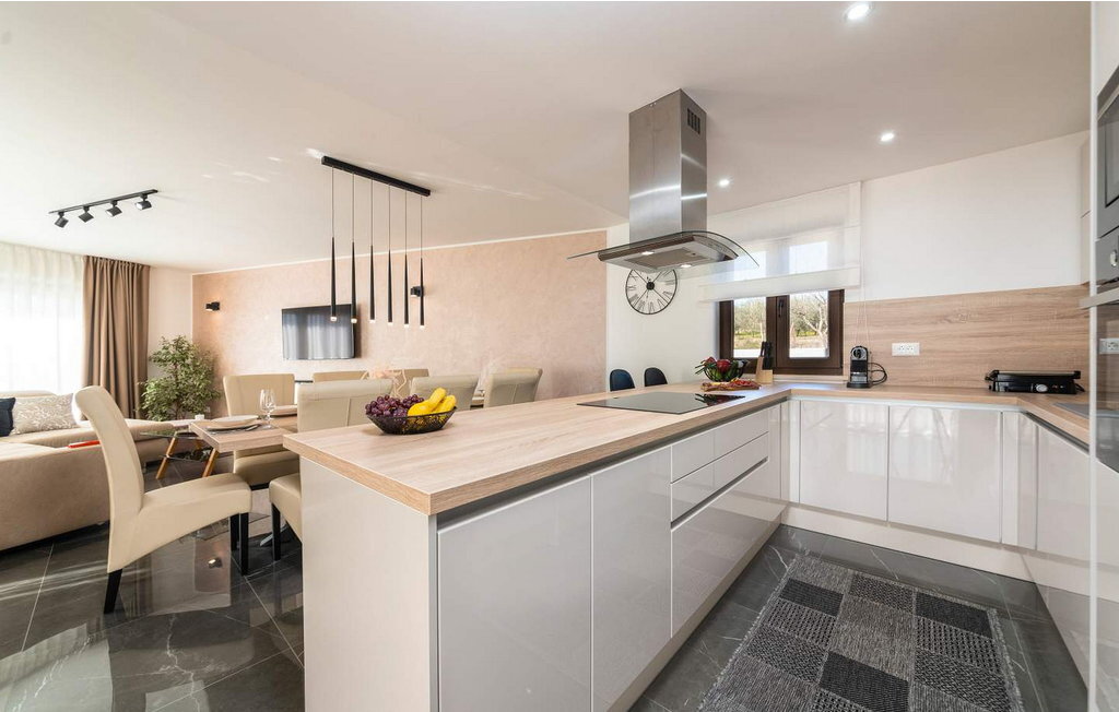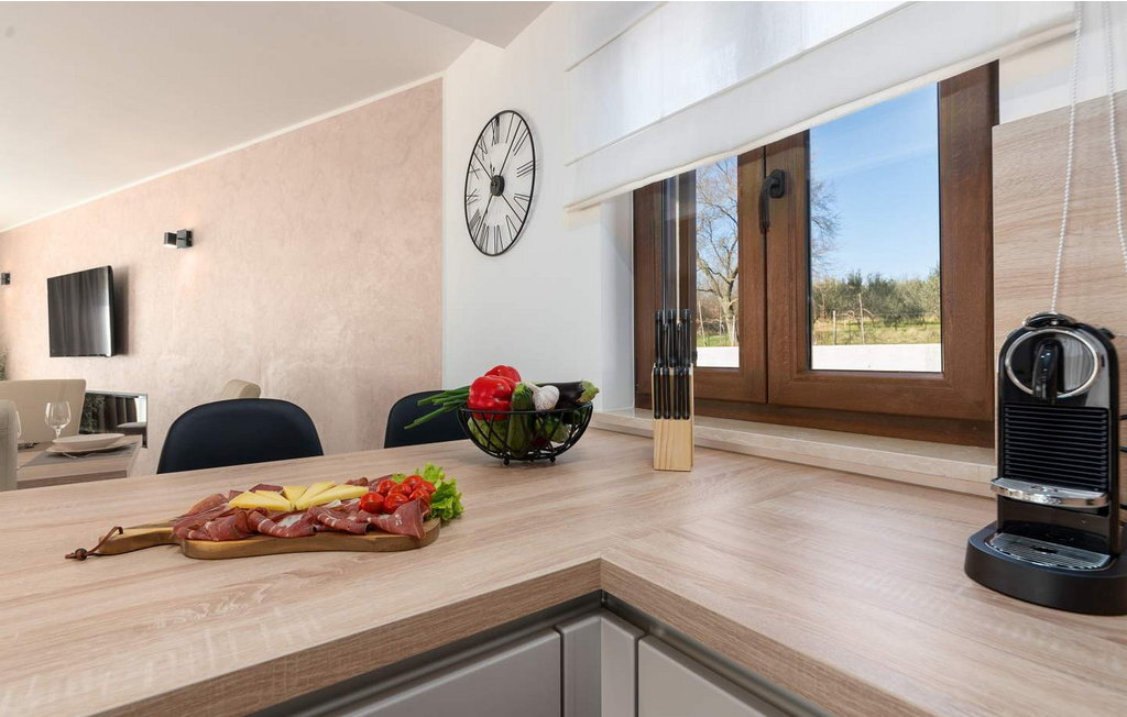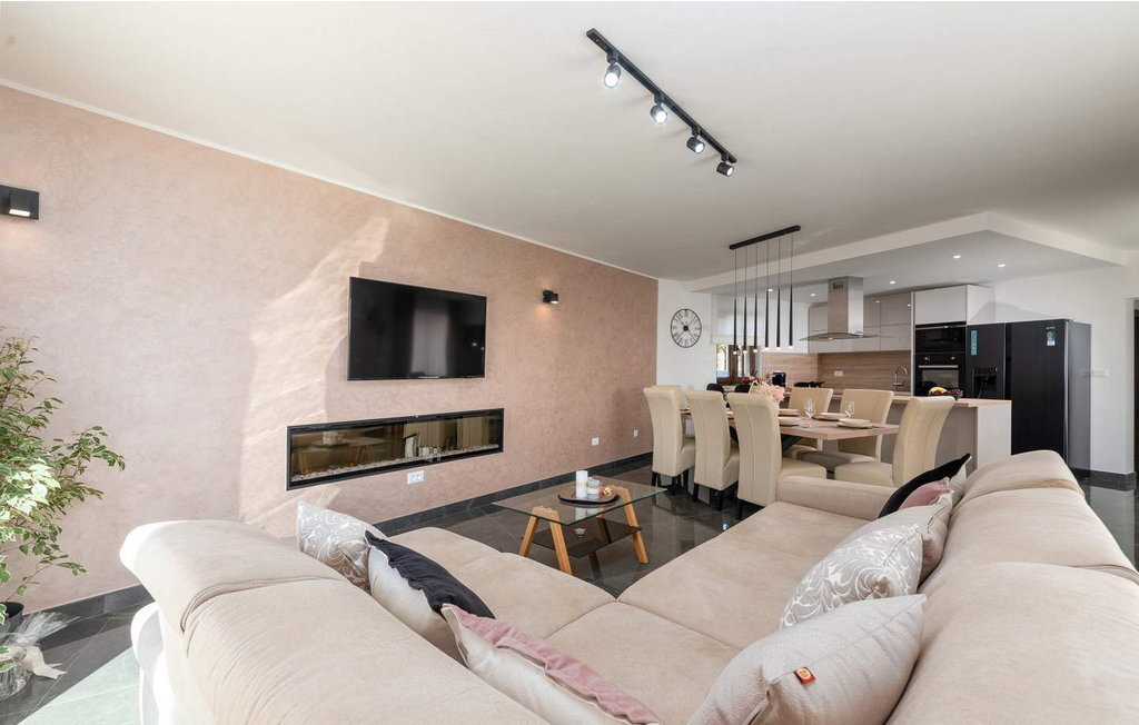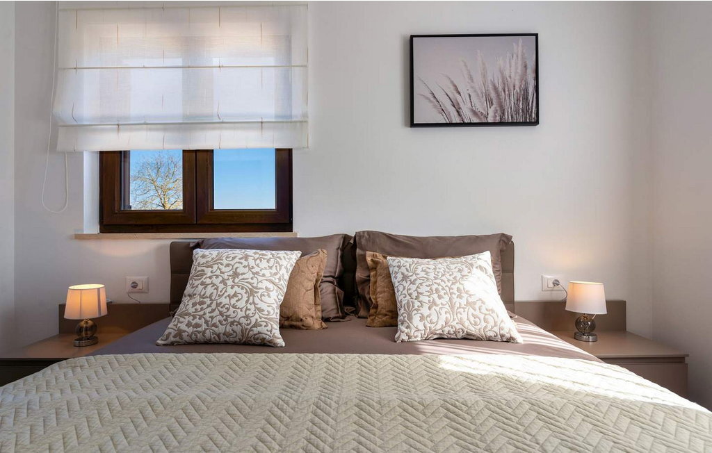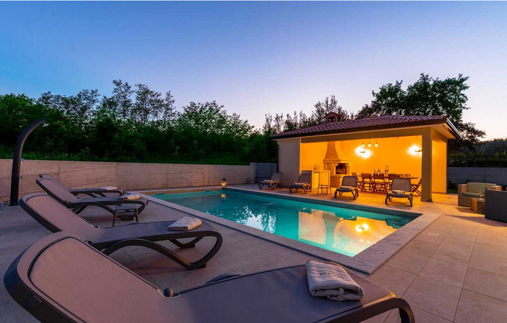 Villa Alena est une maison de vacances récemment construite avec piscine et offre une retraite paisible à proximité de la ville animée de Pore. Cette charmante villa située dans le village pittoresque de Viinada est entourée de la beauté paisible des vignobles et constitue un point de départ idéal pour explorer la région. Le terrain est clôturé, ce qui garantit l'intimité, et dispose d'une cuisine d'été avec barbecue pour de magnifiques repas en plein air. Le vaste terrain offre également suffisamment d'espace de stationnement pour plusieurs véhicules. À l'intérieur, la villa est bien conçue et dispose d'un salon confortable, d'une cuisine entièrement équipée et d'un agréable coin repas. Le salon est mis en valeur par une cheminée électrique qui confère chaleur et atmosphère à votre séjour. La villa est entièrement climatisée et assure votre confort pendant vos vacances. Viinada est connue pour ses routes du vin et de l'huile d'olive, ce qui en fait un paradis pour les gourmets et les amateurs de vin. Le célèbre sentier de randonnée Parenzana, autrefois un chemin de fer et aujourd'hui une route populaire pour le vélo et la randonnée, passe par Viinada et offre un mélange parfait d'aventure et de détente pendant votre séjour. Veuillez noter que cette propriété n'accepte pas les groupes de jeunes ou les enterrements de vie de garçon. Un groupe de jeunes dans cette propriété se compose de personnes âgées de 26 ans ou moins.