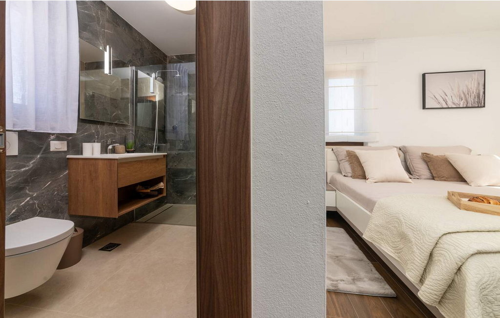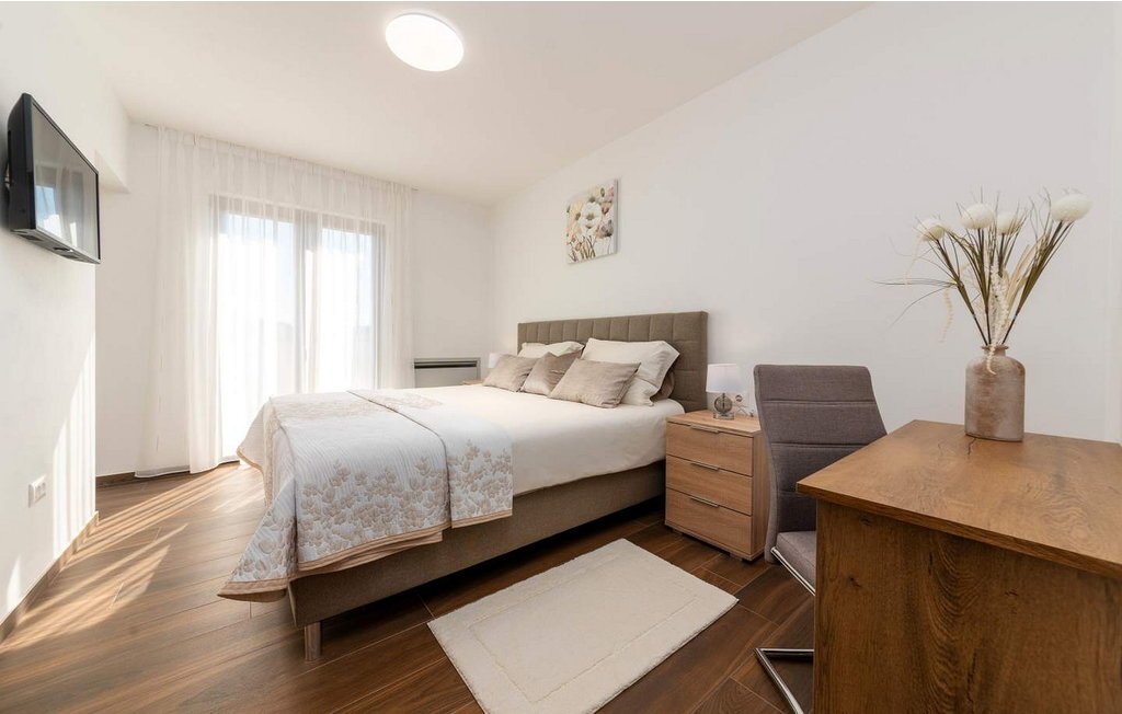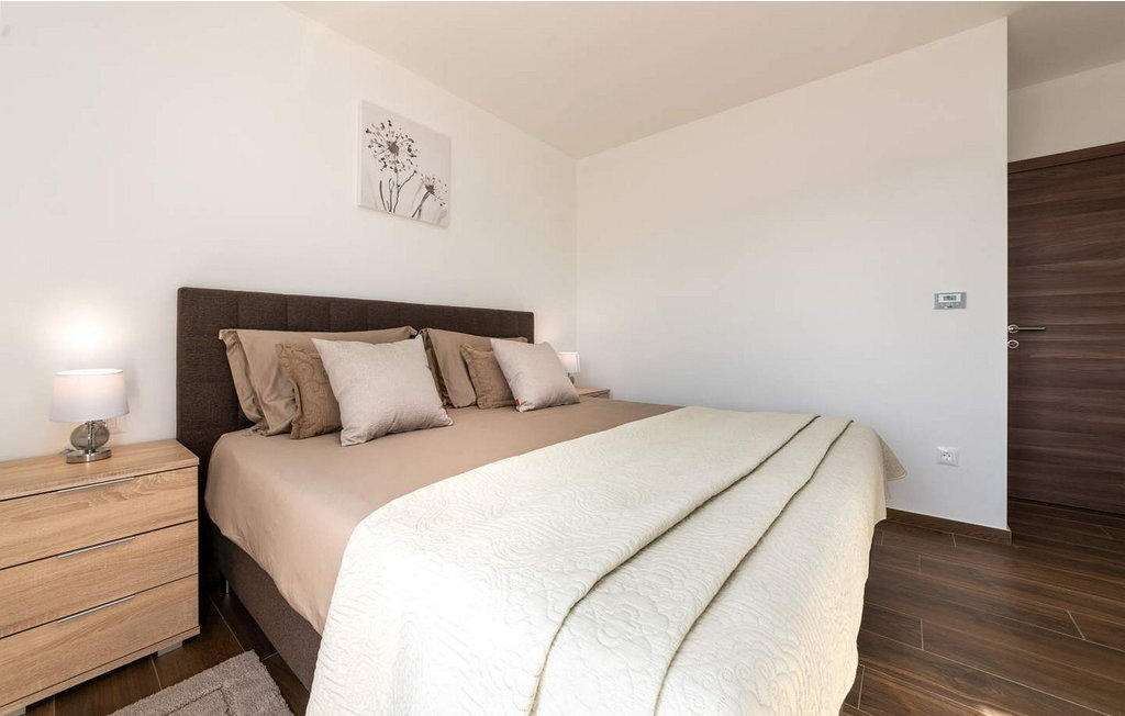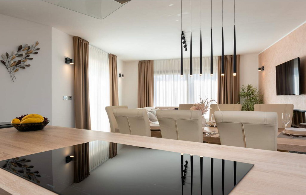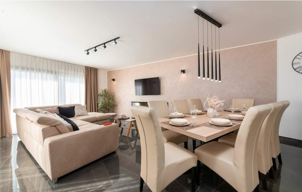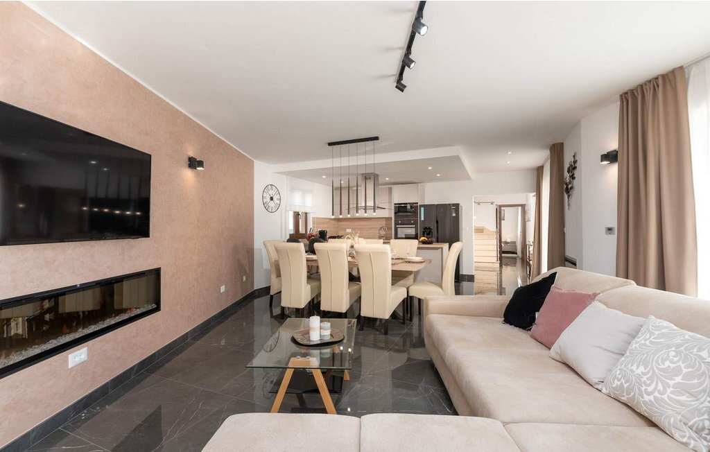 Villa Alena est une maison de vacances récemment construite avec piscine et offre une retraite paisible à proximité de la ville animée de Pore. Cette charmante villa située dans le village pittoresque de Viinada est entourée de la beauté paisible des vignobles et constitue un point de départ idéal pour explorer la région. Le terrain est clôturé, ce qui garantit l'intimité, et dispose d'une cuisine d'été avec barbecue pour de magnifiques repas en plein air. Le vaste terrain offre également suffisamment d'espace de stationnement pour plusieurs véhicules. À l'intérieur, la villa est bien conçue et dispose d'un salon confortable, d'une cuisine entièrement équipée et d'un agréable coin repas. Le salon est mis en valeur par une cheminée électrique qui confère chaleur et atmosphère à votre séjour. La villa est entièrement climatisée et assure votre confort pendant vos vacances. Viinada est connue pour ses routes du vin et de l'huile d'olive, ce qui en fait un paradis pour les gourmets et les amateurs de vin. Le célèbre sentier de randonnée Parenzana, autrefois un chemin de fer et aujourd'hui une route populaire pour le vélo et la randonnée, passe par Viinada et offre un mélange parfait d'aventure et de détente pendant votre séjour. Veuillez noter que cette propriété n'accepte pas les groupes de jeunes ou les enterrements de vie de garçon. Un groupe de jeunes dans cette propriété se compose de personnes âgées de 26 ans ou moins.