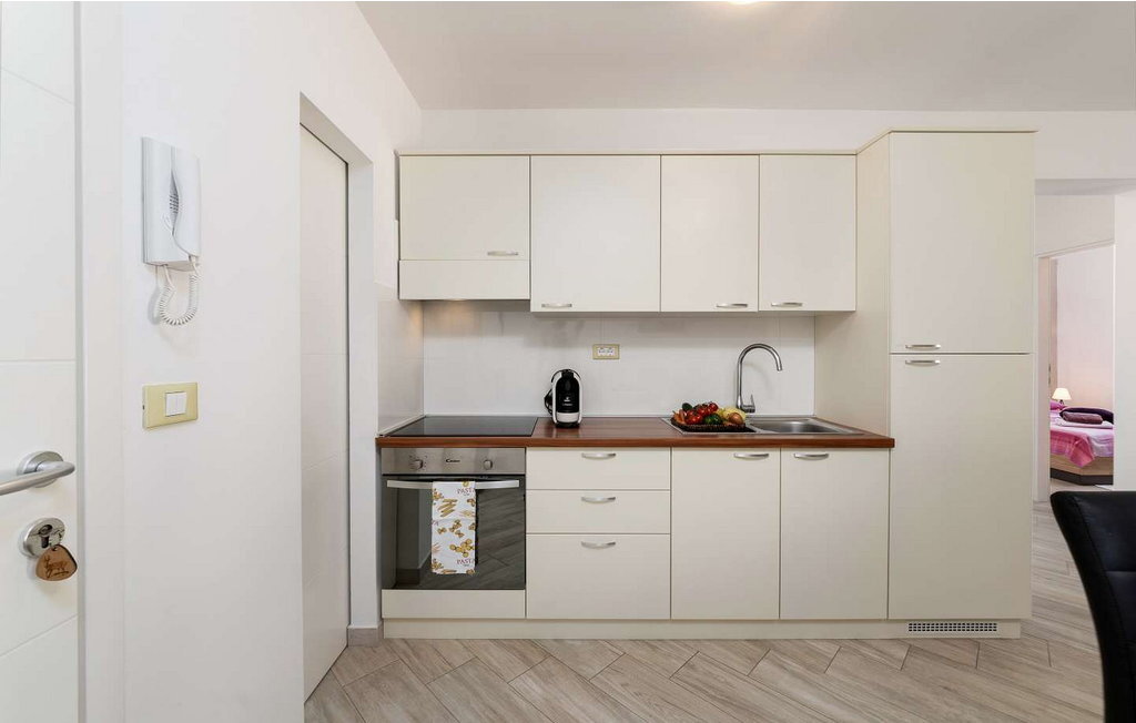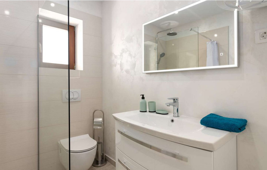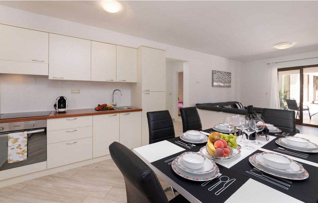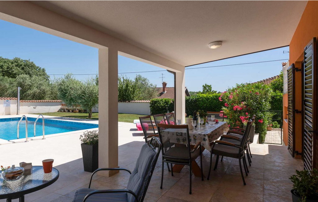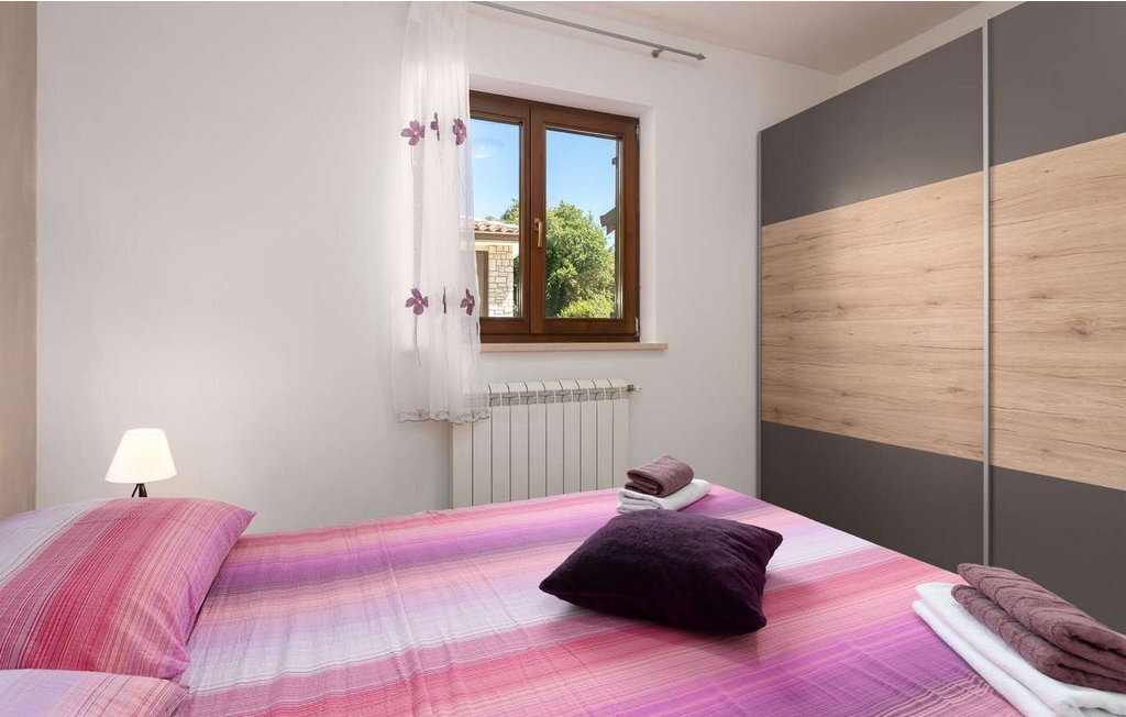 Crveni Vrh est à 6 km, Savudrija, le point le plus à l'ouest de l'Istrie, à 7 km, et la ville d'Umag, avec sa riche offre gastronomique et sportive et ses nombreuses plages, à 5 km. Sur un terrain clôturé, elle offre à ses hôtes une piscine de 42 m², des chaises longues, plusieurs places de parking, une cuisine d'été fermée avec table à manger, un canapé, une cuisine équipée, une cheminée et une salle de bains.