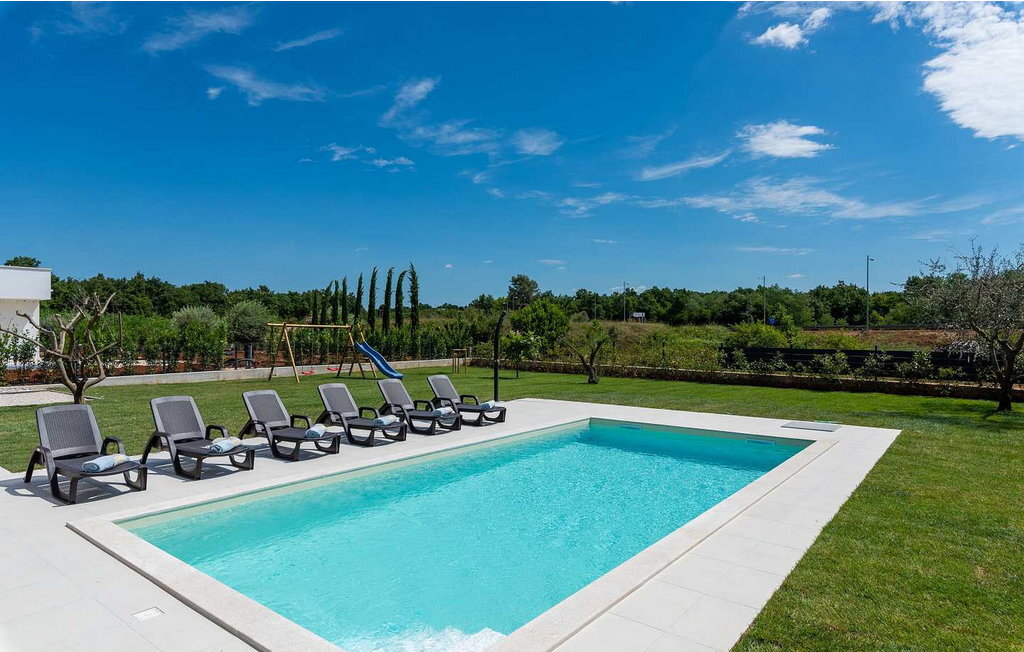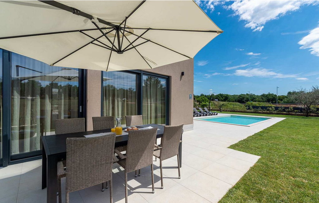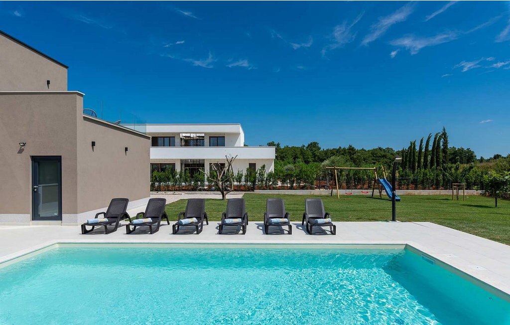 Villa Dafna est une villa au design moderne avec piscine située à seulement 2 km de la mer et de Porec.