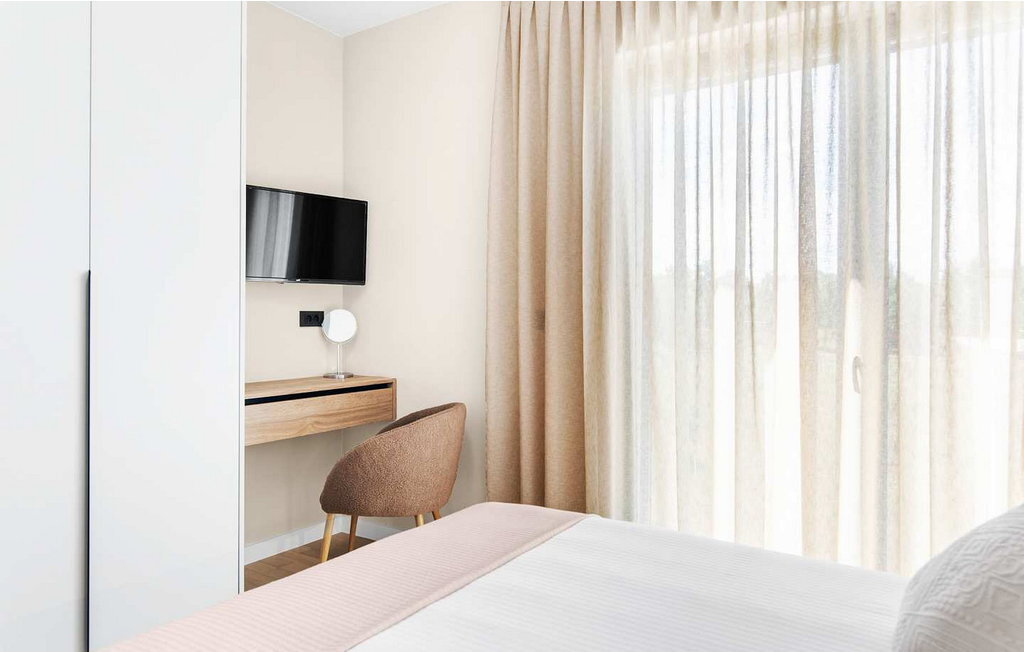 La villa Dafna pour 6 personnes a une surface habitable de 150 m² et s'étend sur deux étages entièrement climatisés. Au rez-de-chaussée, il y a un salon spacieux, une cuisine entièrement équipée et des toilettes séparées. Au premier étage, il y a trois chambres doubles, dont une avec salle de bain privée, et encore une salle de bain dans le couloir. Veuillez noter que ce logement peut accepter des groupes de jeunes sur demande. Veuillez nous contacter pour le vérifier. Un groupe de jeunes dans ce logement se compose de personnes âgées de 26 ans ou moins. Si vous êtes un groupe de jeunes [ou si vous prévoyez un enterrement de vie de garçon], il se peut que l'on vous demande de payer une caution supplémentaire à votre arrivée. Tout montant nécessaire à la réparation des dommages causés à la propriété sera déduit de la caution.