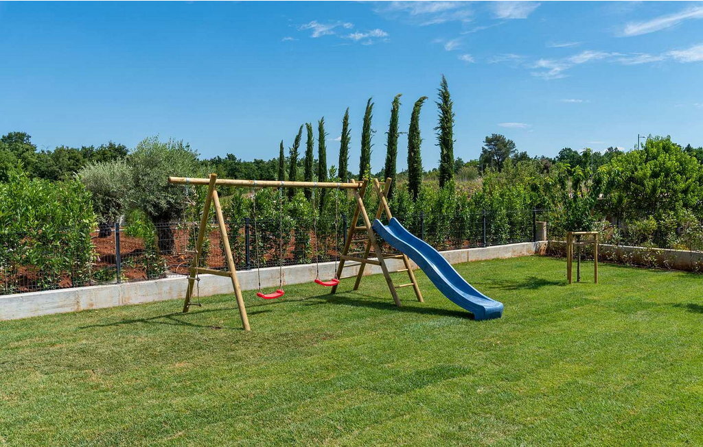 À proximité de la maison se trouvent des centres commerciaux, des distributeurs de billets, des stations-service, des cafés, des restaurants, des terrains de tennis et de volley-ball, de belles plages. Sur un terrain clôturé de 400 m², les hôtes ont à leur disposition une piscine de 32 m², des chaises longues, une table à manger, un barbecue, une aire de jeux avec balançoire et toboggan, un parasol et deux places de parking.