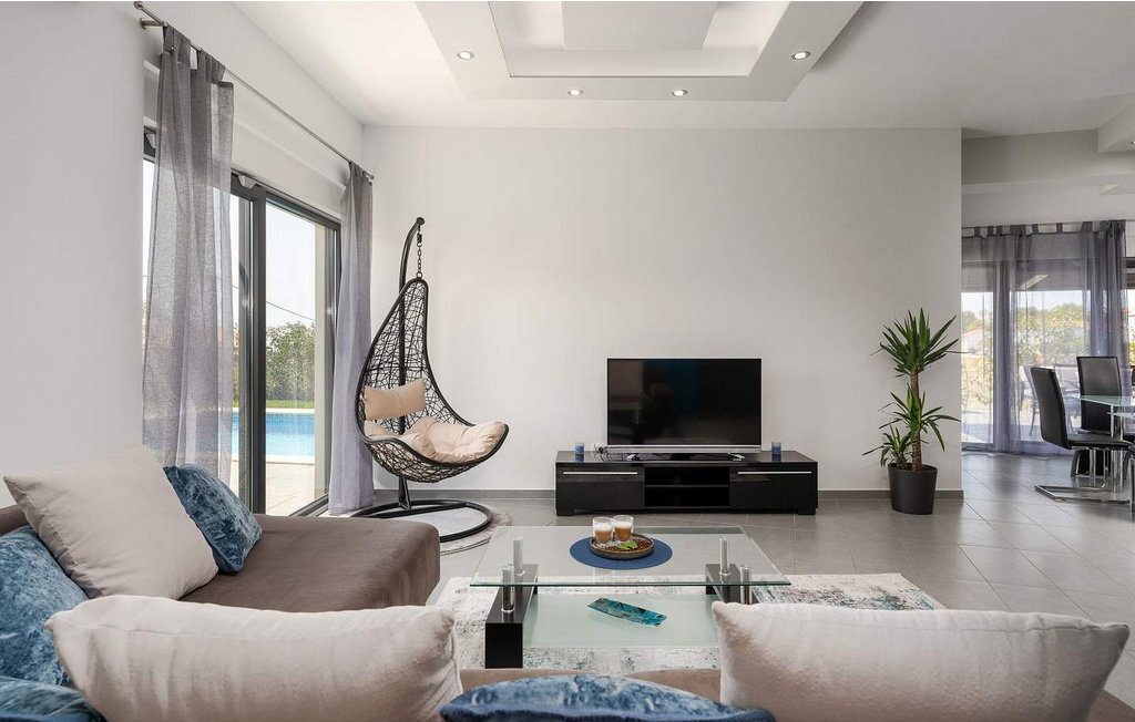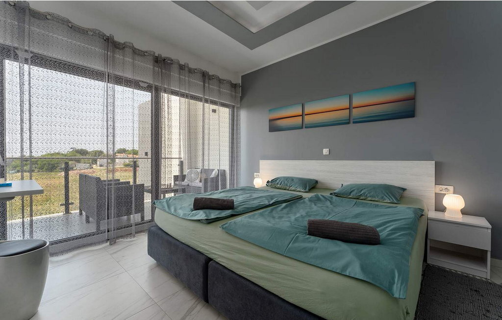 Villa avec piscine et approvisionnement en énergie solaire pour 8 personnes de 160 m² s'étend sur deux étages. Au rez-de-chaussée, il y a un salon avec un pouf et une balançoire, une cuisine spacieuse avec salle à manger et une machine à café Sage Barista Pro, une petite chambre avec un lit double et une douche/WC. Au premier étage se trouvent au total trois chambres à coucher climatisées, un poste de travail confortable avec écran et clavier, idéal pour les nomades numériques et un balcon avec vue sur la mer. Chaque chambre dispose de la télévision par satellite et d'un grand lit double qui peut être divisé en deux lits simples. Une des chambres a une douche/WC privée et il y a une autre douche/WC dans le couloir. Veuillez noter que ce logement peut accepter des groupes de jeunes sur demande. Veuillez nous contacter pour vérifier cela. Un groupe de jeunes dans ce logement se compose de personnes âgées de 26 ans ou moins. Si vous êtes un groupe de jeunes [ou si vous prévoyez un enterrement de vie de garçon], il se peut que l'on vous demande de payer une caution supplémentaire à votre arrivée. Tout montant nécessaire à la réparation des dommages causés à la propriété sera déduit de la caution.