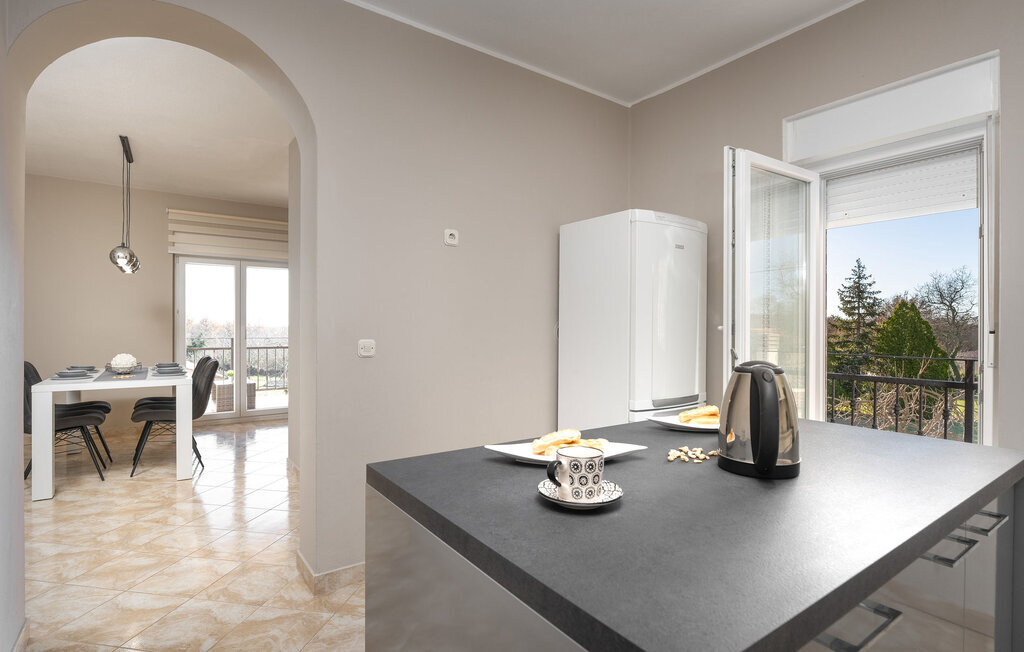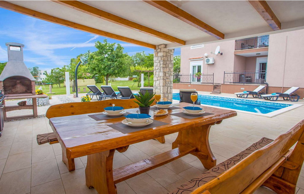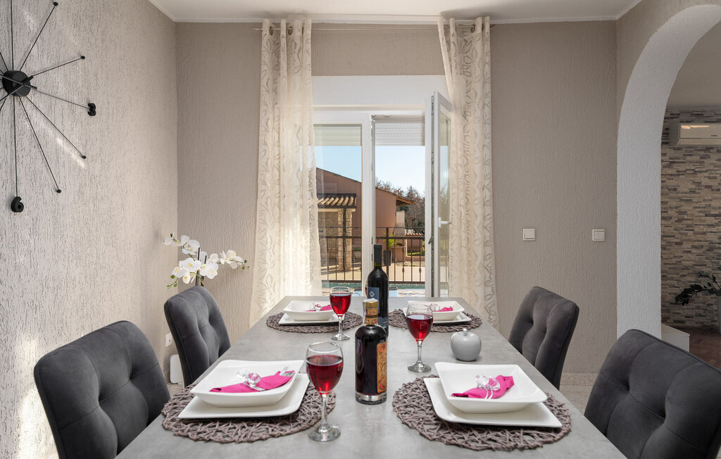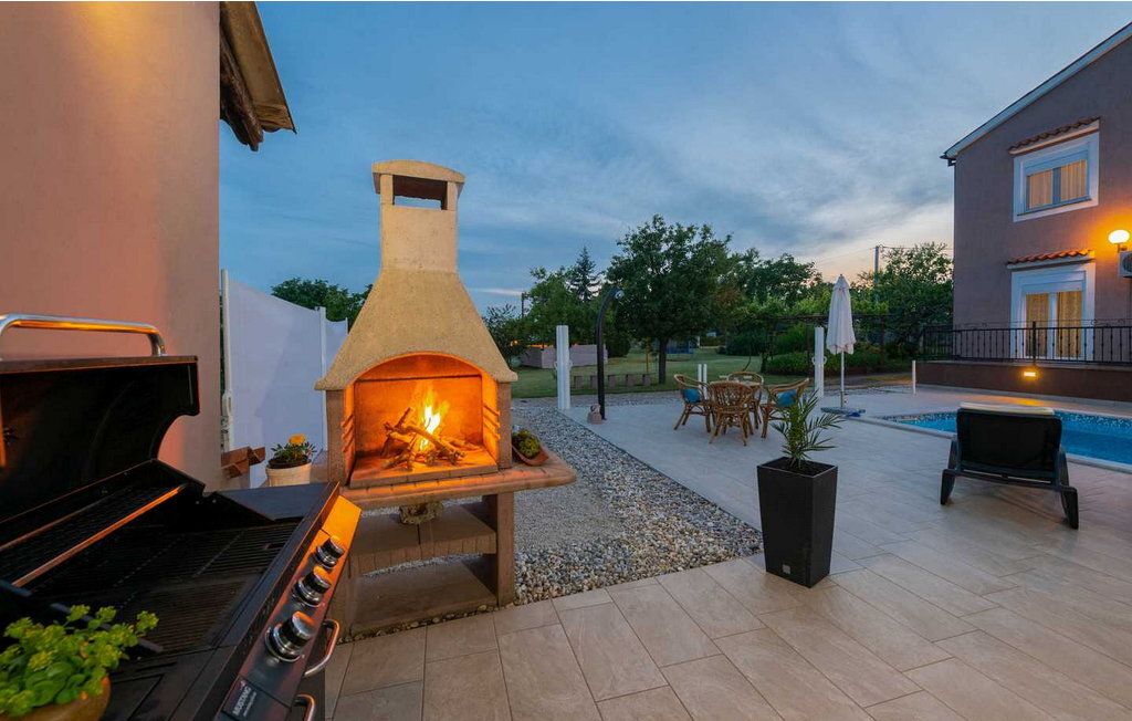 La Villa Lara est une maison de vacances magnifiquement aménagée et rénovée dans le paisible village de Belavii, sur la côte est de l'Istrie. À seulement 6 km de la plage la plus proche et à une courte distance en voiture de Pula, elle offre à la fois la tranquillité et un accès facile aux curiosités locales. À proximité, vous trouverez une pizzeria, un magasin et une place d'agritourisme proposant une cuisine locale. La villa est située sur un terrain spacieux et est idéale pour les familles. Elle dispose d'une piscine, d'une terrasse couverte avec barbecue et de nombreux jeux pour les enfants. La villa Lara se compose de deux unités séparées, reliées par des escaliers extérieurs. Le rez-de-chaussée comprend un salon confortable avec cheminée et accès à la terrasse, une salle à manger pour six personnes avec vue sur la piscine et une cuisine bien équipée. Il y a également deux chambres doubles, une douche/WC et un WC séparé. Le premier étage reflète ce plan et offre de l'espace et de l'intimité supplémentaires. Une visite de la ville voisine de Pula s'impose, où vous pourrez explorer le magnifique amphithéâtre romain, flâner dans les vieilles rues et découvrir le riche patrimoine culturel de cette ville côtière animée. Veuillez noter que ce logement n'accepte pas les groupes de jeunes ou les enterrements de vie de garçon. Un groupe de jeunes dans ce logement se compose de personnes âgées de 26 ans ou moins.