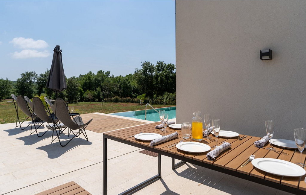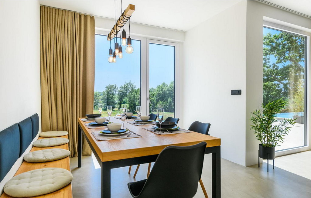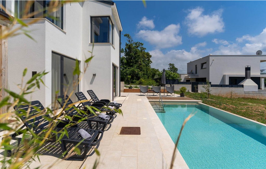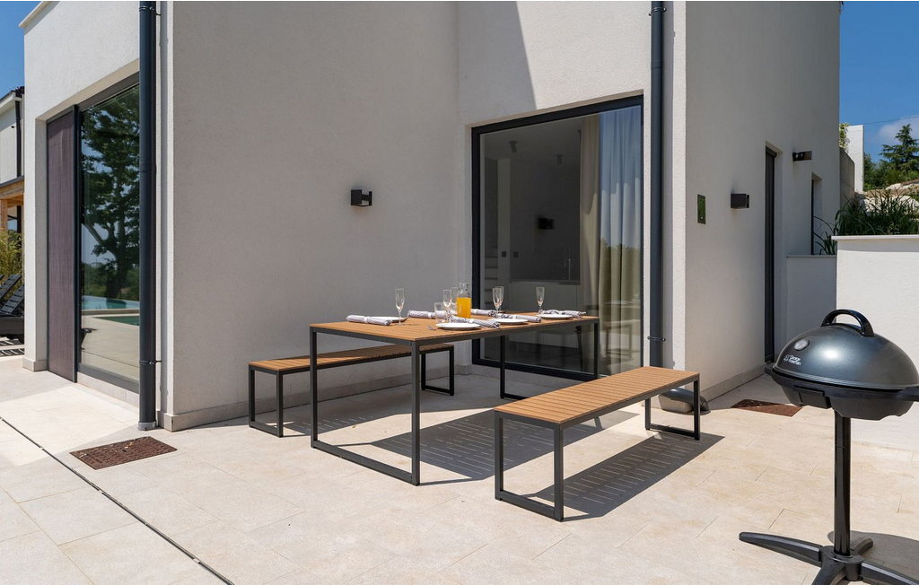 La Villa Sunset est une maison de vacances moderne située à quelques kilomètres seulement de Pore et de sa mer accueillante. La villa est située à Fukulin, à proximité d'un magasin, d'une taverne traditionnelle d'Istrie, d'un vignoble de première qualité et de pistes cyclables. La villa offre un bel espace extérieur avec une piscine rafraîchissante, des chaises longues, une table à manger en plein air où vous pourrez déguster des repas en plein air et un barbecue. Profitez de compétitions amicales avec l'accès à un terrain de squash intérieur, partagé avec les hôtes de l'autre moitié de la maison. Deux places de parking sont également disponibles. À l'intérieur, Villa Sunset offre un intérieur contemporain avec des salles de bain modernes. Le rez-de-chaussée comprend un salon spacieux, une cuisine entièrement équipée, une salle à manger, un bureau et une salle de bain. Le premier étage dispose de trois chambres doubles, chacune avec sa propre salle de bain, ce qui garantit à la fois confort et intimité. Ce mélange de confort moderne et d'environnement calme promet une expérience de vacances inoubliable. Pore n'est qu'à une courte distance en voiture, où vous pourrez admirer la basilique d'Euphrasie, un chef-d'œuvre époustouflant datant du 6e siècle. Le riche patrimoine culturel de Pore comprend des remparts massifs, de charmantes rues en pierre bordées de restaurants agréables et de boutiques de souvenirs, ainsi qu'une pittoresque promenade sur le port qui invite à la flânerie. Veuillez noter que ce logement n'accepte pas les groupes de jeunes ou les enterrements de vie de garçon. Un groupe de jeunes dans ce logement se compose de personnes âgées de 26 ans ou moins.