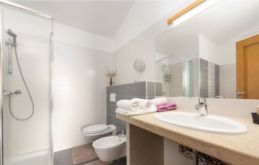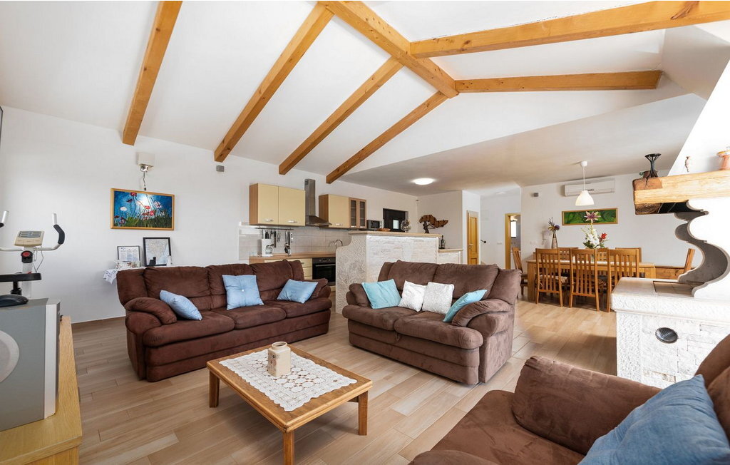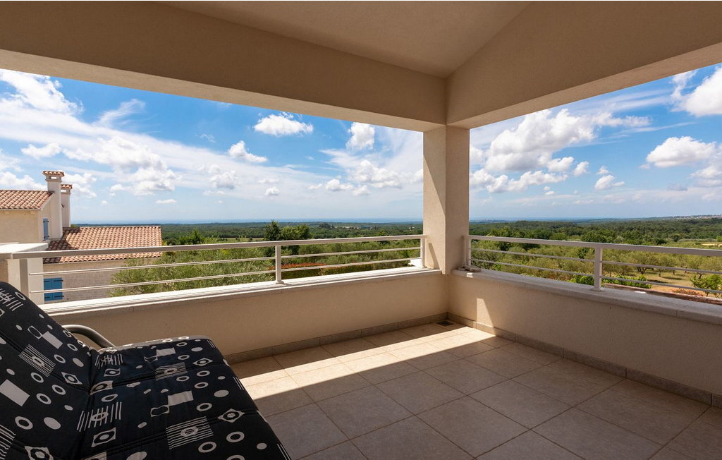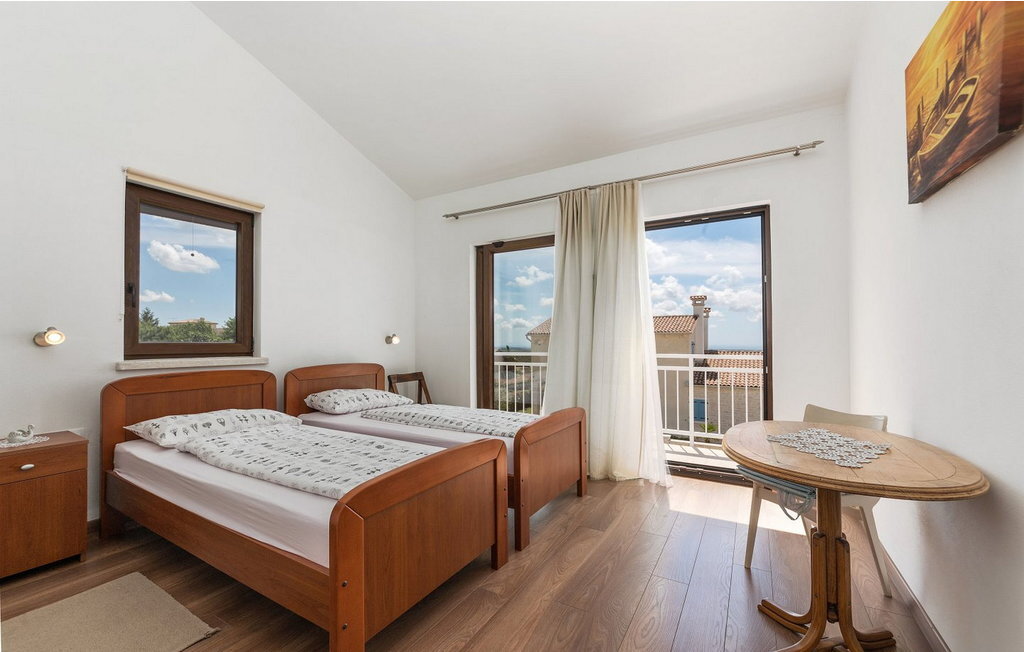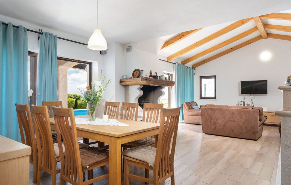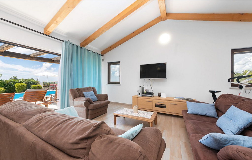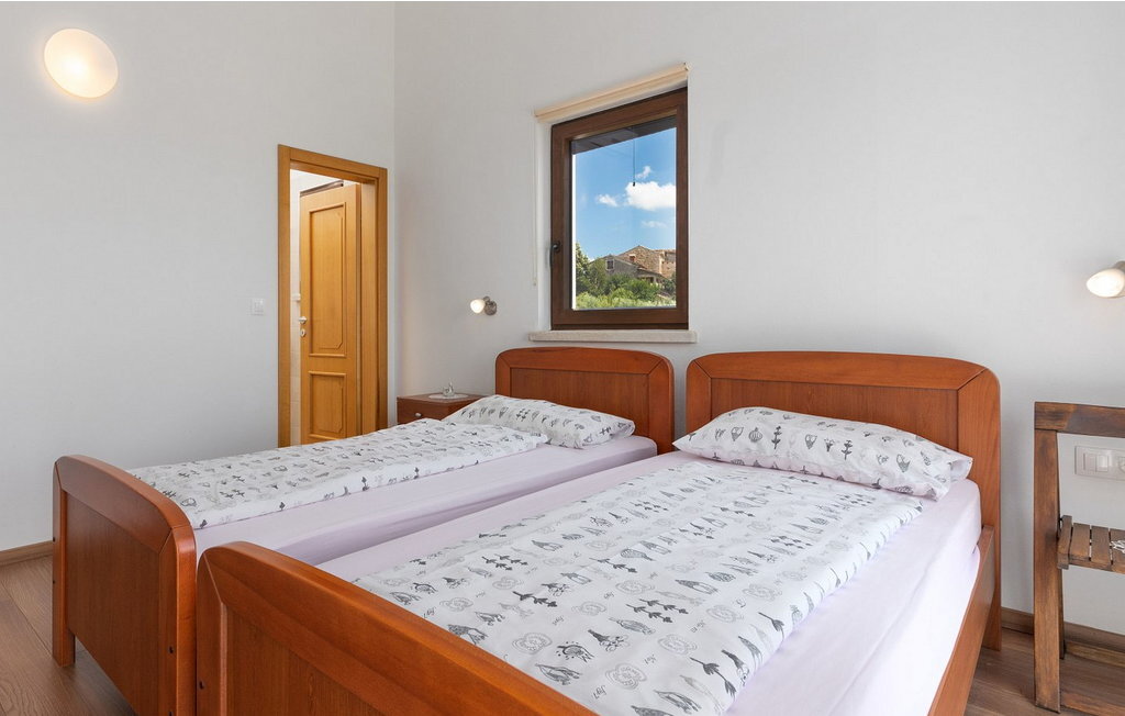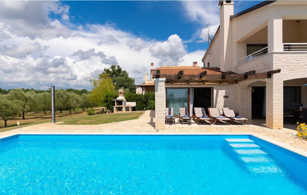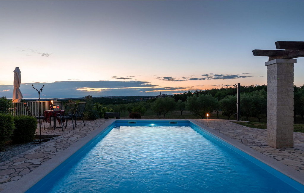 La villa a été construite en 2015 et dispose de son propre terrain avec une pelouse bien entretenue et une oliveraie d'une superficie d'environ 2000 m², située sur une place calme d'où s'étend une magnifique vue panoramique sur la mer, encore plus accentuée par les parois en verre dans toutes les pièces. Le village de Barat se trouve à 3 km de Visnjan, une ville pittoresque où l'on trouve différents services tels que des magasins, des boulangeries, des restaurants/pizzerias, un distributeur automatique de billets et autres. Les hôtes de la Villa Nira ont à leur disposition les équipements extérieurs suivants : un parking privé pour trois voitures, une piscine de 36 m² avec des chaises longues, une terrasse couverte avec des meubles de jardin et un barbecue.