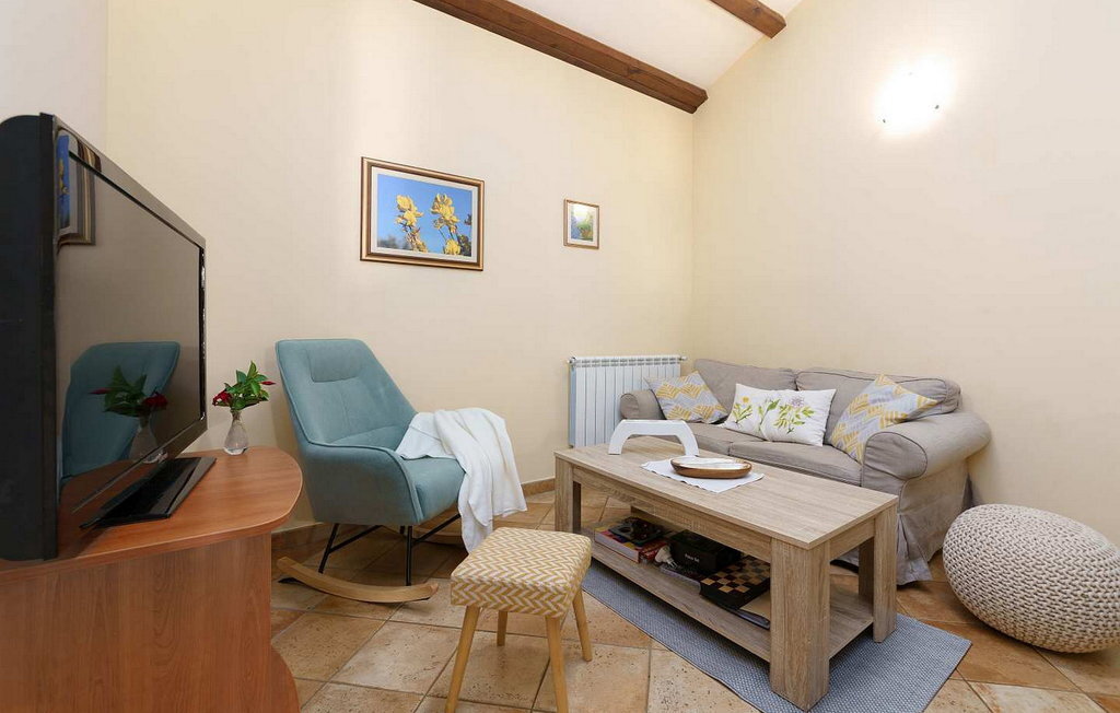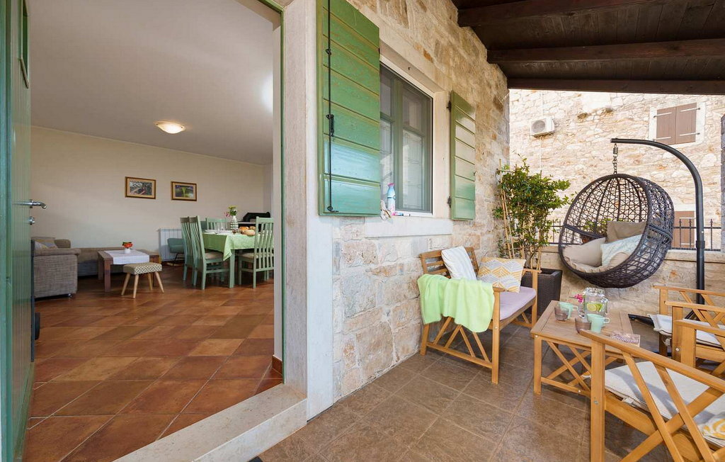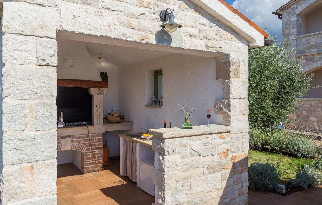 Cette maison en pierre a été construite avec soin en 2012 et se trouve à l'extrémité du village de Balda?i, près de Vi?inada, non loin de la ville touristique de Pore ? La villa se trouve sur un terrain surélevé avec un jardin privé et un parking pour cinq voitures. Des plantes méditerranéennes et de la lavande odorante dominent l'environnement aménagé de manière fonctionnelle.